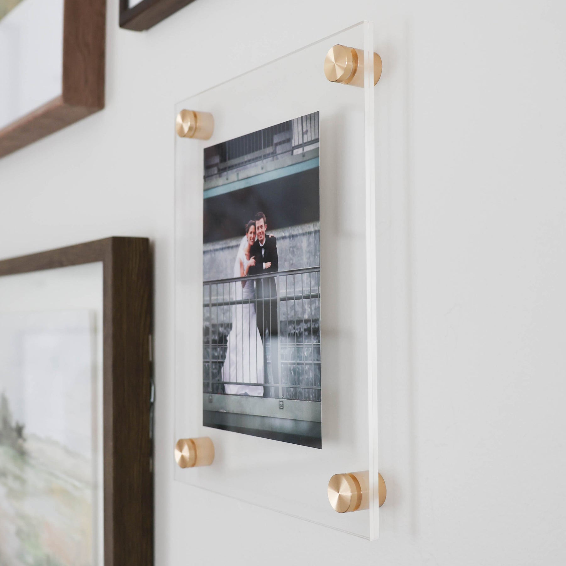 These clear acrylic floating frames are the perfect minimalist picture frames for your favorite artwork or photos - they keep the focus on what matters most, your memories! The acrylic frames are floating frames hung on the wall and perfectly display your pictures. Pictures can easily be changed out as well.