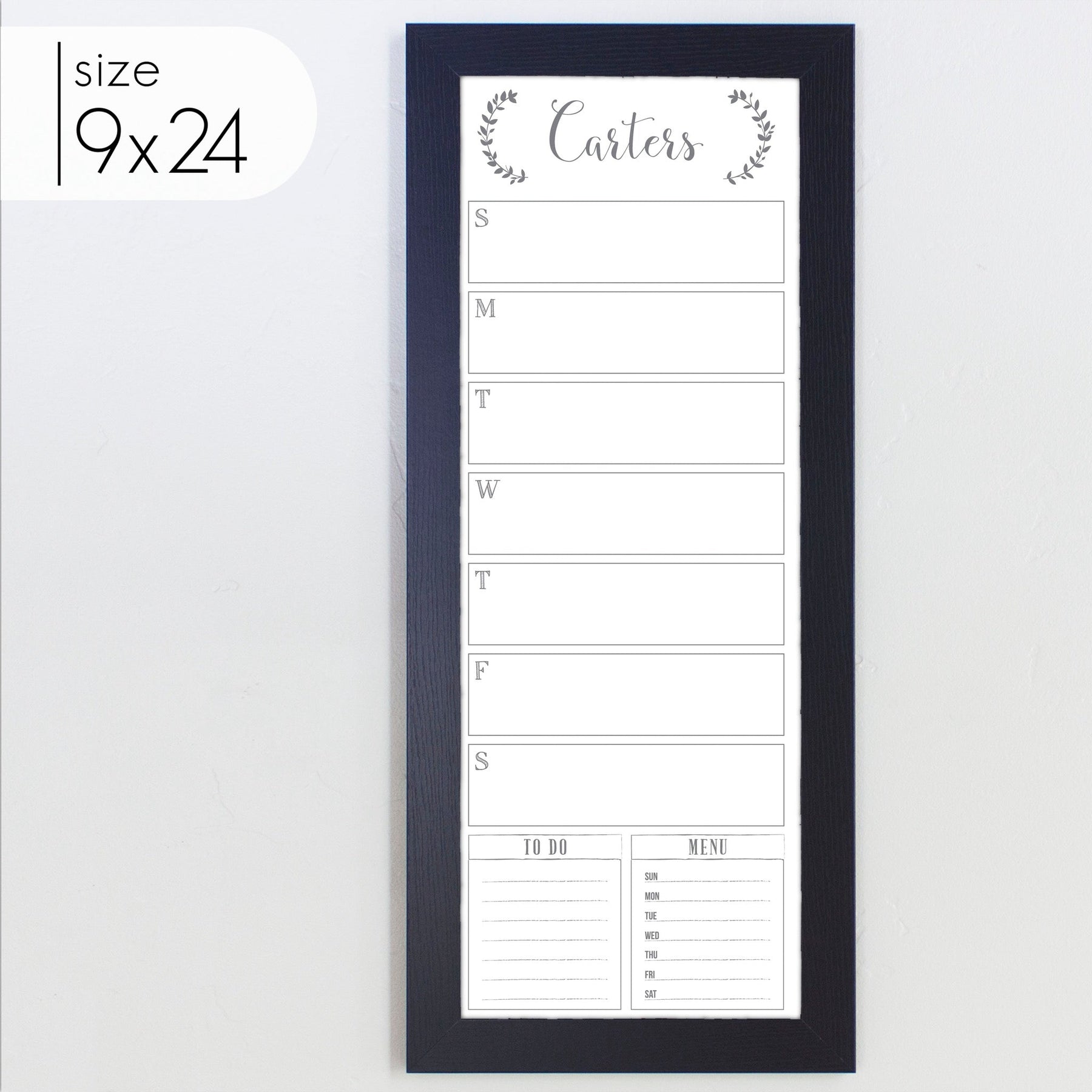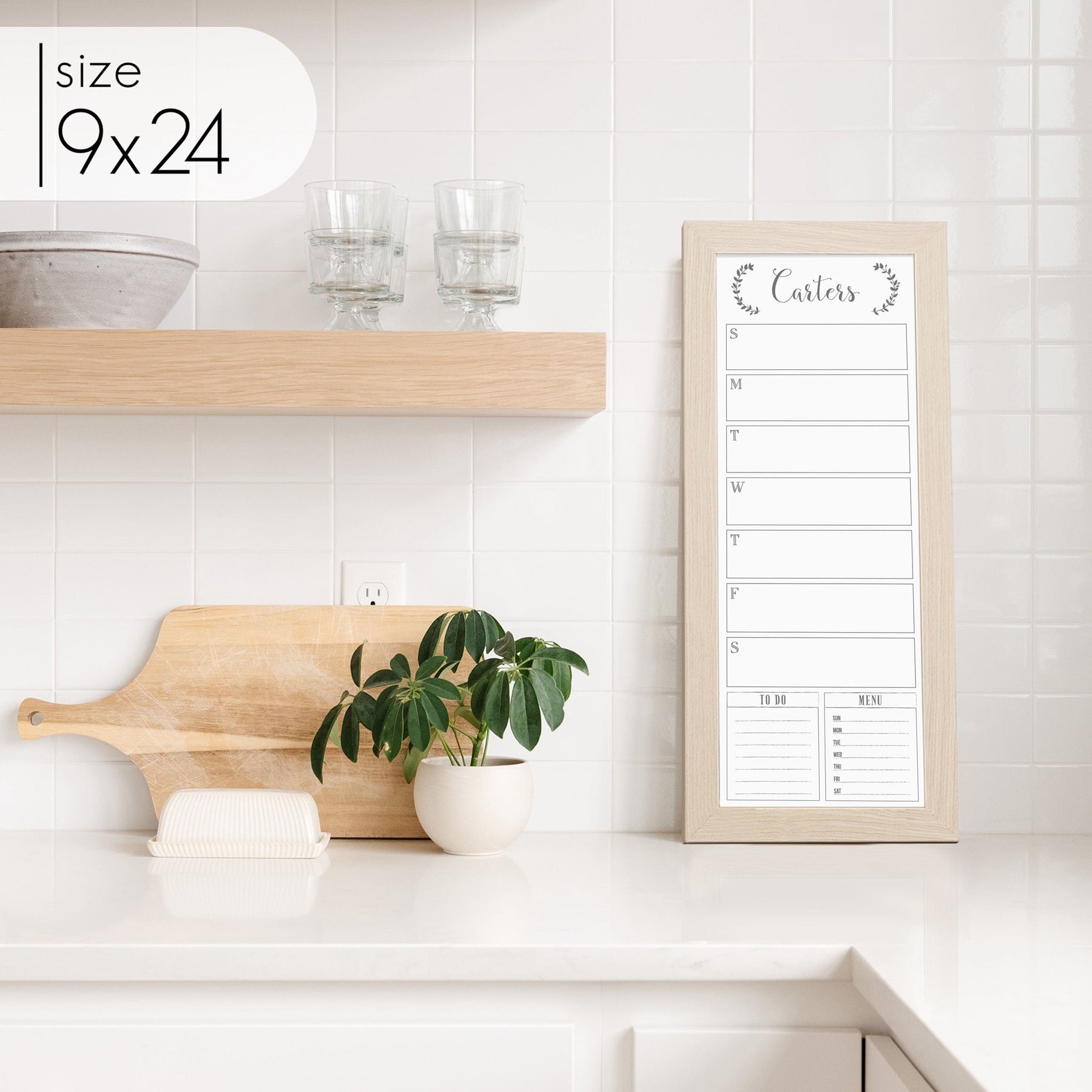 Stay organized in even the smallest spaces with our slim framed weekly whiteboard calendar. This compact whiteboard calendar is designed to fit perfectly in tight areas while still providing an in-depth look at your week. With dedicated sections for appointments, to-dos, goals, and notes, it helps you stay on track without taking up valuable space. The calendar dry-erase board surface is easy to update, making it simple to adjust plans as needed. This slim, functional design ensures that even in small spaces, you can stay organized and on top of your schedule.