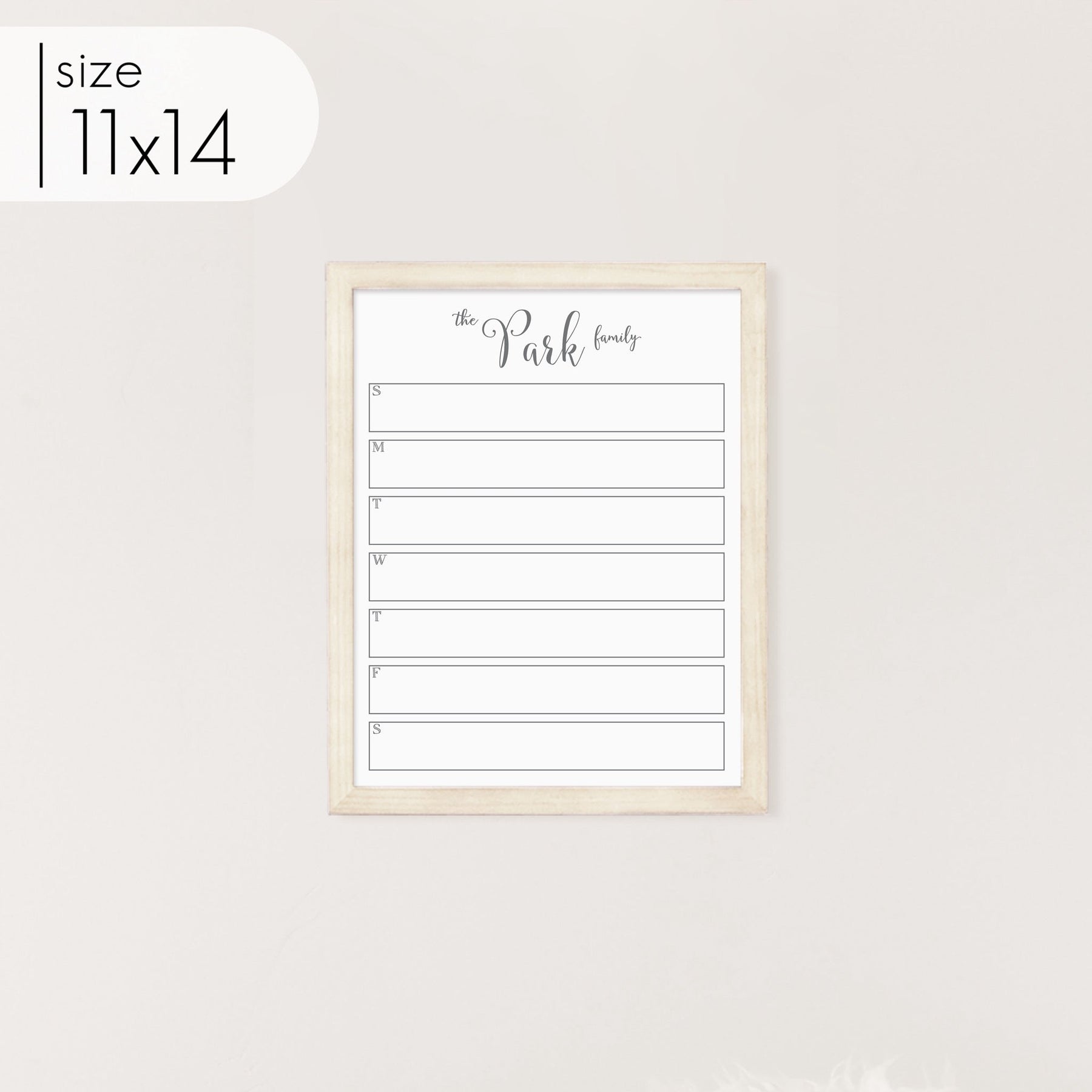 Weekly Framed Whiteboard Calendar | Vertical Knope