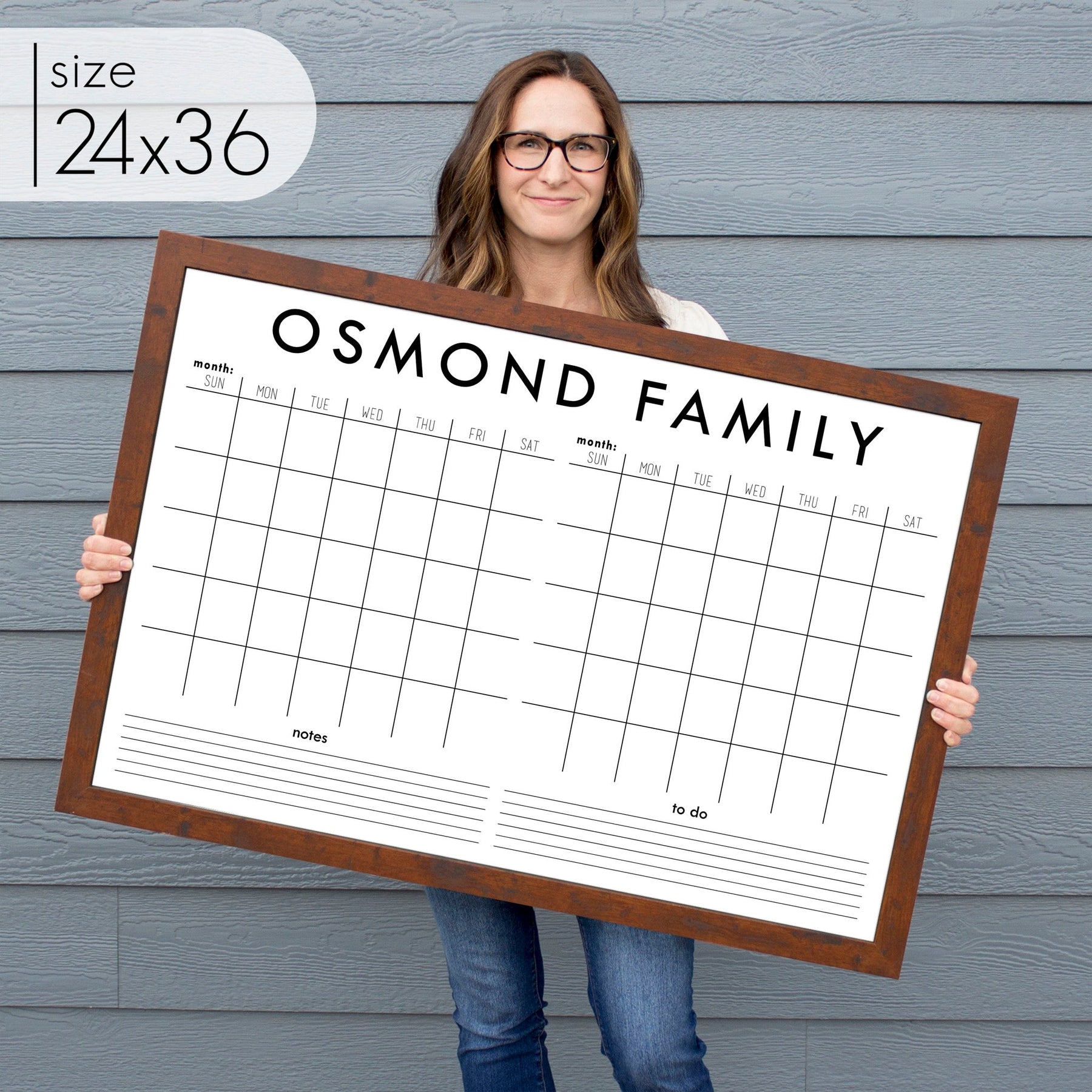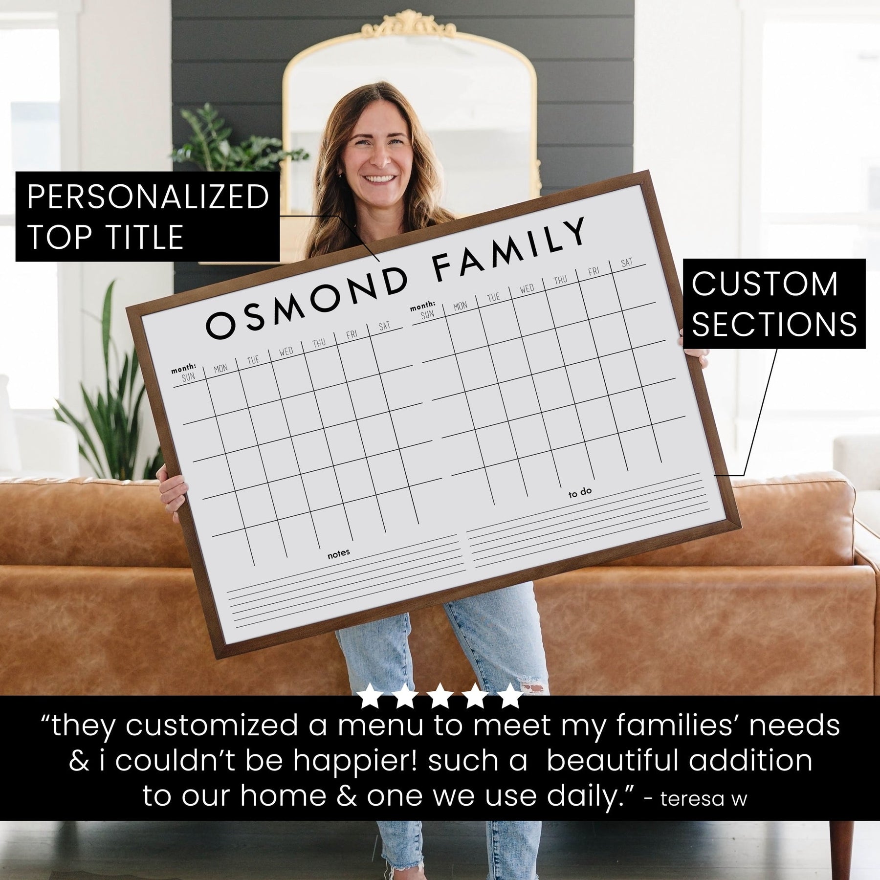2 Month Framed Whiteboard Calendar + 2 sections | Horizontal Madi