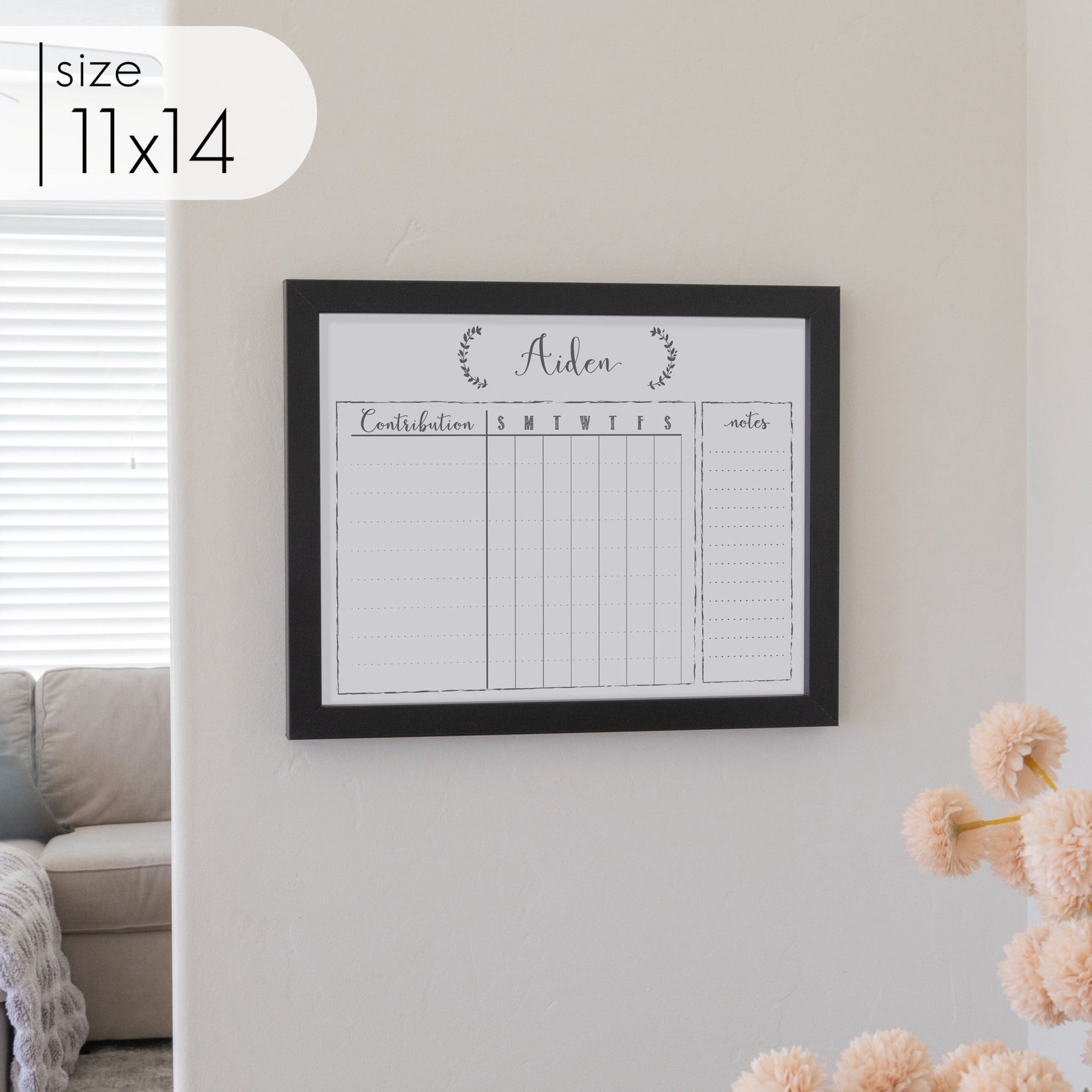 Help your kids stay on top of their responsibilities with our framed whiteboard kids chore chart! This fun and functional chart is designed to make organizing chores easy and interactive for your little ones. Featuring a dry-erase surface, it allows you to easily write and update tasks for each day or week, so your children can track their progress and check off completed chores.