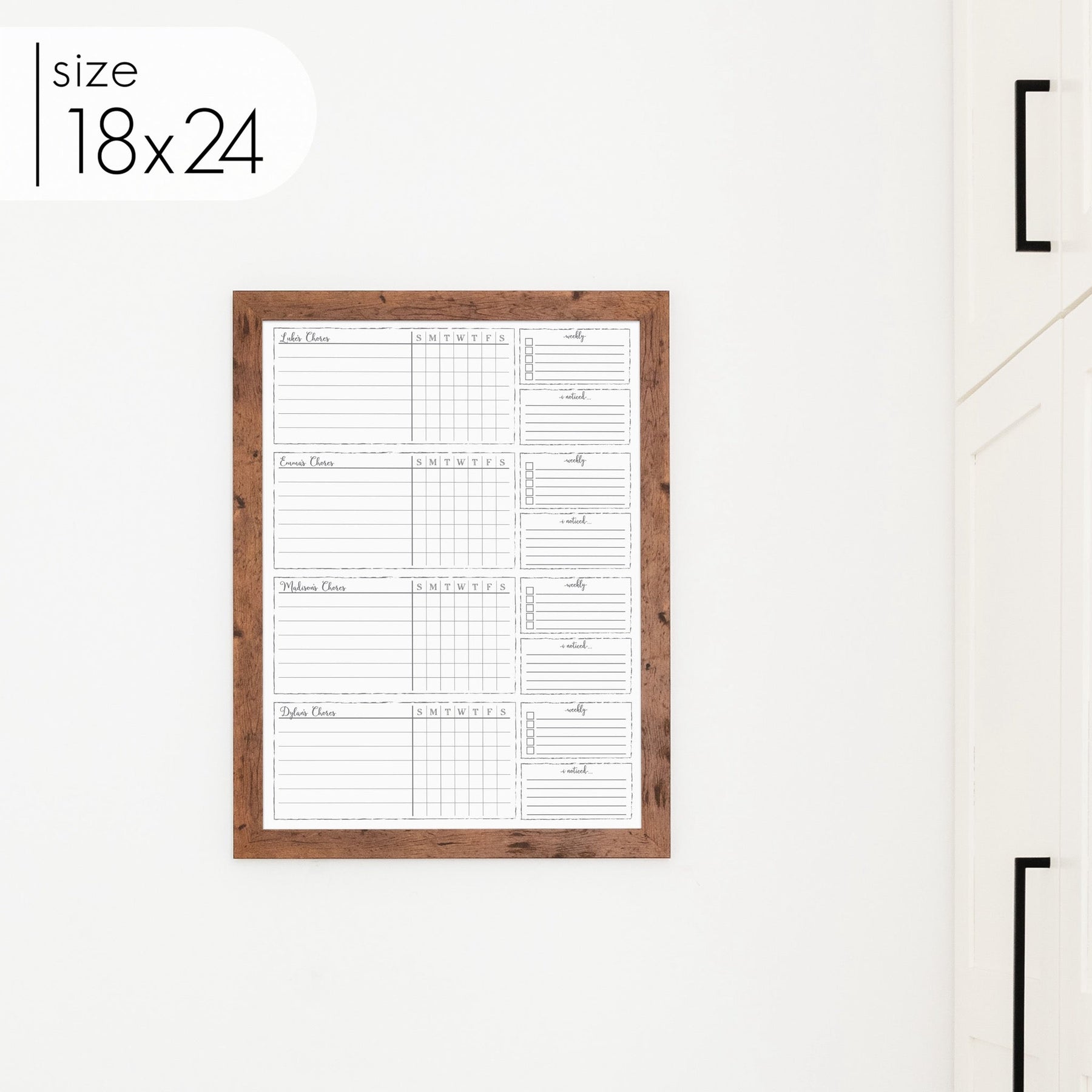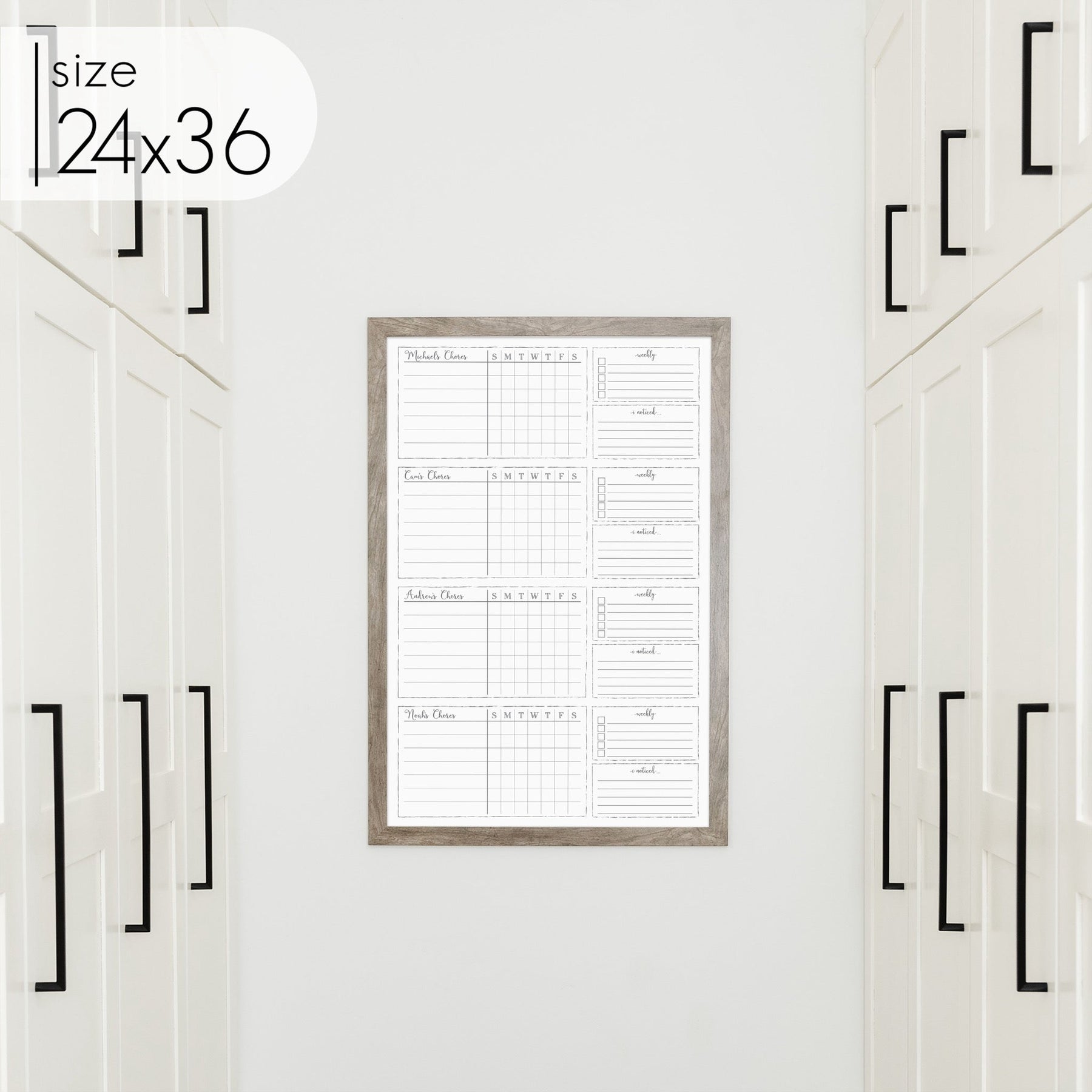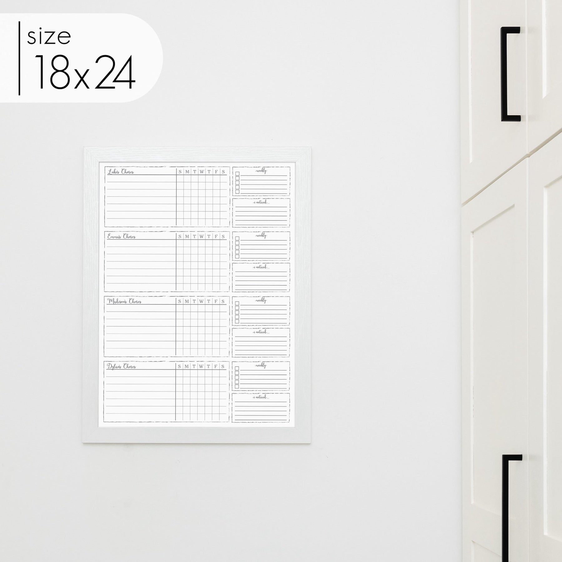 4 Person Framed Whiteboard Chore Chart | Vertical Knope