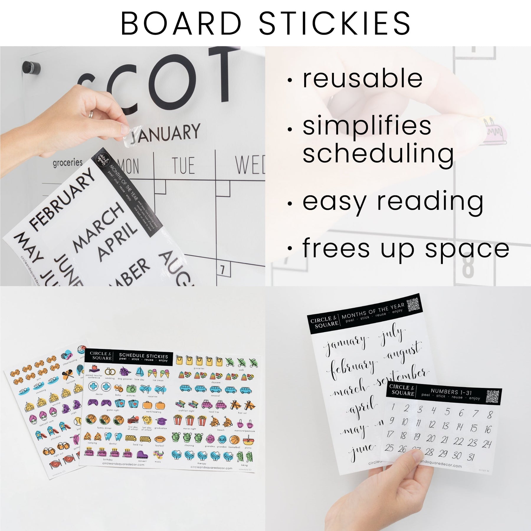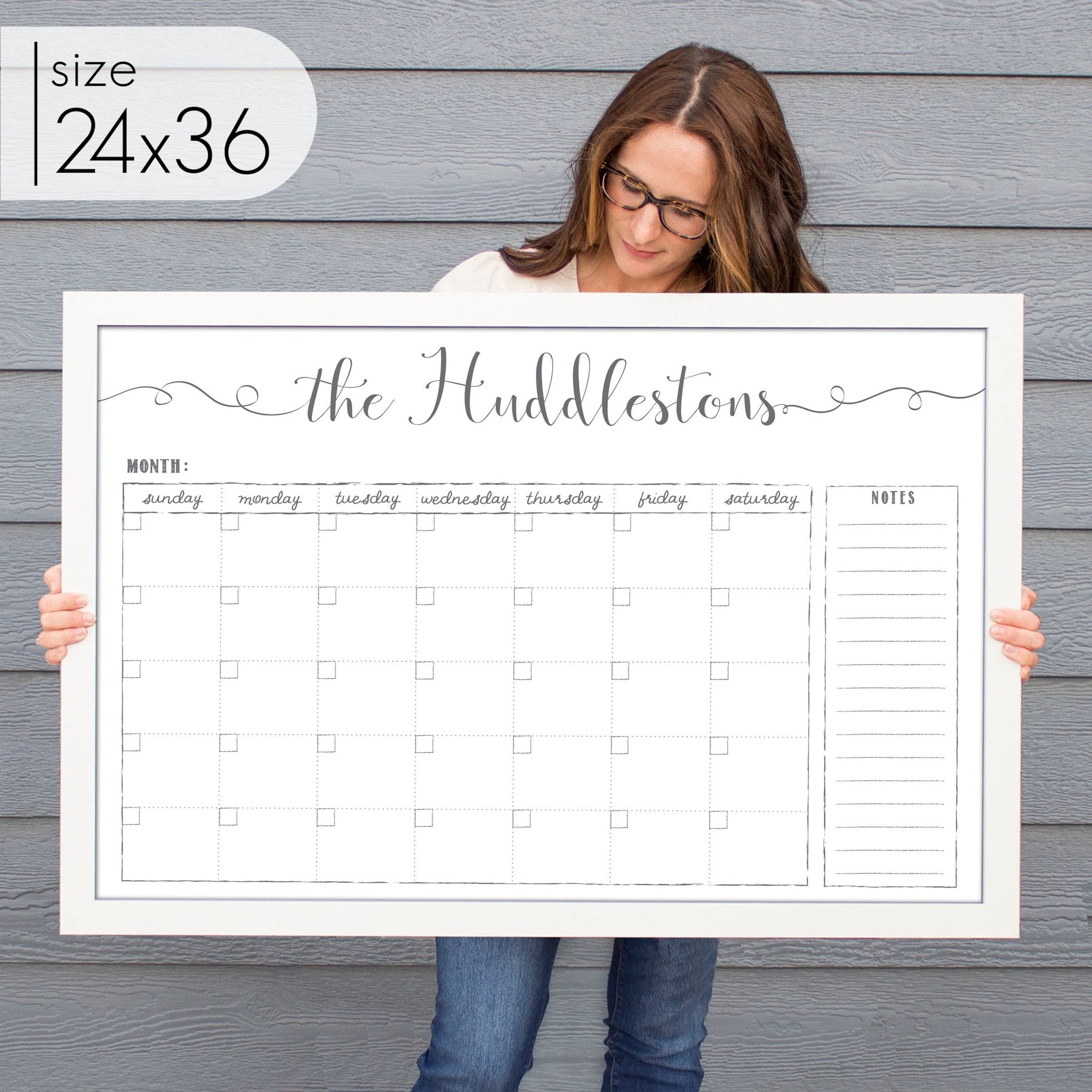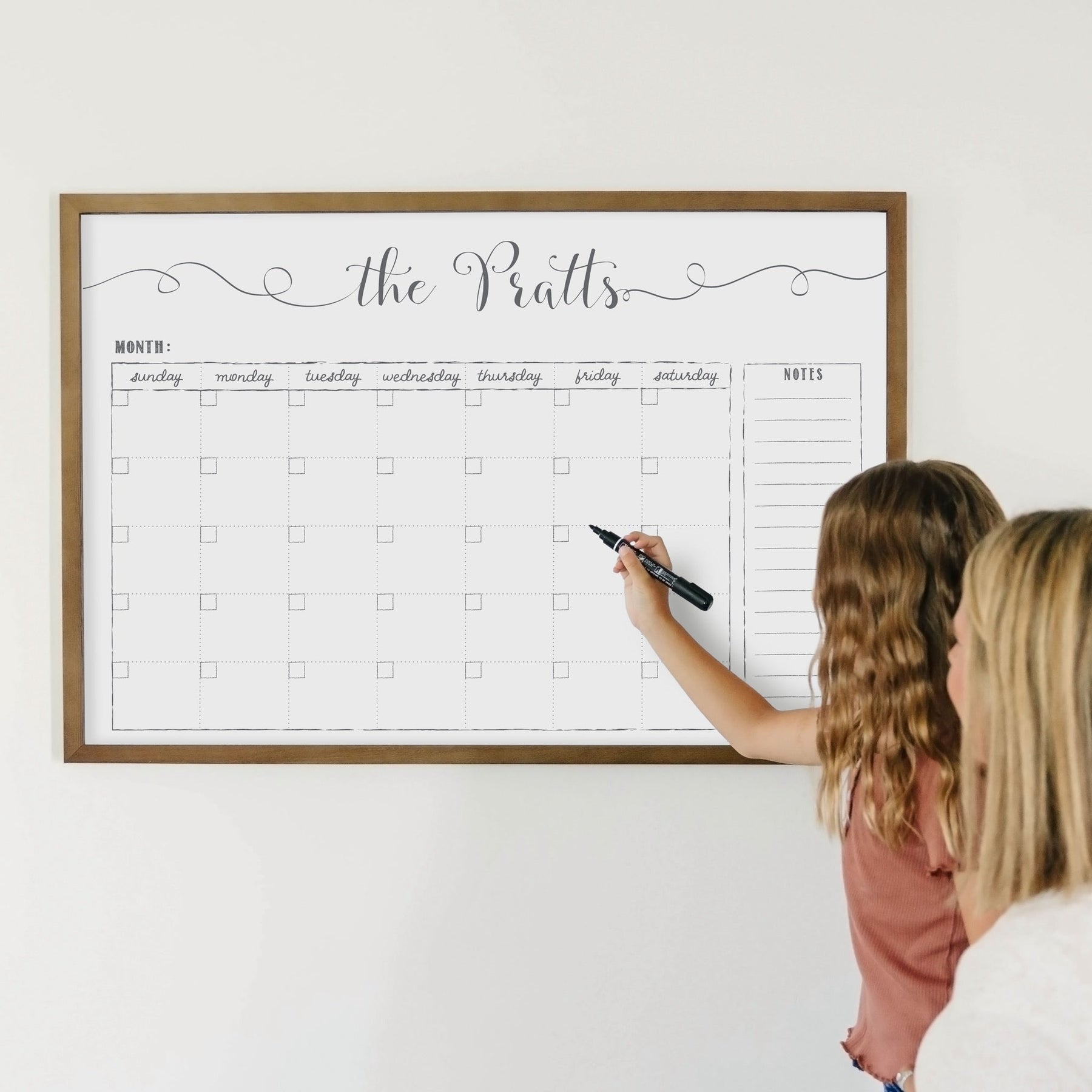 Our best-selling and original design, this custom dry-erase calendar is the perfect way to keep your family on track every month. Our top-rated whiteboard calendar is not only functional but also adds a stylish, personal touch to your home. Unlike typical dry erase boards, this design enhances your space without being an eyesore.