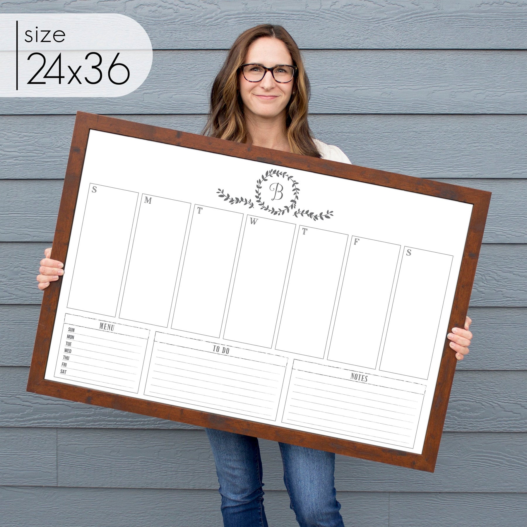 Stay on top of your week with our framed weekly whiteboard calendar. Designed to provide an in-depth look at your upcoming week, this whiteboard calendar offers a variety of sections to keep you organized and focused. With dedicated spaces for appointments, to-dos, goals, and notes, you’ll have everything you need to plan your days efficiently. The clean, erasable surface of the calendar dry-erase board makes it easy to update and adjust as needed, while the framed design adds a polished, functional touch to your wall. This weekly whiteboard calendar is the perfect tool for anyone looking to stay organized, whether at home, work, or school.