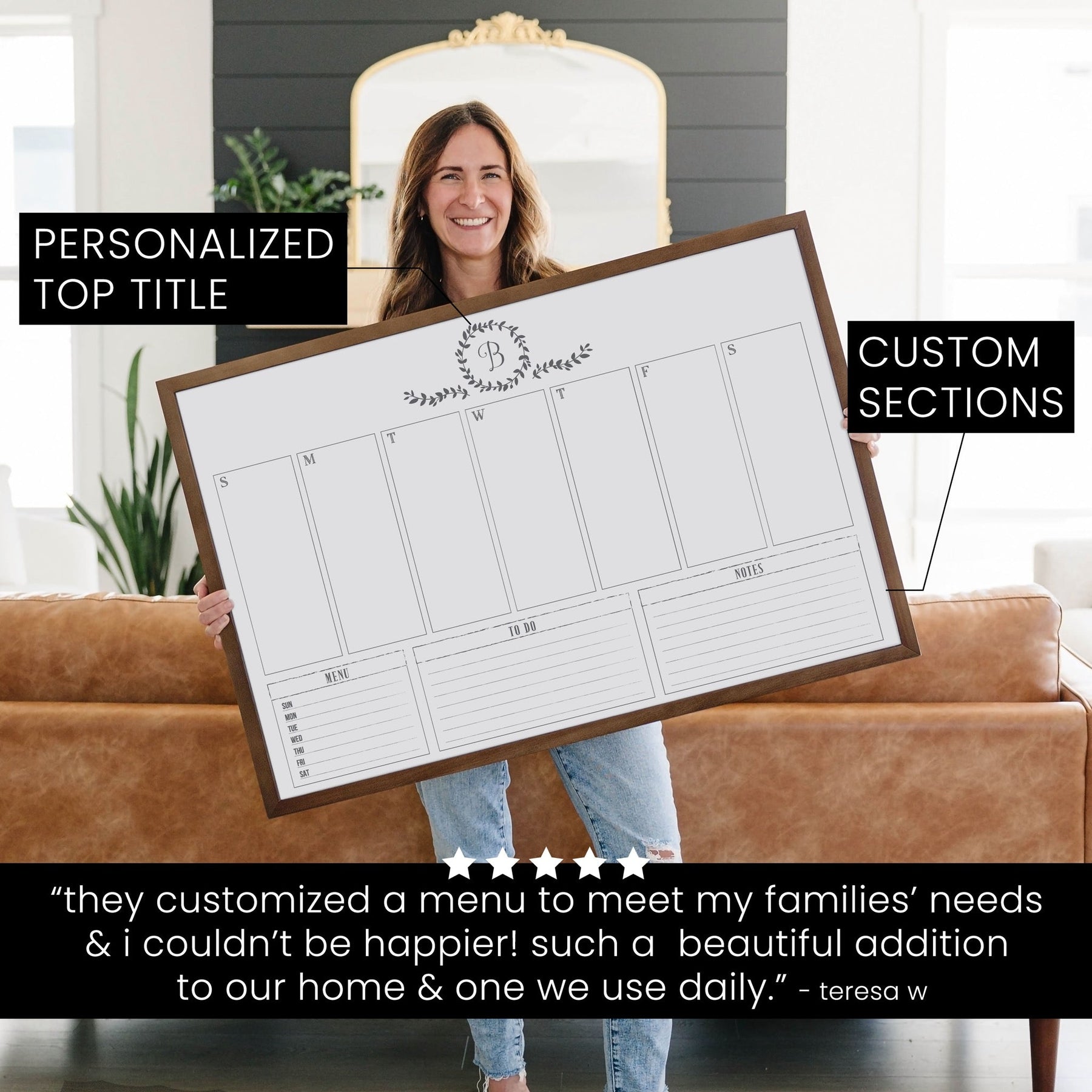 Weekly Framed Whiteboard Calendar + 3 sections | Horizontal Donna