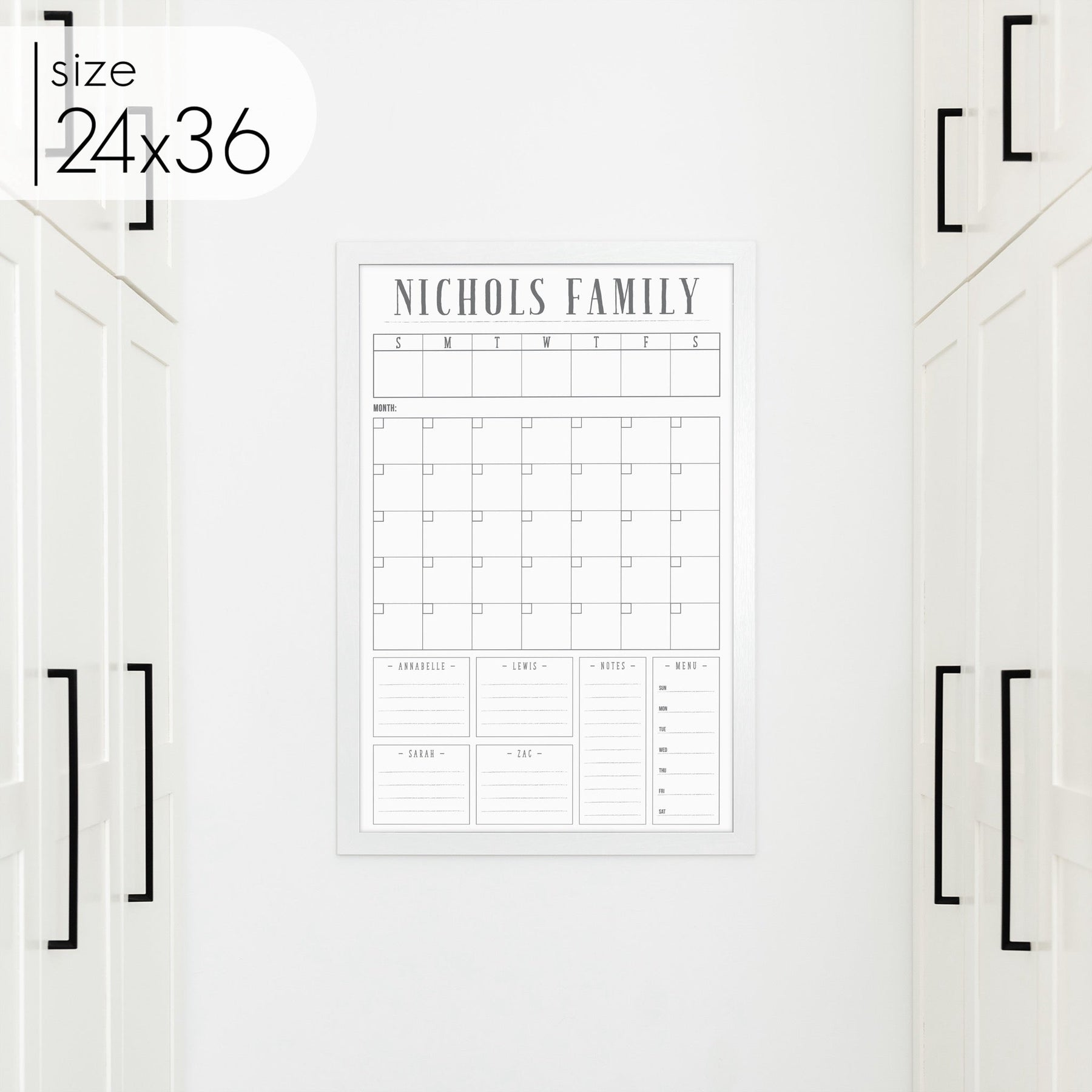 Week & Month Combo Framed Whiteboard + 6 sections | Vertical Swanson