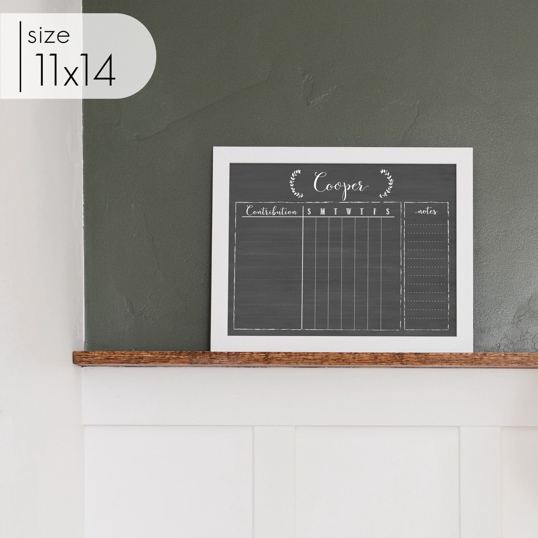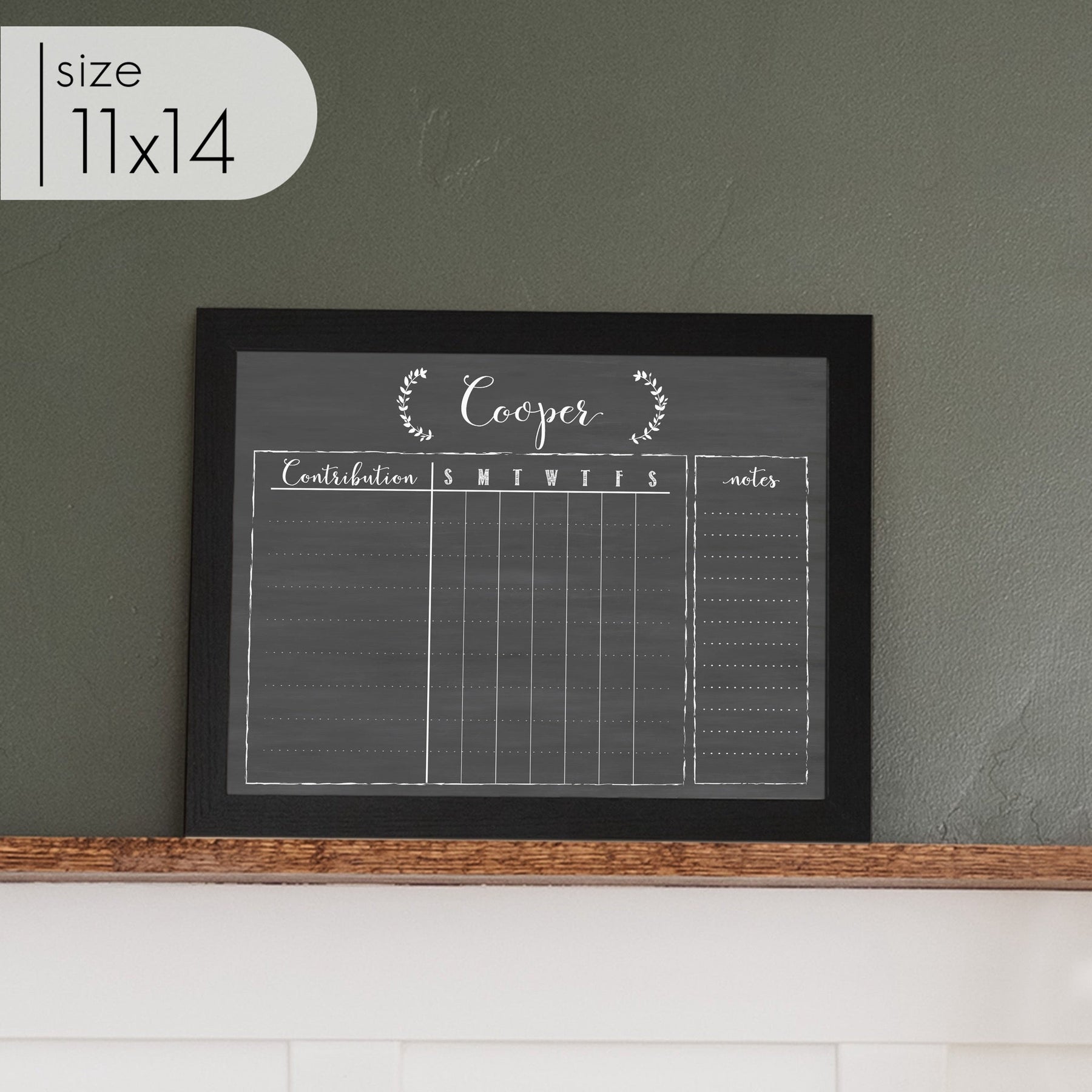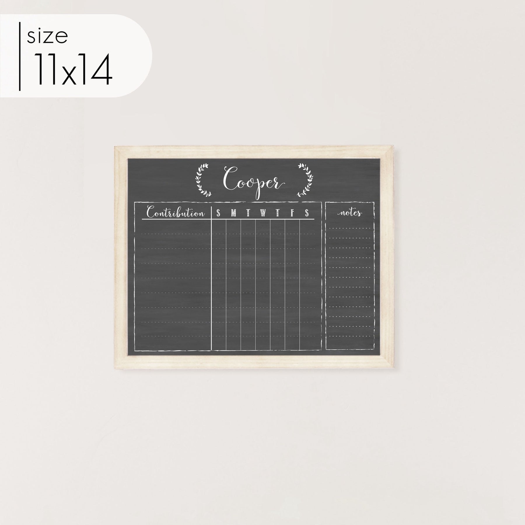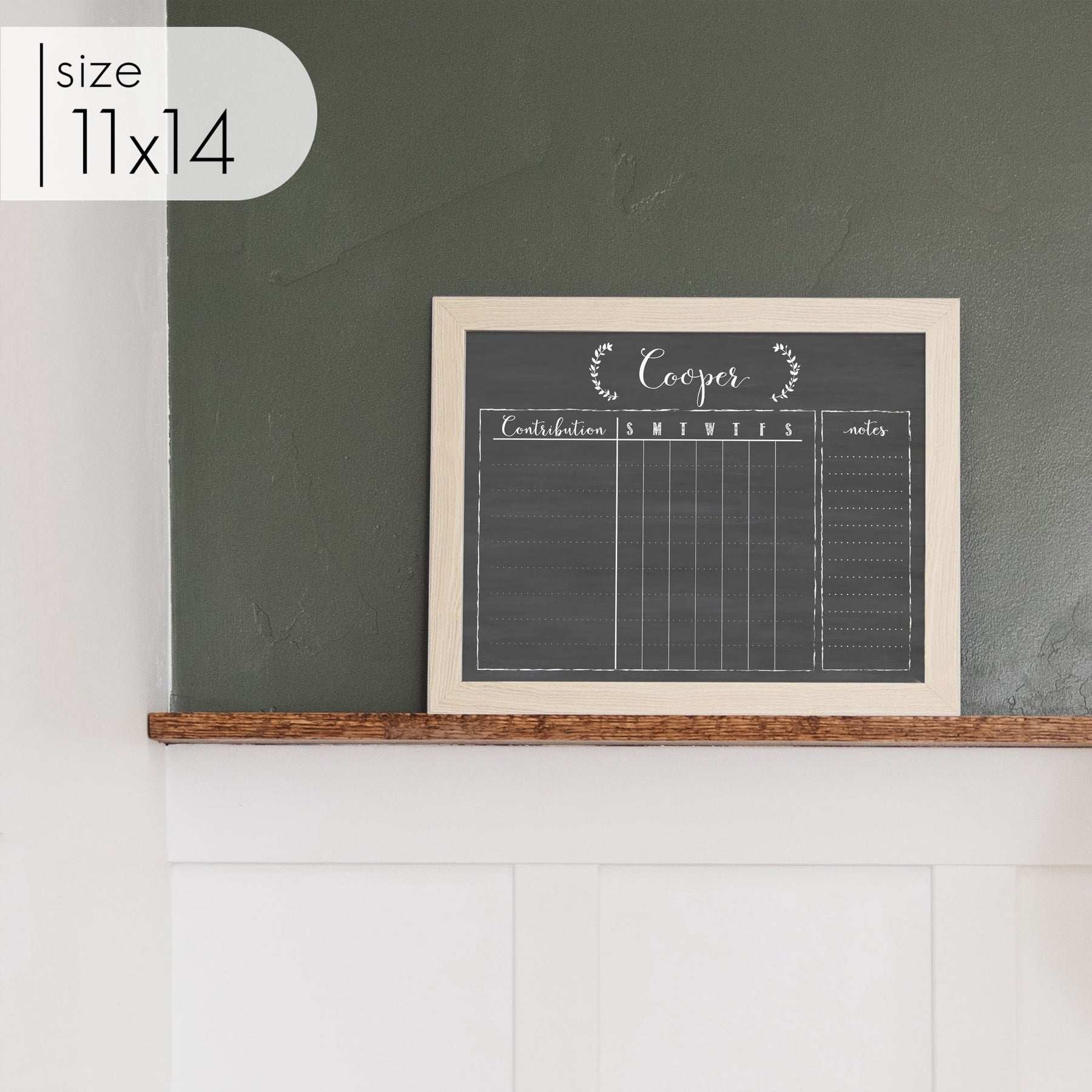 Make daily routines fun and organized with this personalized chalkboard chore chart for kids! Designed to help your child stay on top of responsibilities, this customizable chart makes tracking tasks easy and rewarding. Add your child's name or any title of your choice—whether it's a chore chart, task list, to-do list, or something unique to your home’s needs.