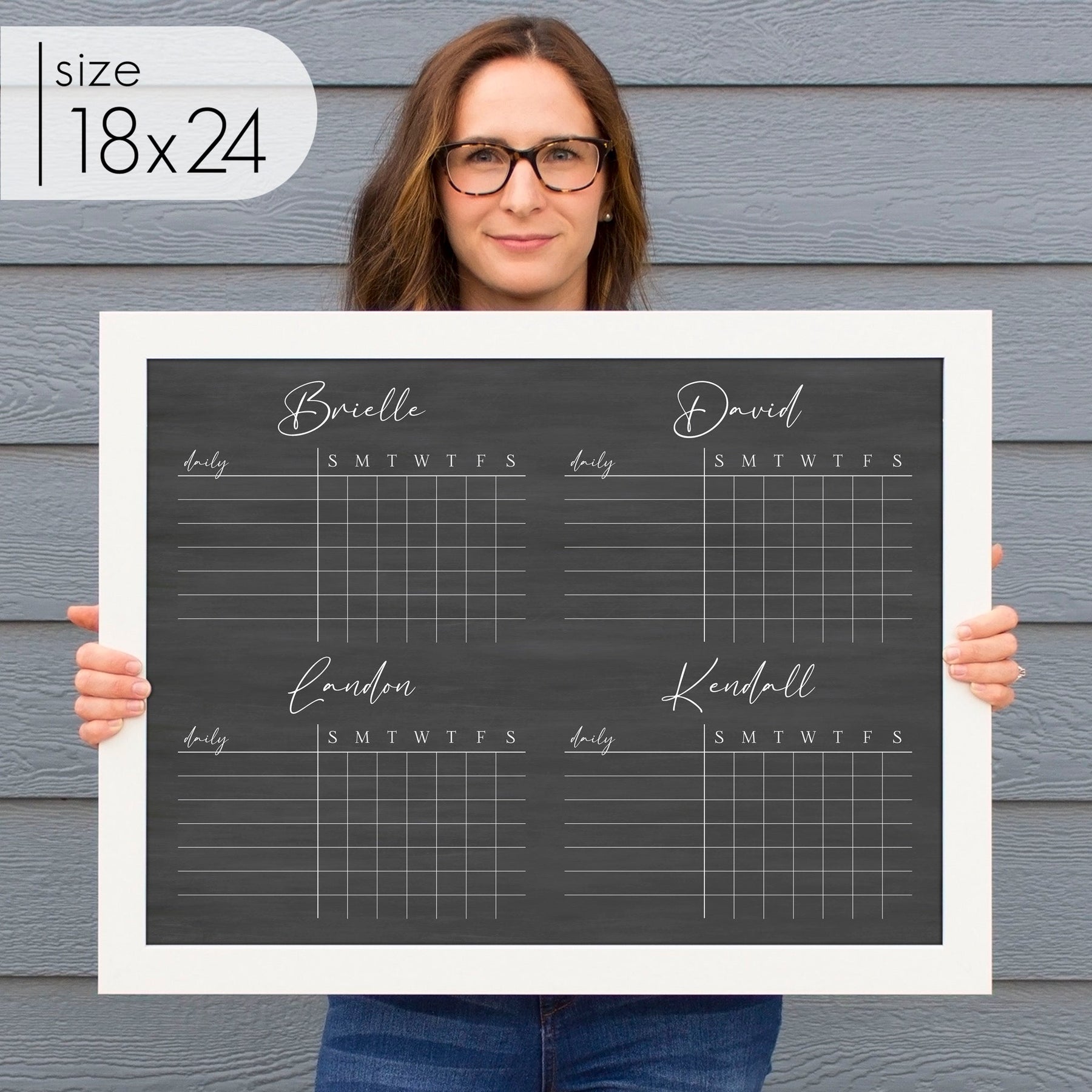 4 Person Framed Chore Chart Chalkboard | Horizontal Pennington