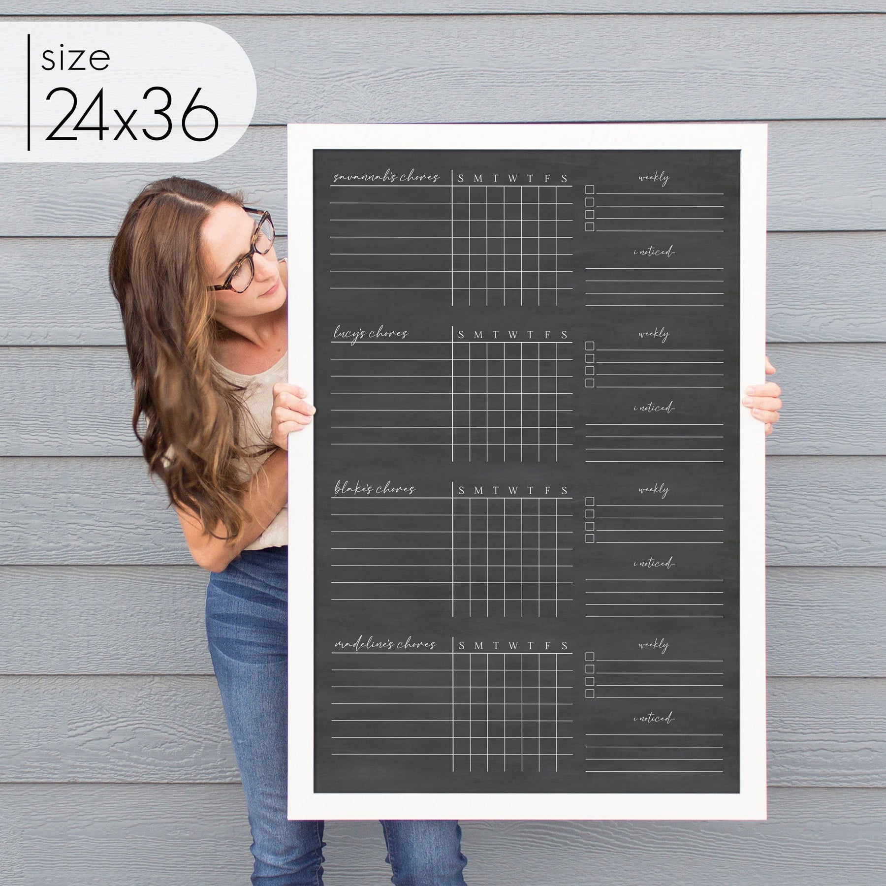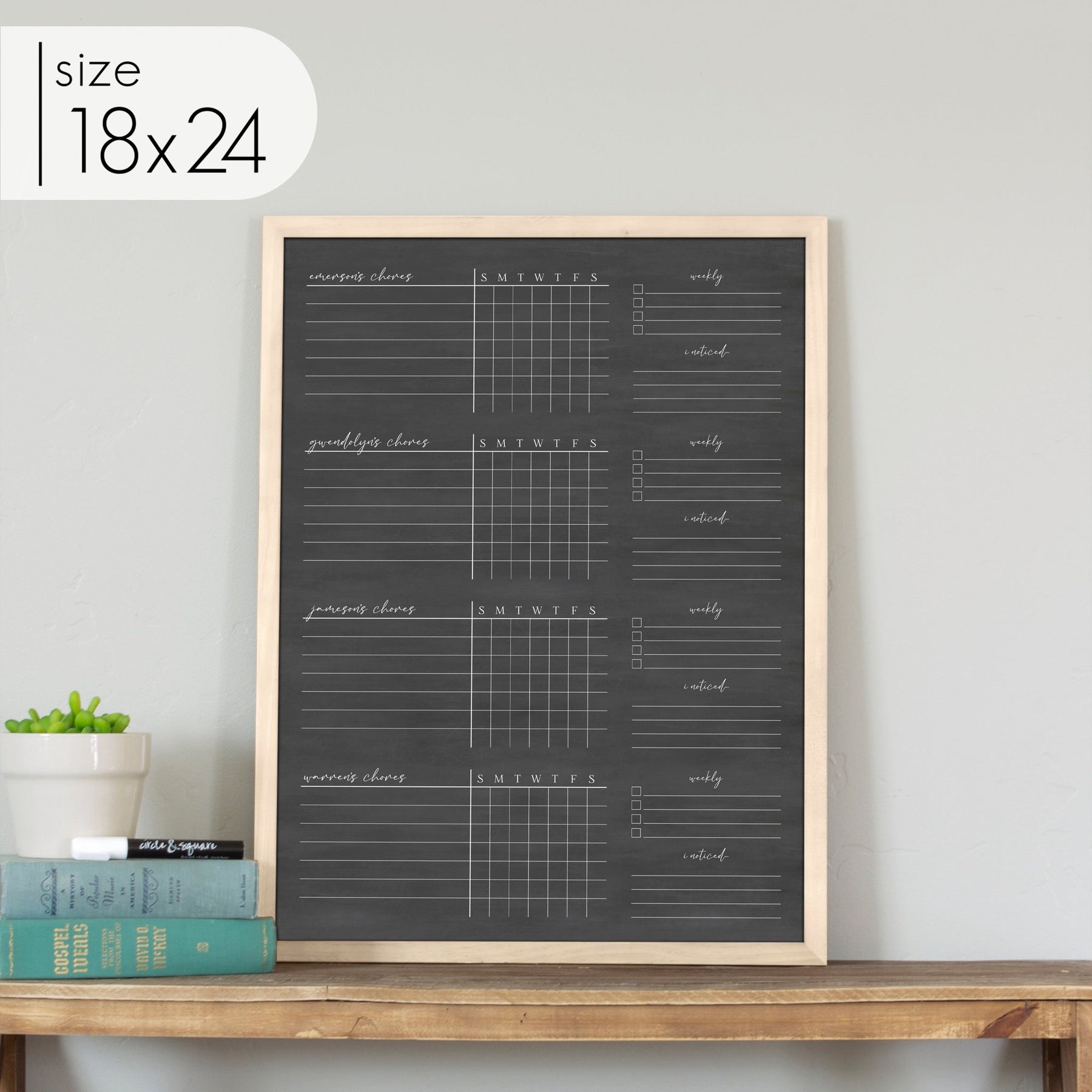 4 Person Framed Chalkboard Chore Chart | Vertical Pennington