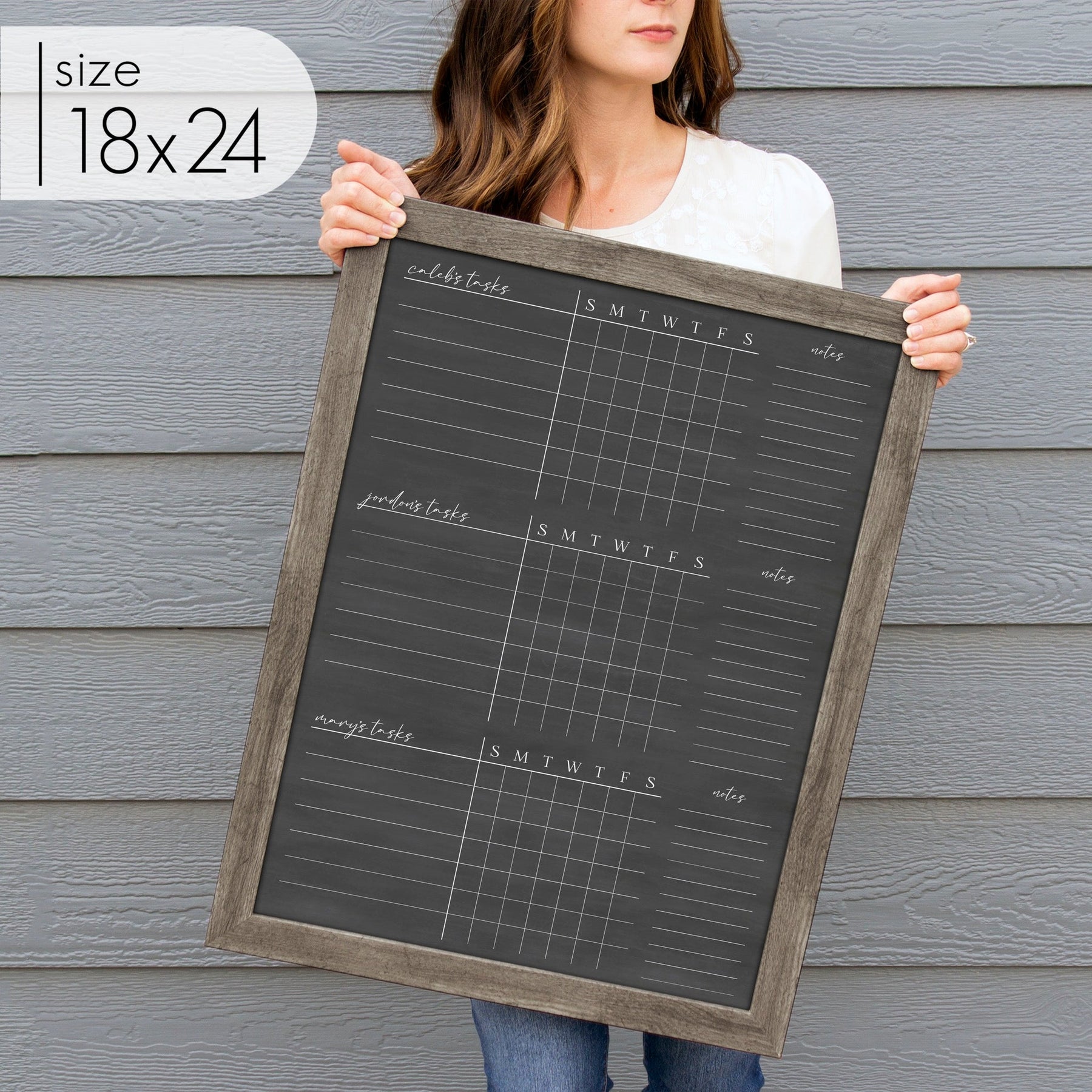 3 Person Framed Chalkboard Chore Chart | Vertical Pennington