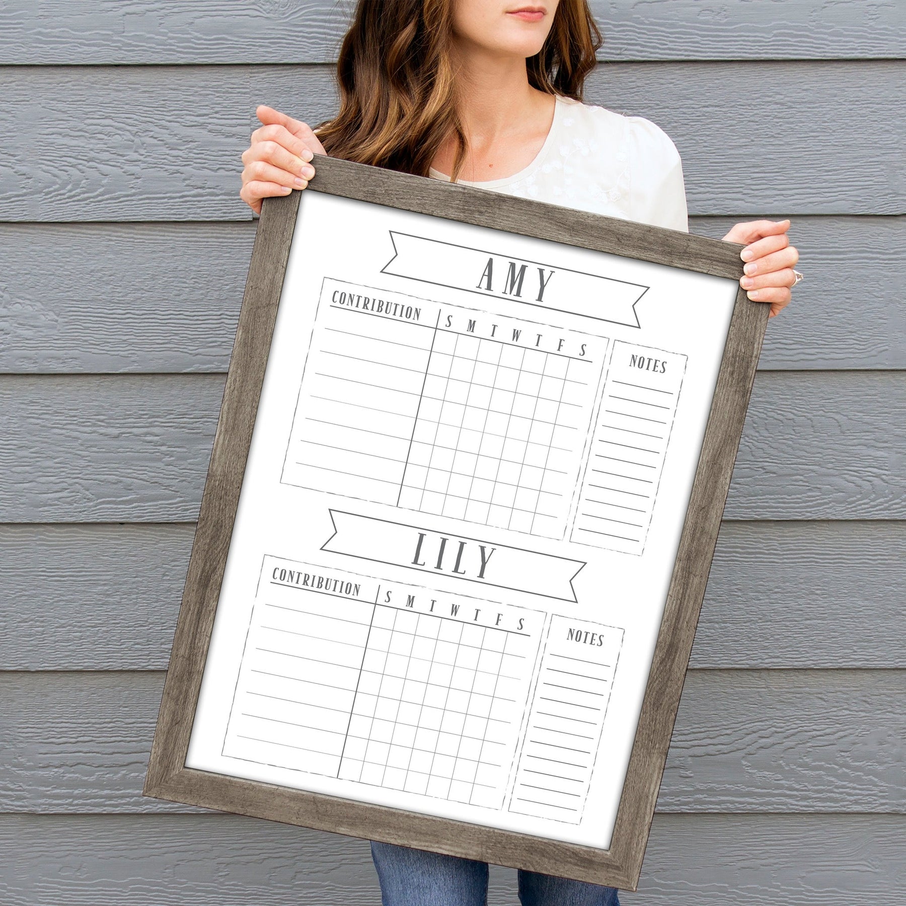 Help your kids stay on top of their responsibilities with our framed whiteboard kids chore chart! This fun and functional chart is designed to make organizing chores easy and interactive for your little ones. Featuring a dry-erase surface, it allows you to easily write and update tasks for each day or week, so your children can track their progress and check off completed chores.