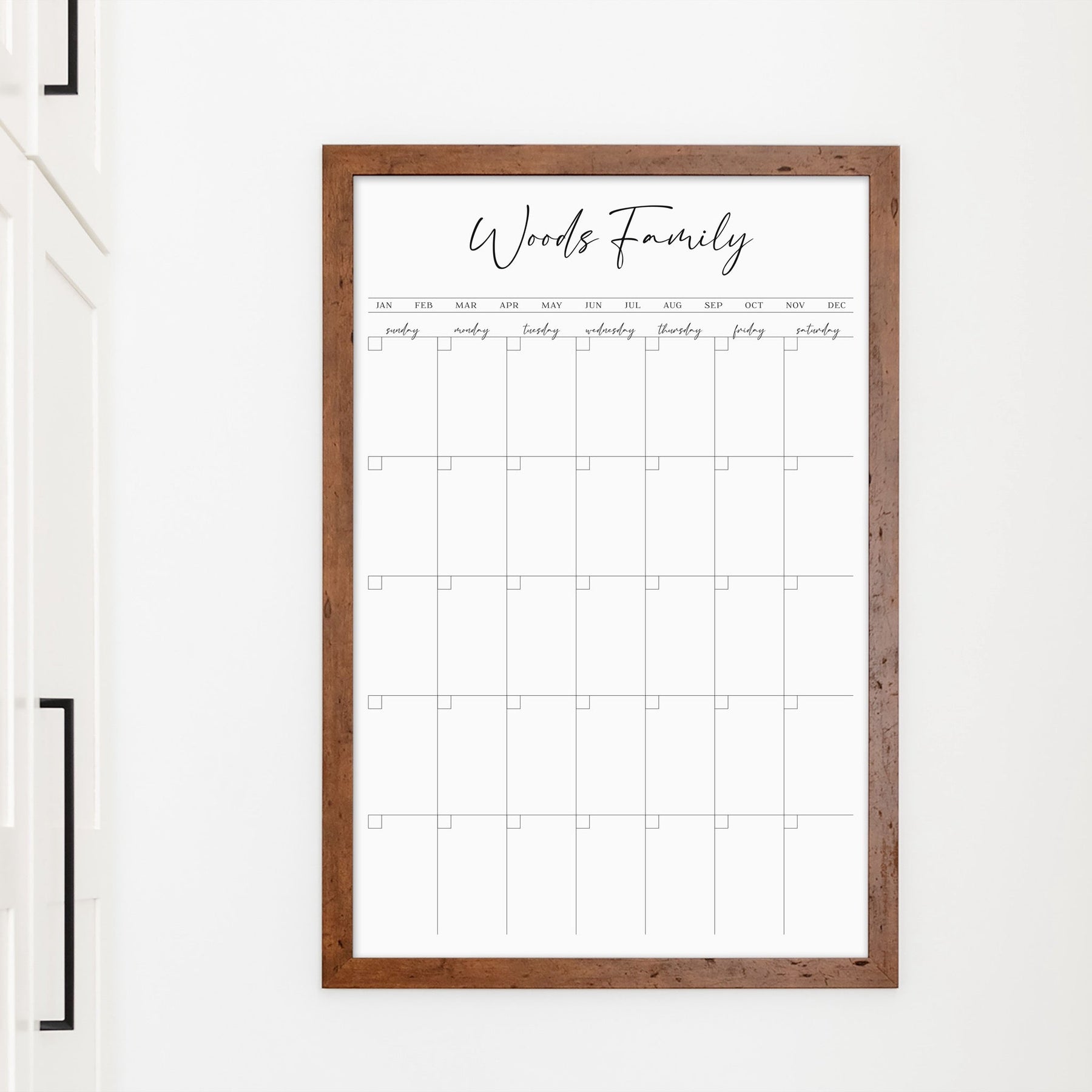 For maximum convenience, hang it in high-traffic areas like mudrooms, kitchens, or hallways where everyone can easily see it. Having a custom dry erase calendar in plain sight helps keep your family organized and on schedule. With this personalized whiteboard calendar, you’ll create a more organized, peaceful household while adding both style and functionality to your home.