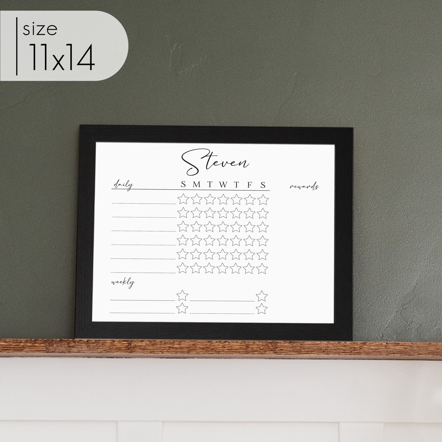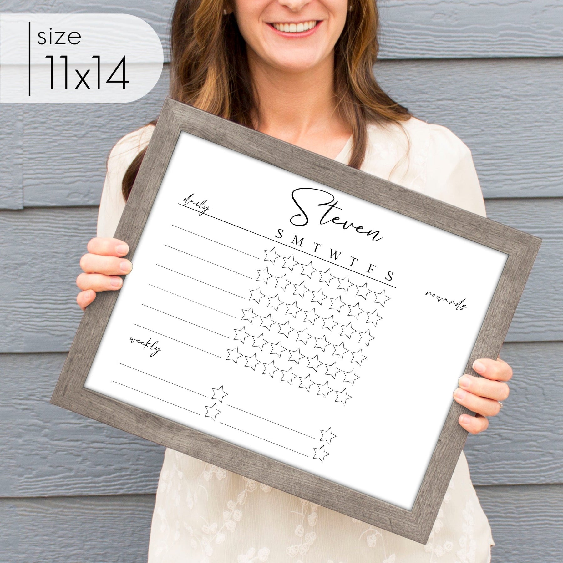 This framed whiteboard reward chart for kids is an engaging way to help your little ones stay organized and on top of their tasks. With clear spaces to write down assigned chores or activities, your child can easily check off each task as they complete it. The weekly responsibility section ensures that important duties are tracked, while the reward area lets you set personalized incentives for a job well done. Perfect for reinforcing good habits, this whiteboard chart makes it easy to encourage progress and celebrate achievements. With its stylish frame, it adds a functional and fun touch to any room, helping kids stay focused and motivated every day.