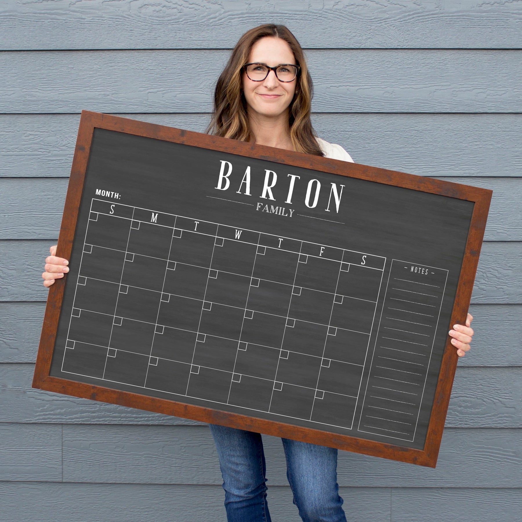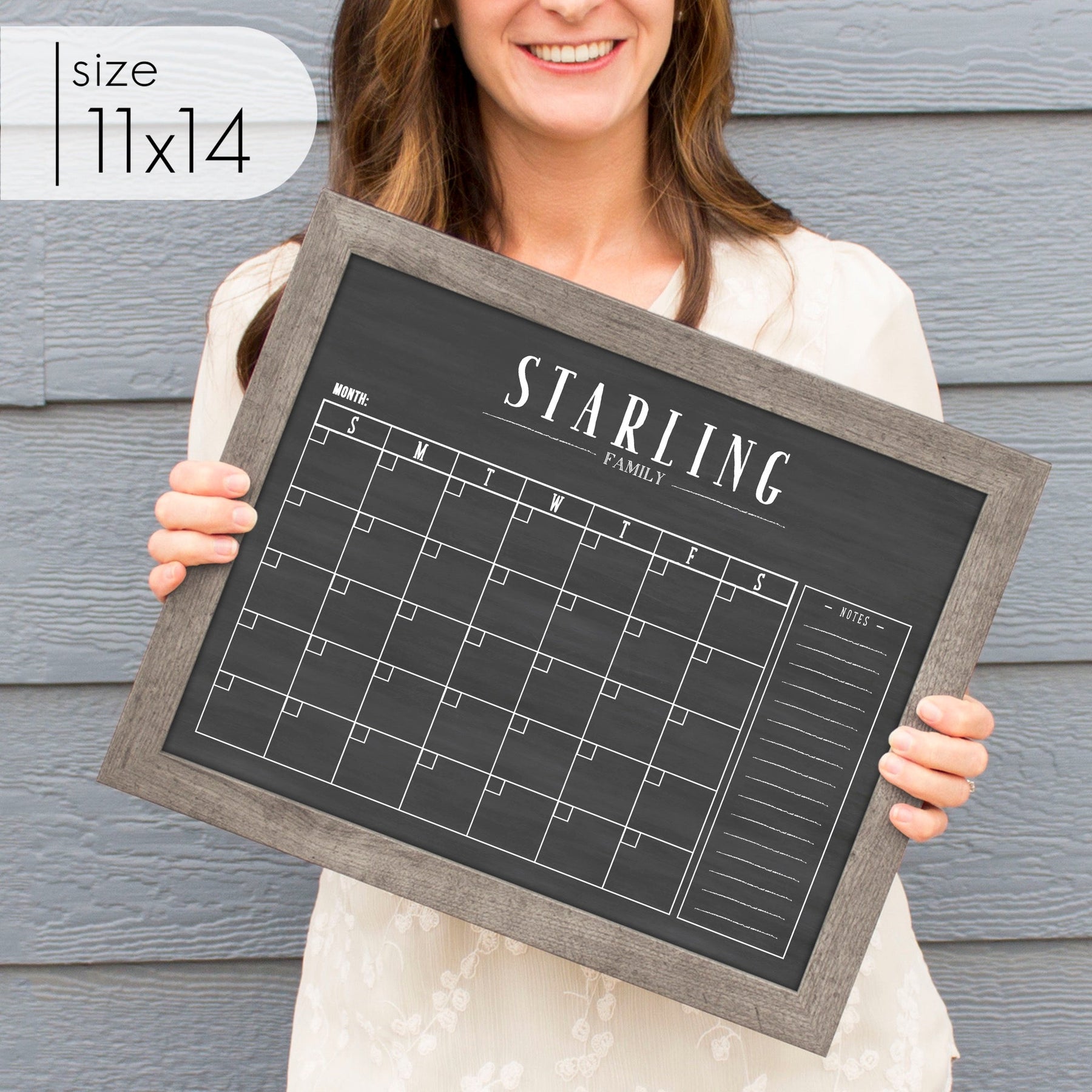 Stay on top of your busy schedule with our best-selling personalized chalkboard calendar! Designed with both style and function in mind, this chalkboard sign adds a sophisticated touch to your home while keeping your monthly plans in check. Unlike traditional dry-erase boards, our chalkboard background blends seamlessly into your decor, making it a statement piece rather than an eyesore.