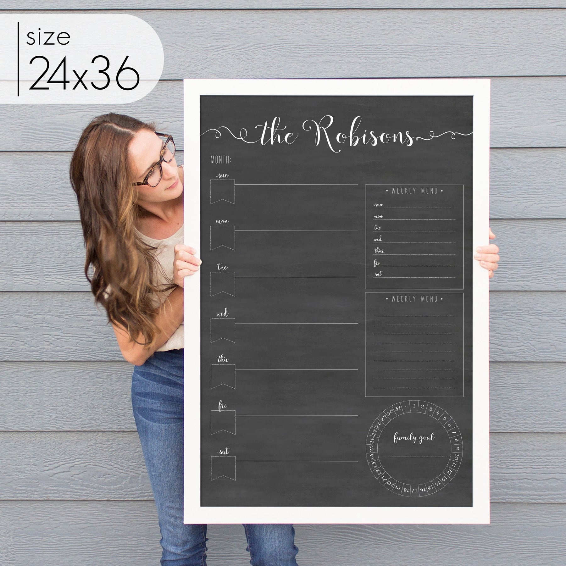 Weekly Framed Chalkboard Calendar + 3 sections | Vertical Knope