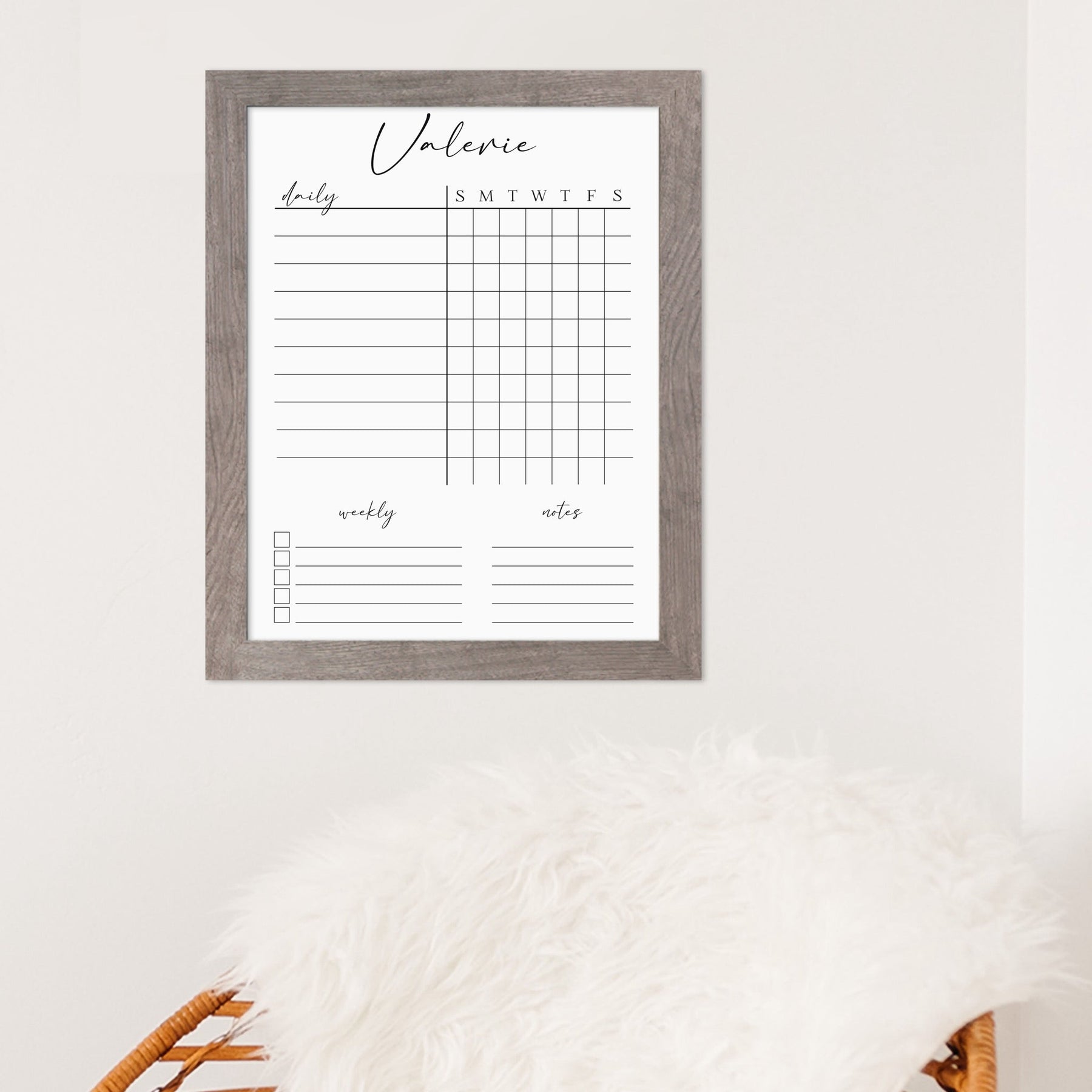 Help your kids stay on top of their responsibilities with our framed whiteboard kids chore chart! This fun and functional chart is designed to make organizing chores easy and interactive for your little ones. Featuring a dry-erase surface, it allows you to easily write and update tasks for each day or week, so your children can track their progress and check off completed chores.