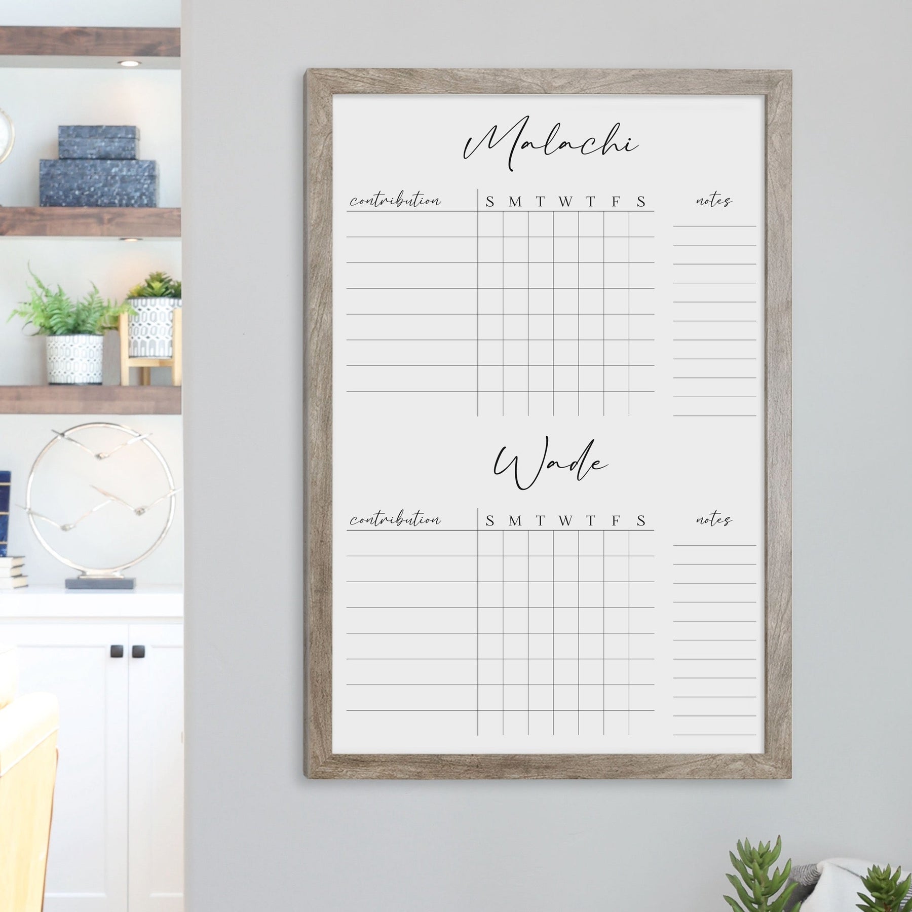 2 Person Framed Whiteboard Chore Chart | Vertical Pennington