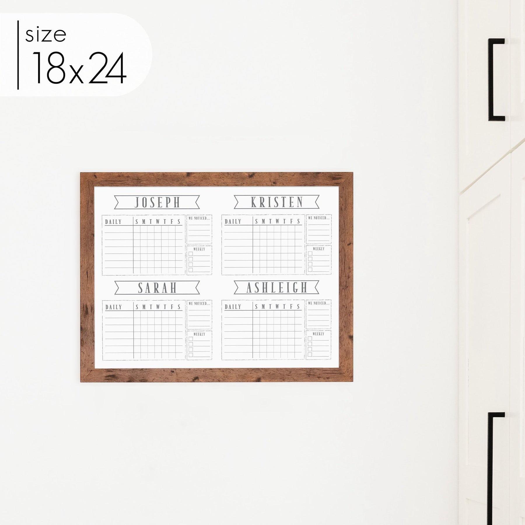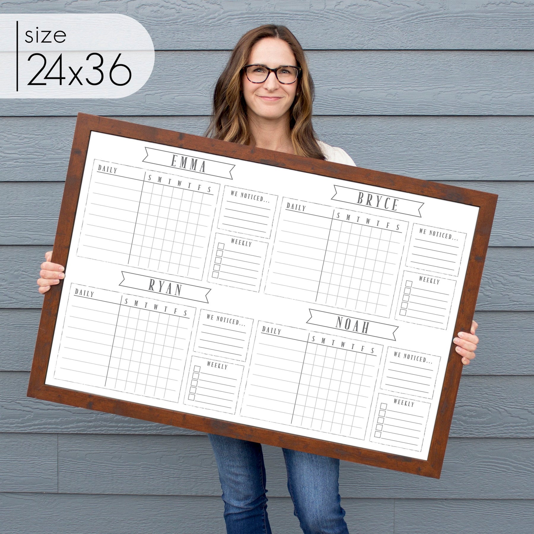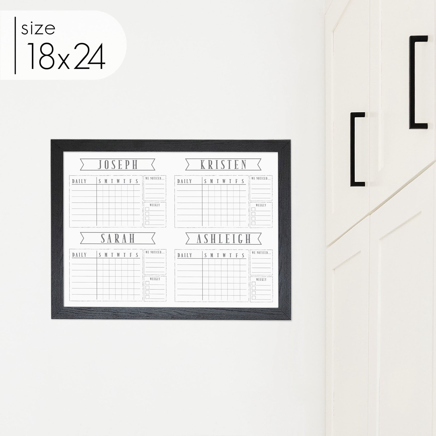 4 Person Framed Chore Chart Whiteboard | Horizontal Swanson