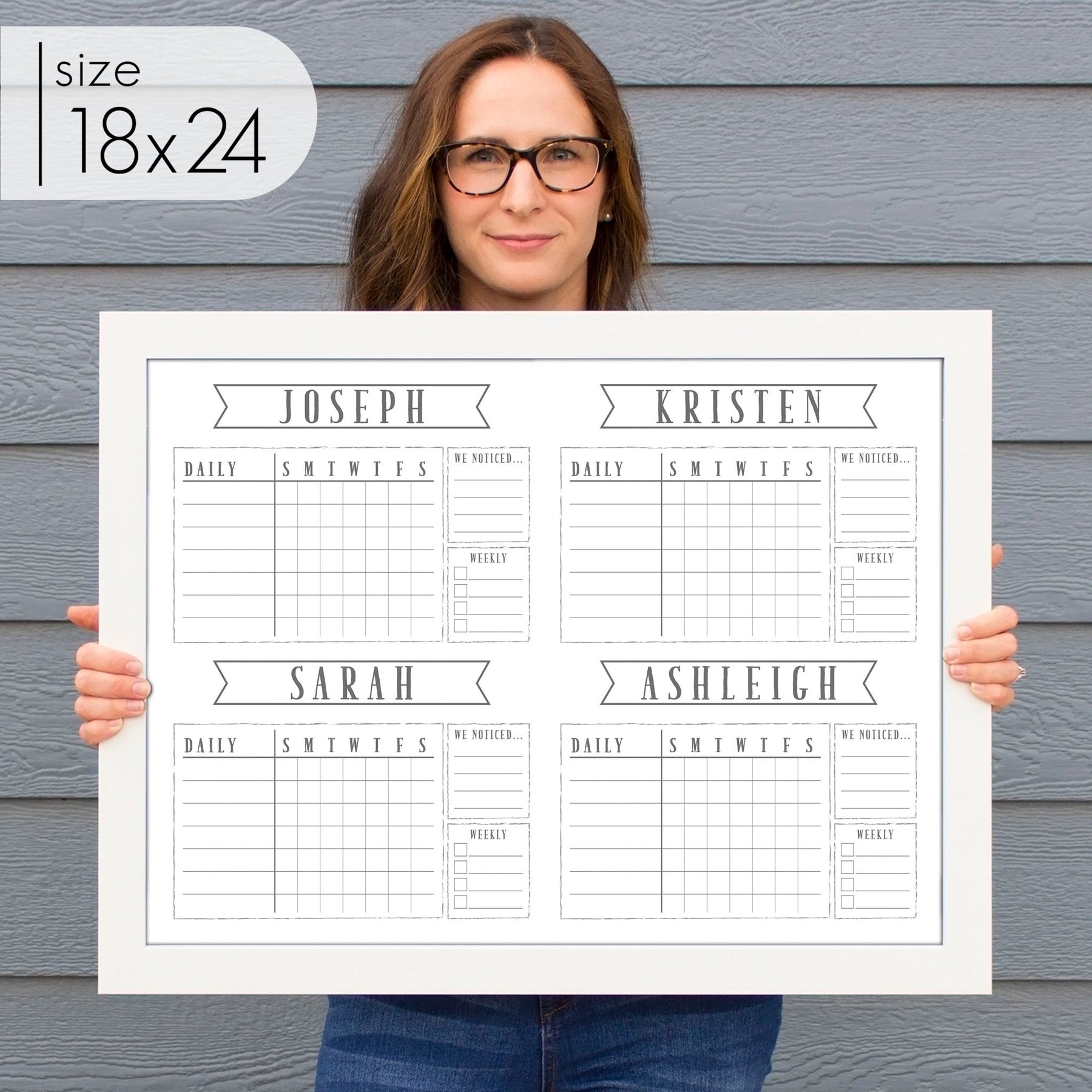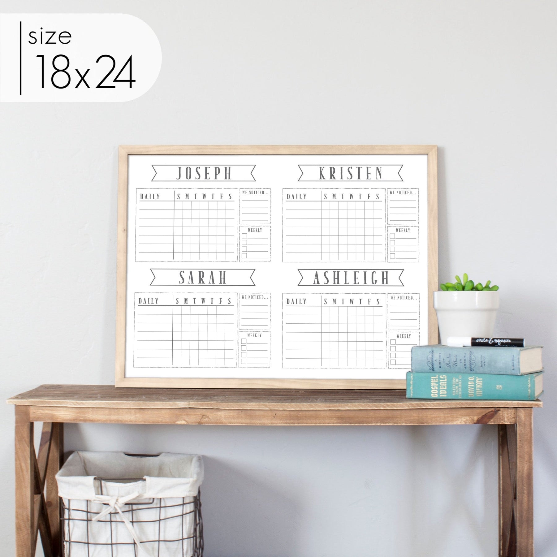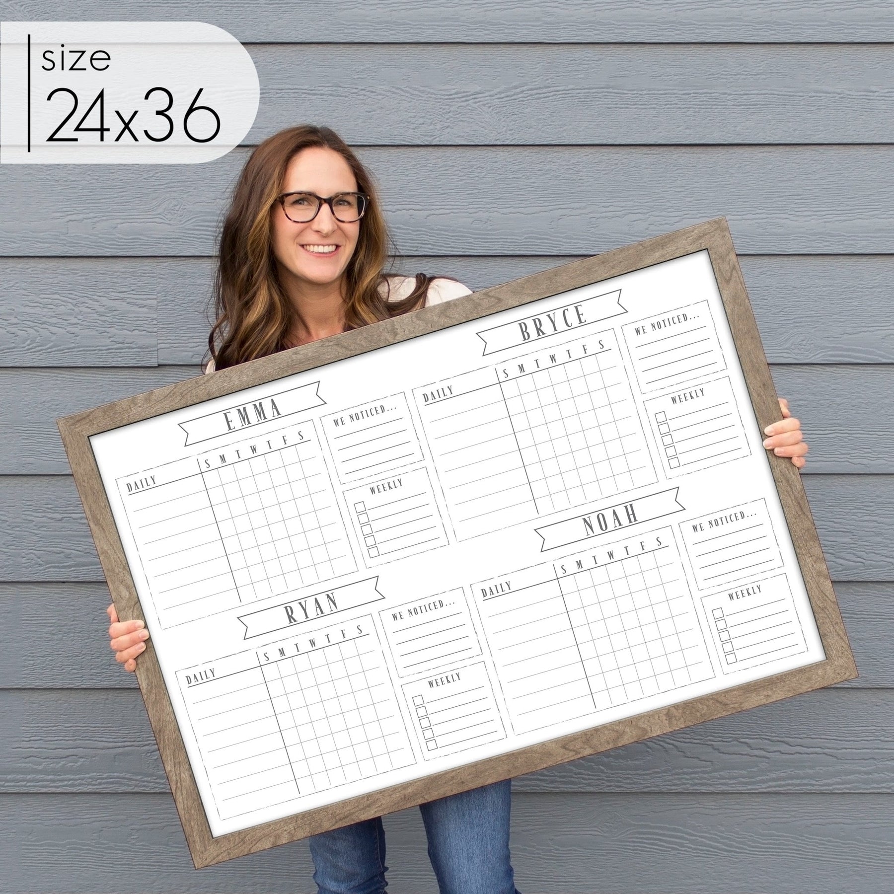4 Person Framed Chore Chart Whiteboard | Horizontal Swanson