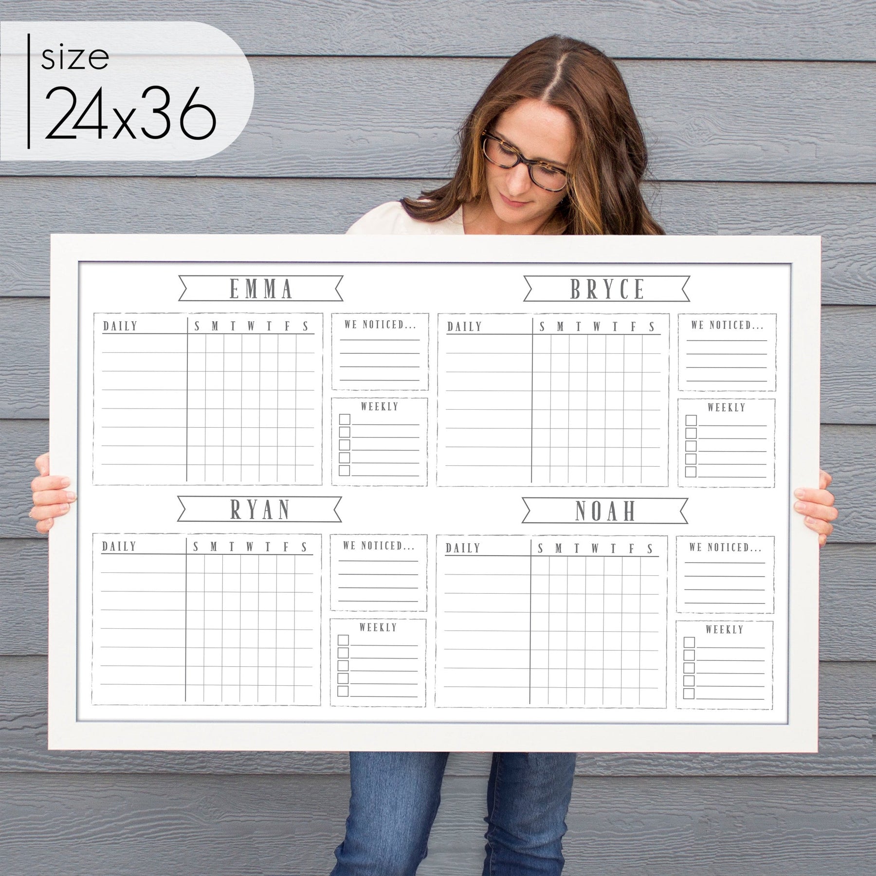 Help your kids stay on top of their responsibilities with our framed whiteboard kids chore chart! This fun and functional chart is designed to make organizing chores easy and interactive for your little ones. Featuring a dry-erase surface, it allows you to easily write and update tasks for each day or week, so your children can track their progress and check off completed chores.