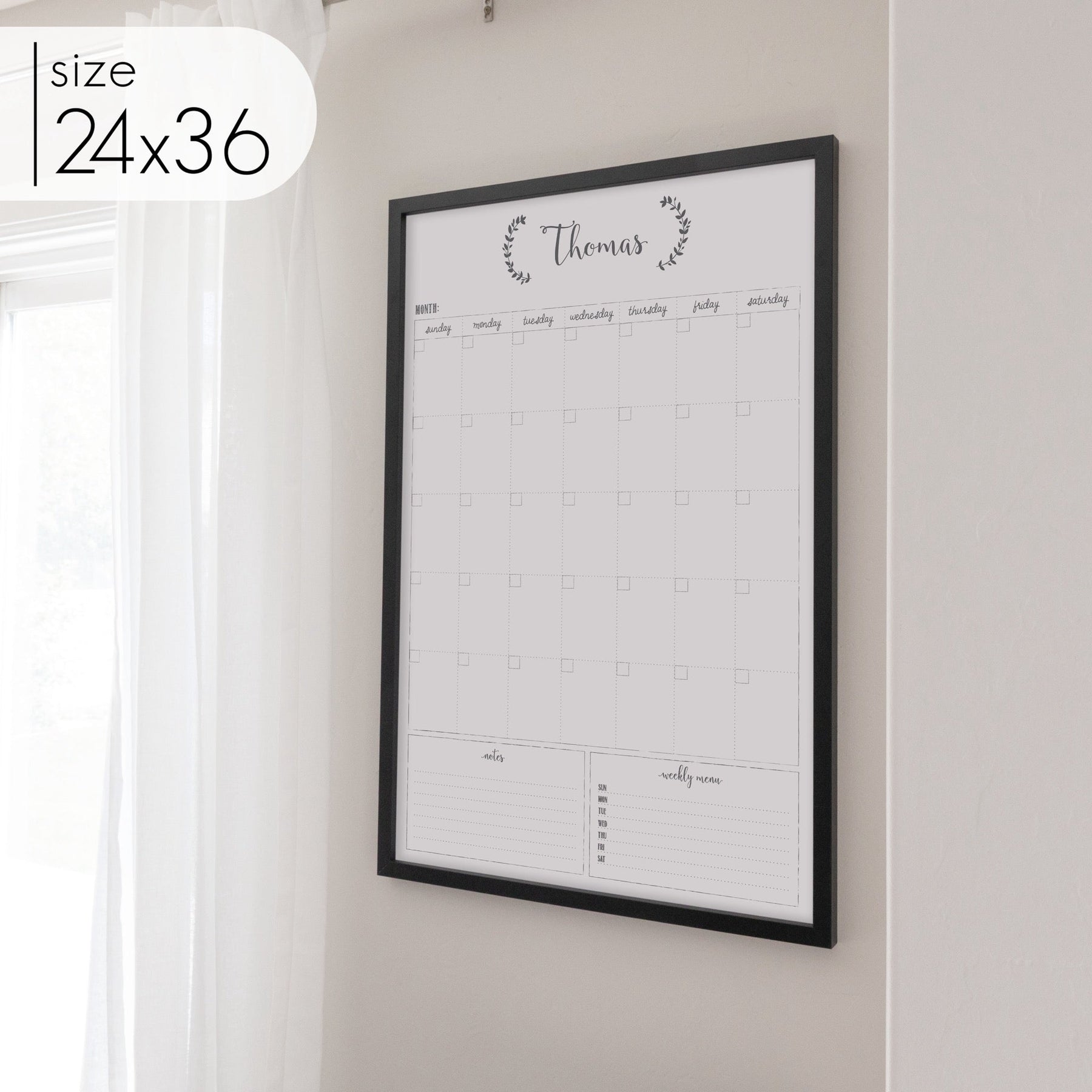 For maximum convenience, hang it in high-traffic areas like mudrooms, kitchens, or hallways where everyone can easily see it. Having a custom dry erase calendar in plain sight helps keep your family organized and on schedule. With this personalized whiteboard calendar, you’ll create a more organized, peaceful household while adding both style and functionality to your home.