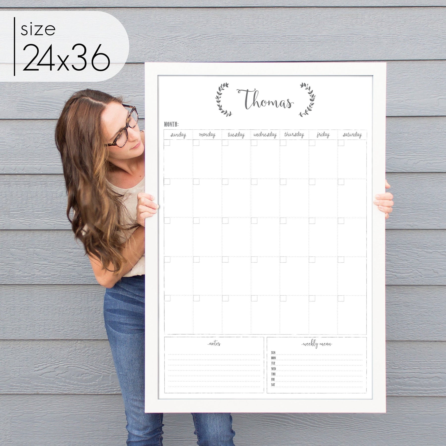 Our best-selling and original design, this custom dry-erase calendar is the perfect way to keep your family on track every month. Our top-rated whiteboard calendar is not only functional but also adds a stylish, personal touch to your home. Unlike typical dry erase boards, this design enhances your space without being an eyesore.