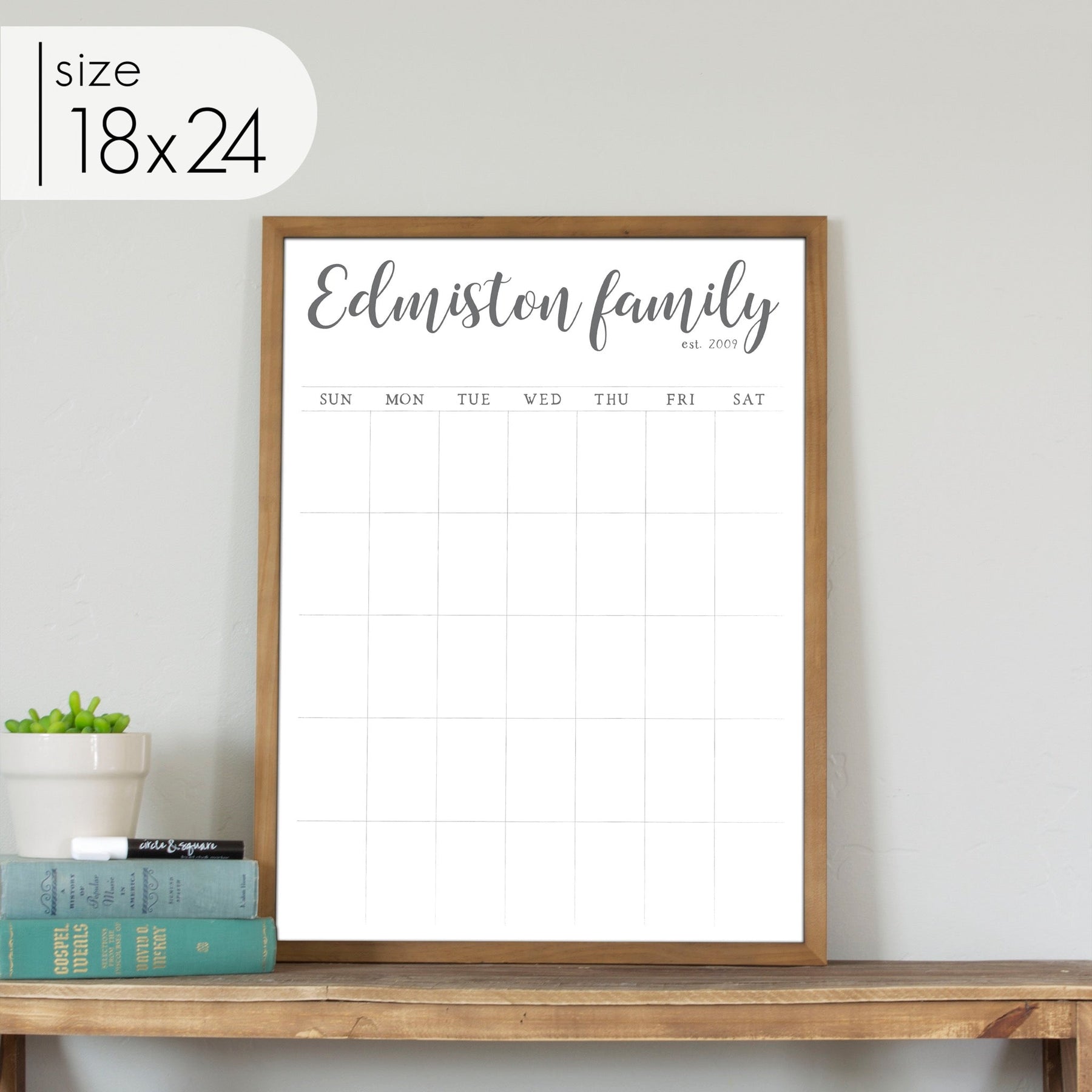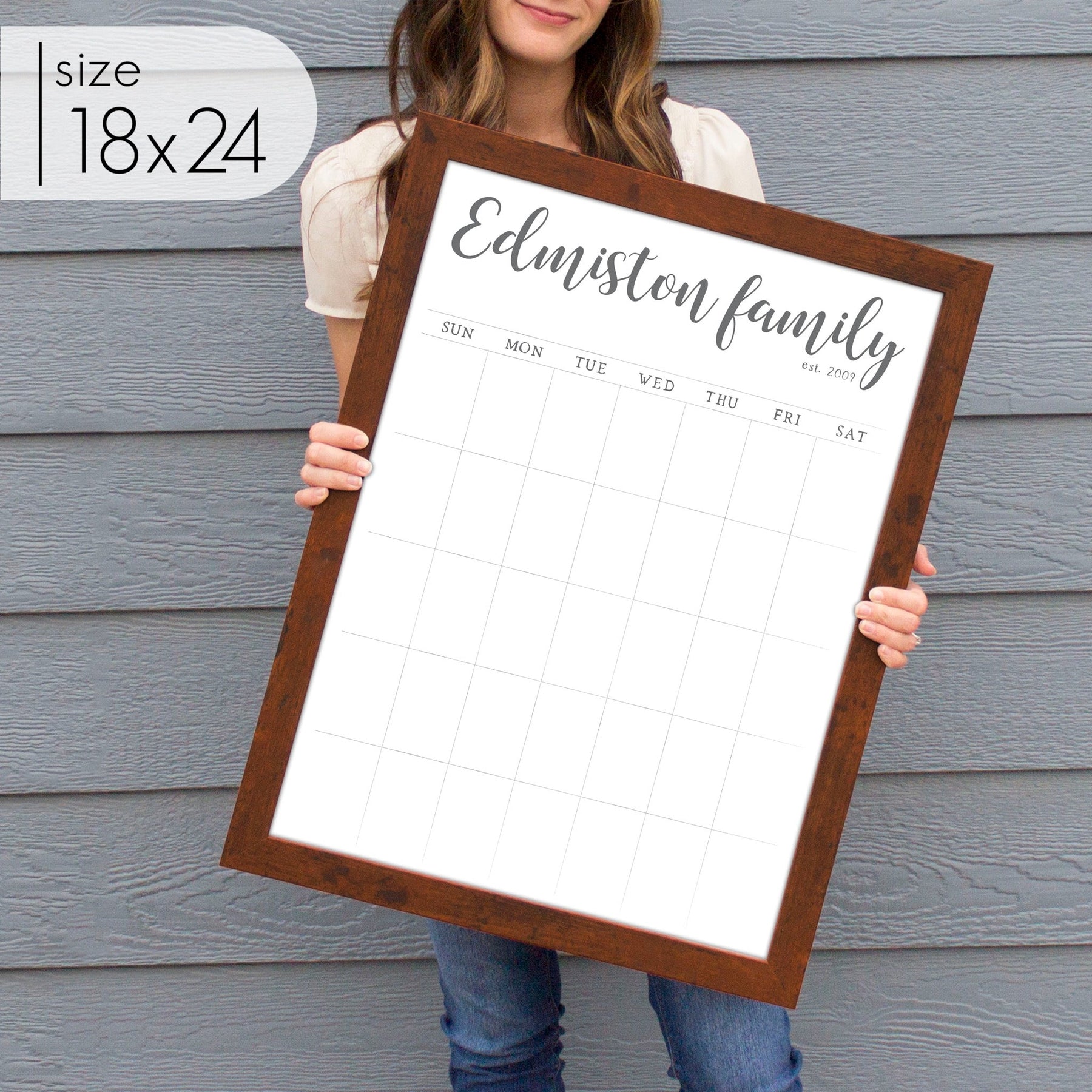 Our best-selling and original design, this custom dry-erase calendar is the perfect way to keep your family on track every month. Our top-rated whiteboard calendar is not only functional but also adds a stylish, personal touch to your home. Unlike typical dry erase boards, this design enhances your space without being an eyesore.