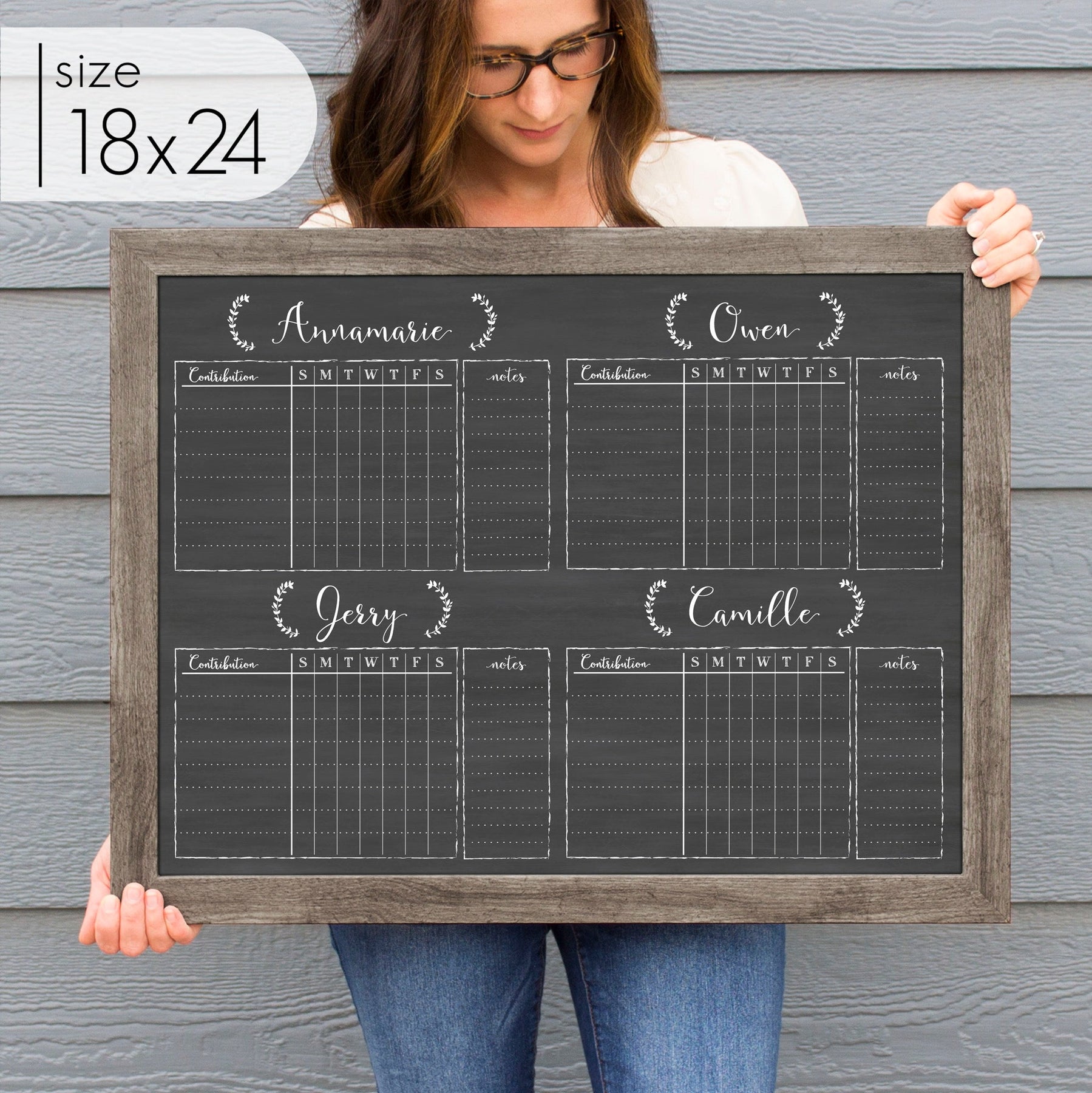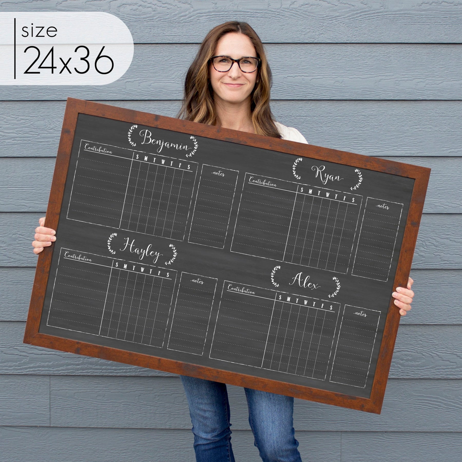 4 Person Framed Chore Chart Chalkboard | Horizontal Eagleton