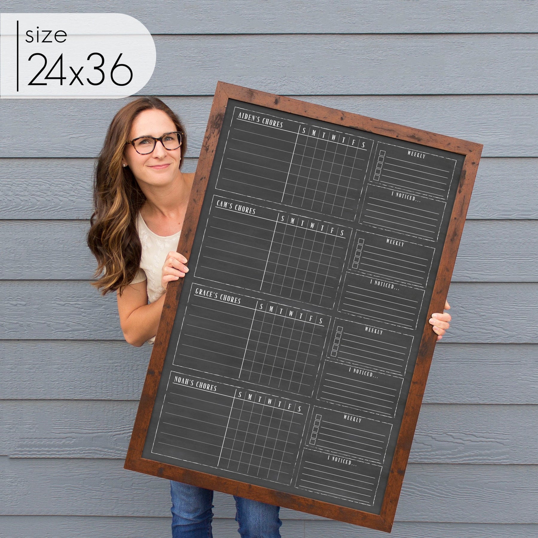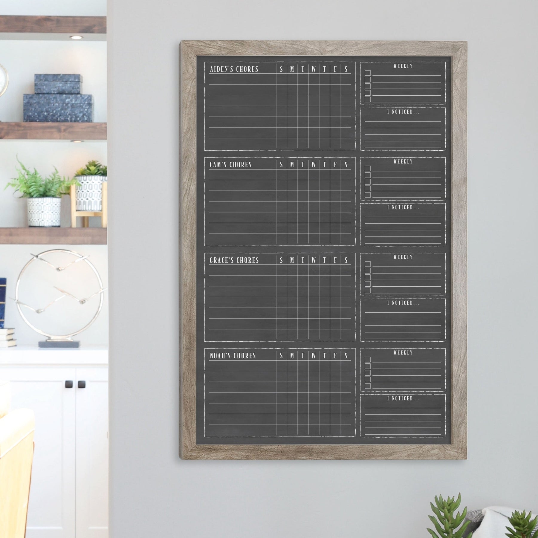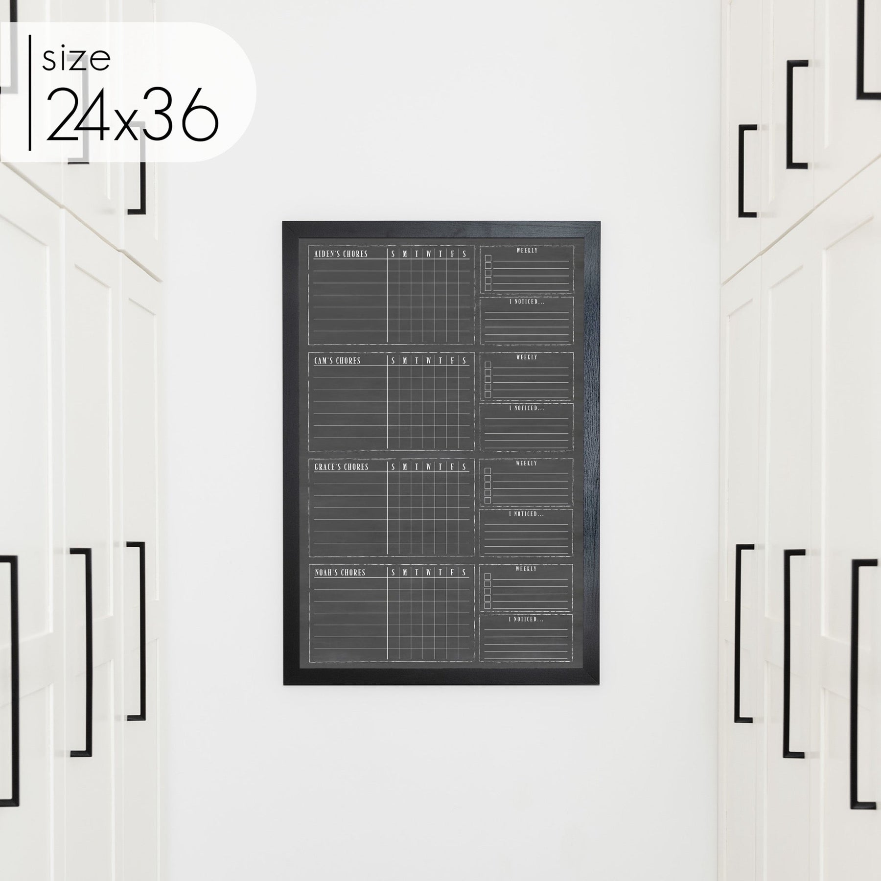 4 Person Framed Chalkboard Chore Chart | Vertical Swanson