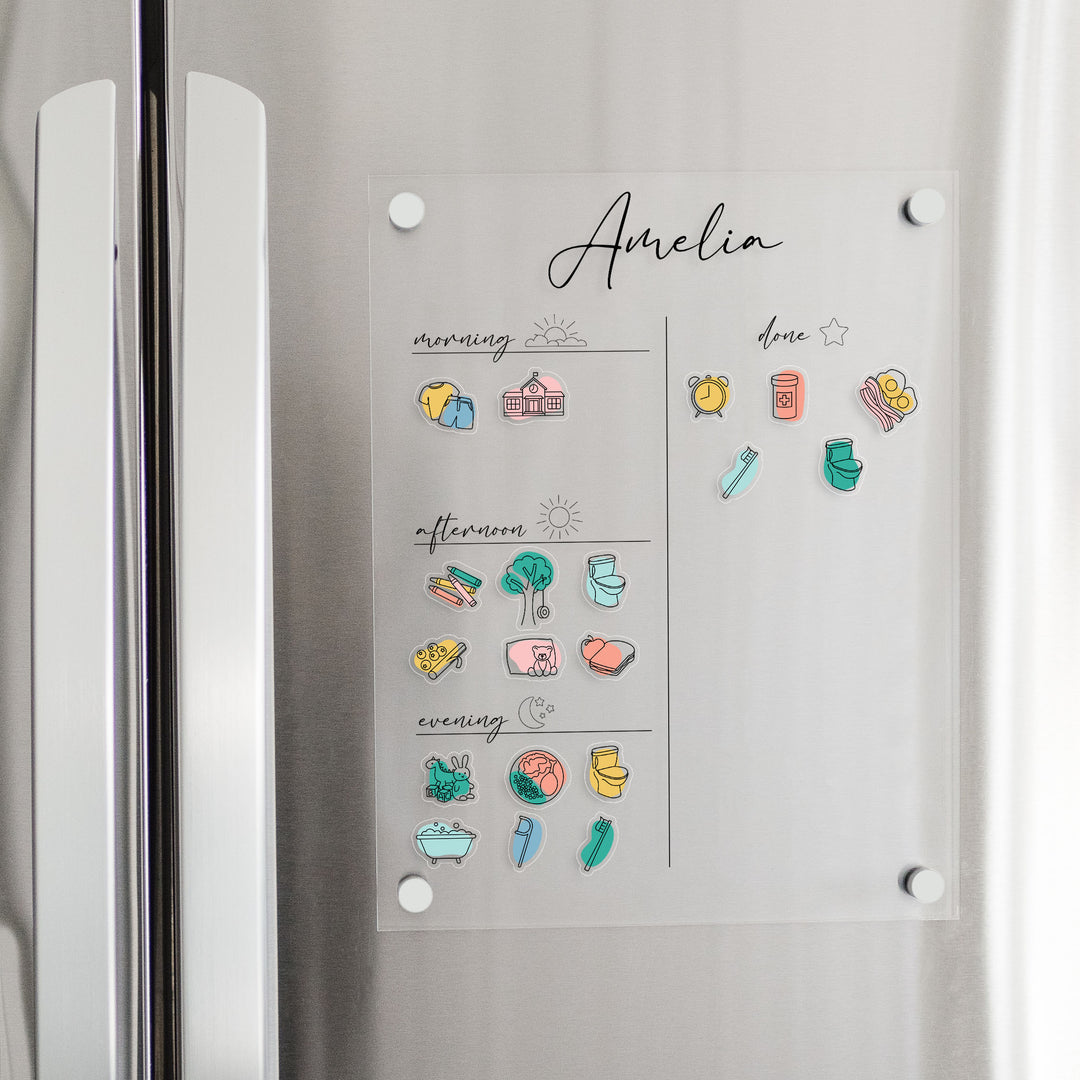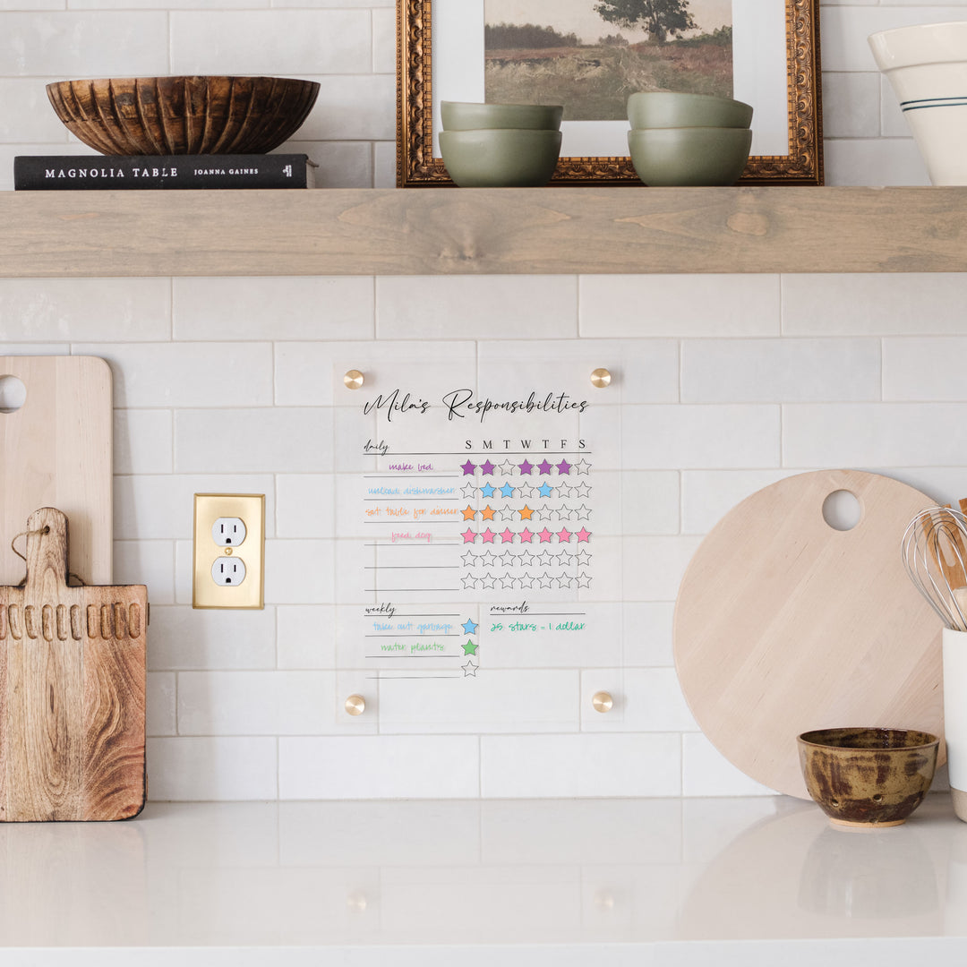 Our whiteboard chore chart boards are the perfect addition to your home! Easily hangable on any wall, these responsibility charts help children stay organized with household tasks at a glance. Customize the boards with names, section titles, checkboxes, and more! Every chore chart comes with stickers to easily mark off completed tasks.