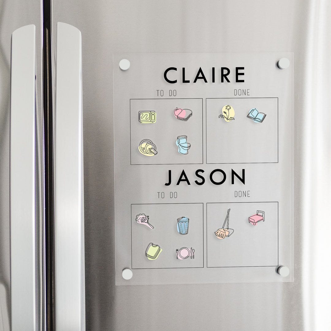 Our whiteboard chore chart boards are the perfect addition to your home! Easily hangable on any wall, these responsibility charts help children stay organized with household tasks at a glance. Customize the boards with names, section titles, checkboxes, and more! Every chore chart comes with stickers to easily mark off completed tasks.