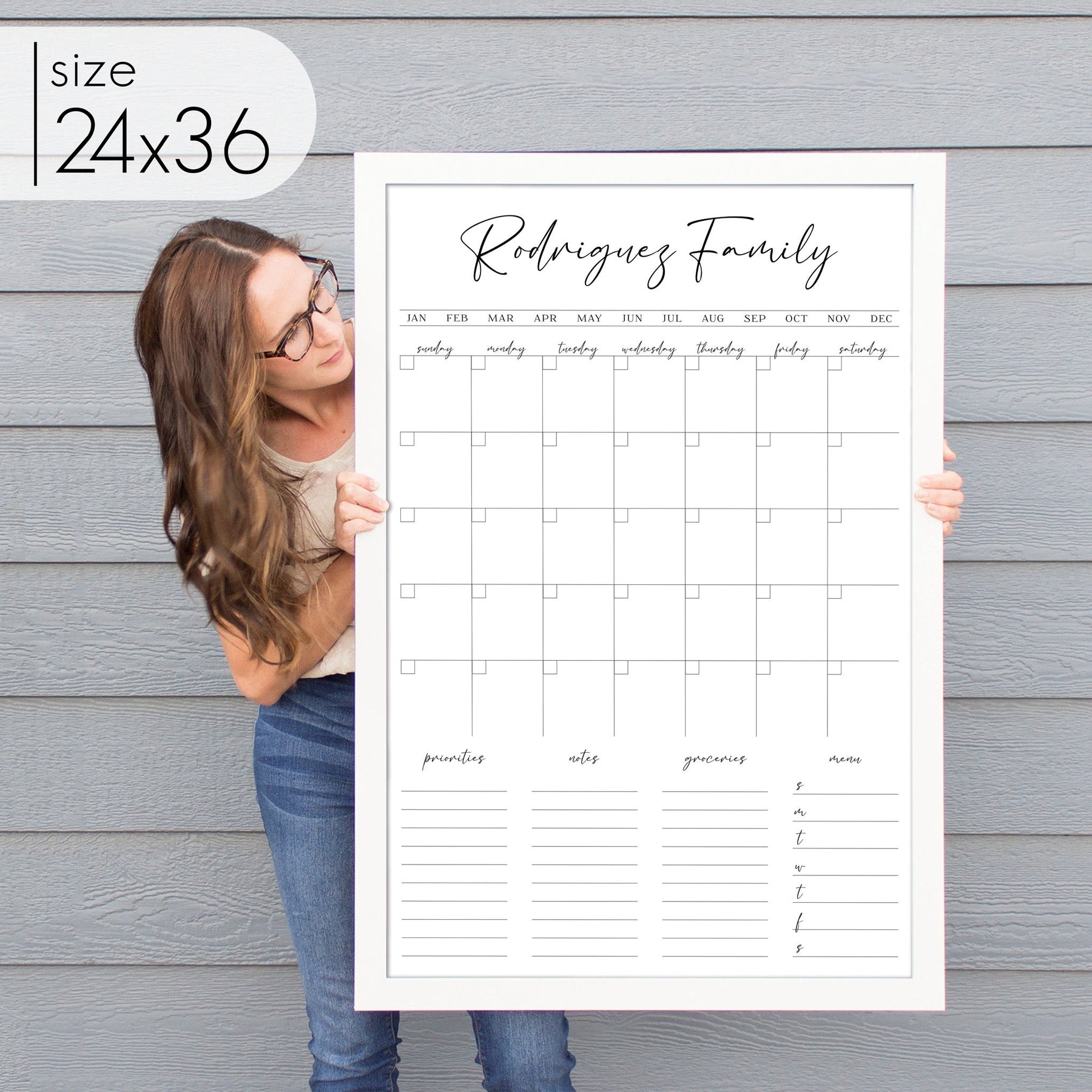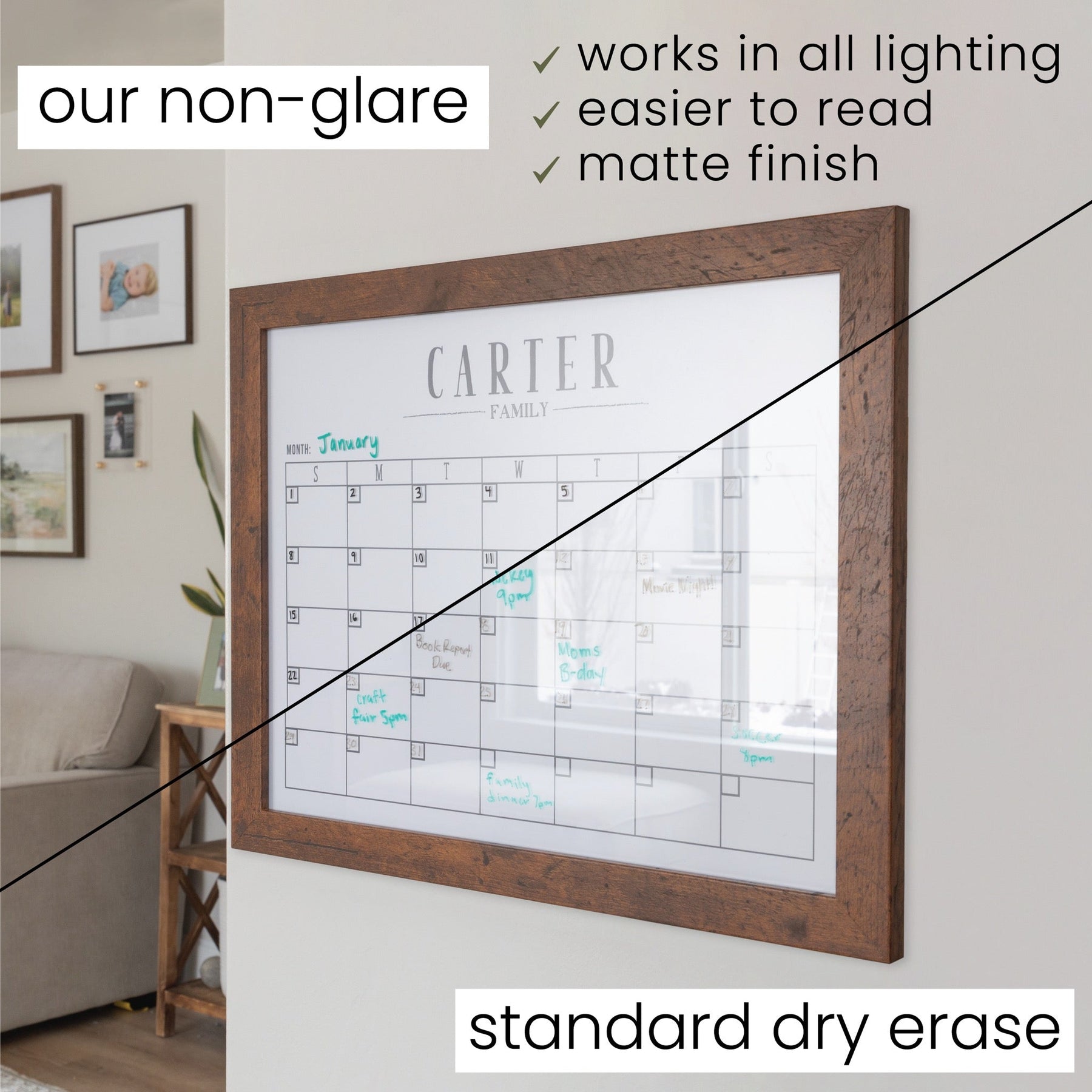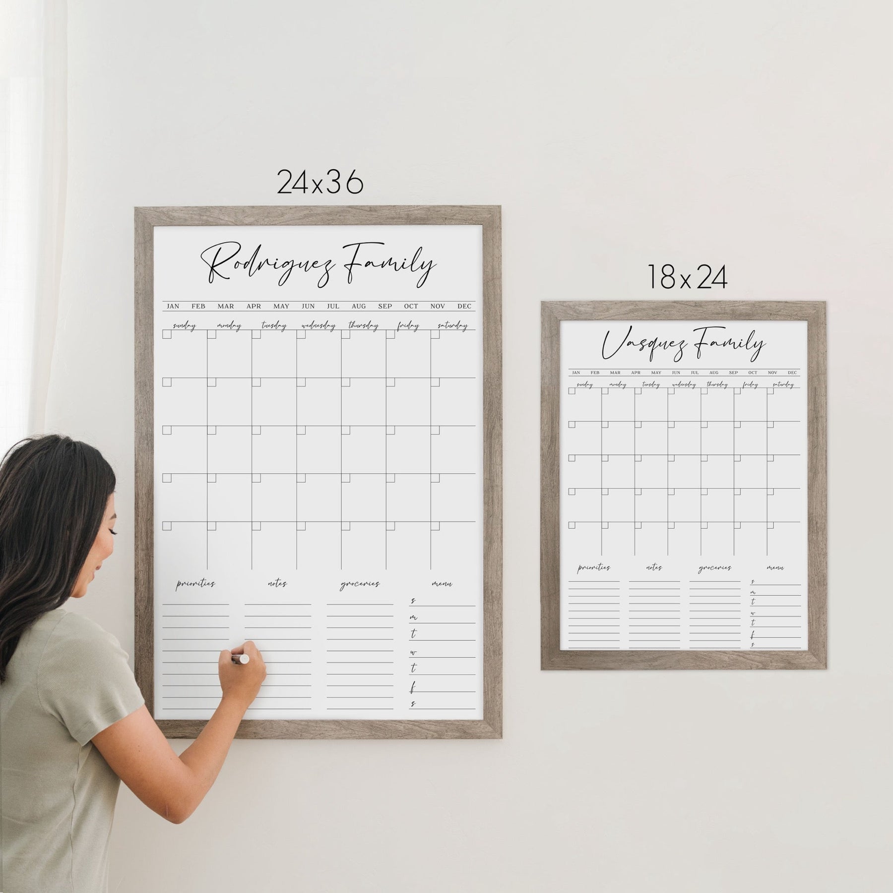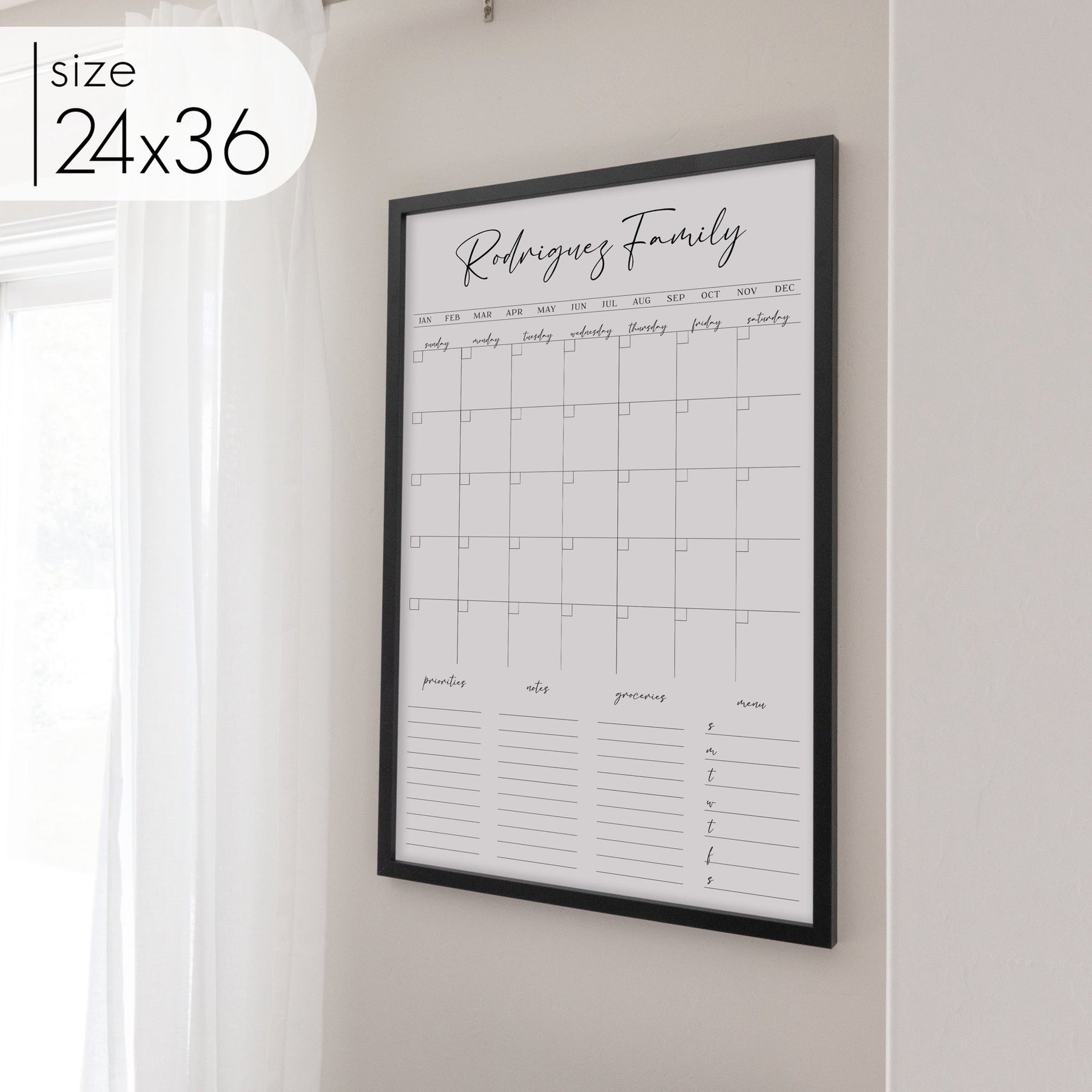 Designed to fit seamlessly into your home, this framed whiteboard calendar offers both style and functionality. Personalize it to fit your needs and transform any space into an organized, efficient hub for the whole family. Durable, easy to clean, and fully customizable, this family command center is the perfect way to bring order to your busy household.