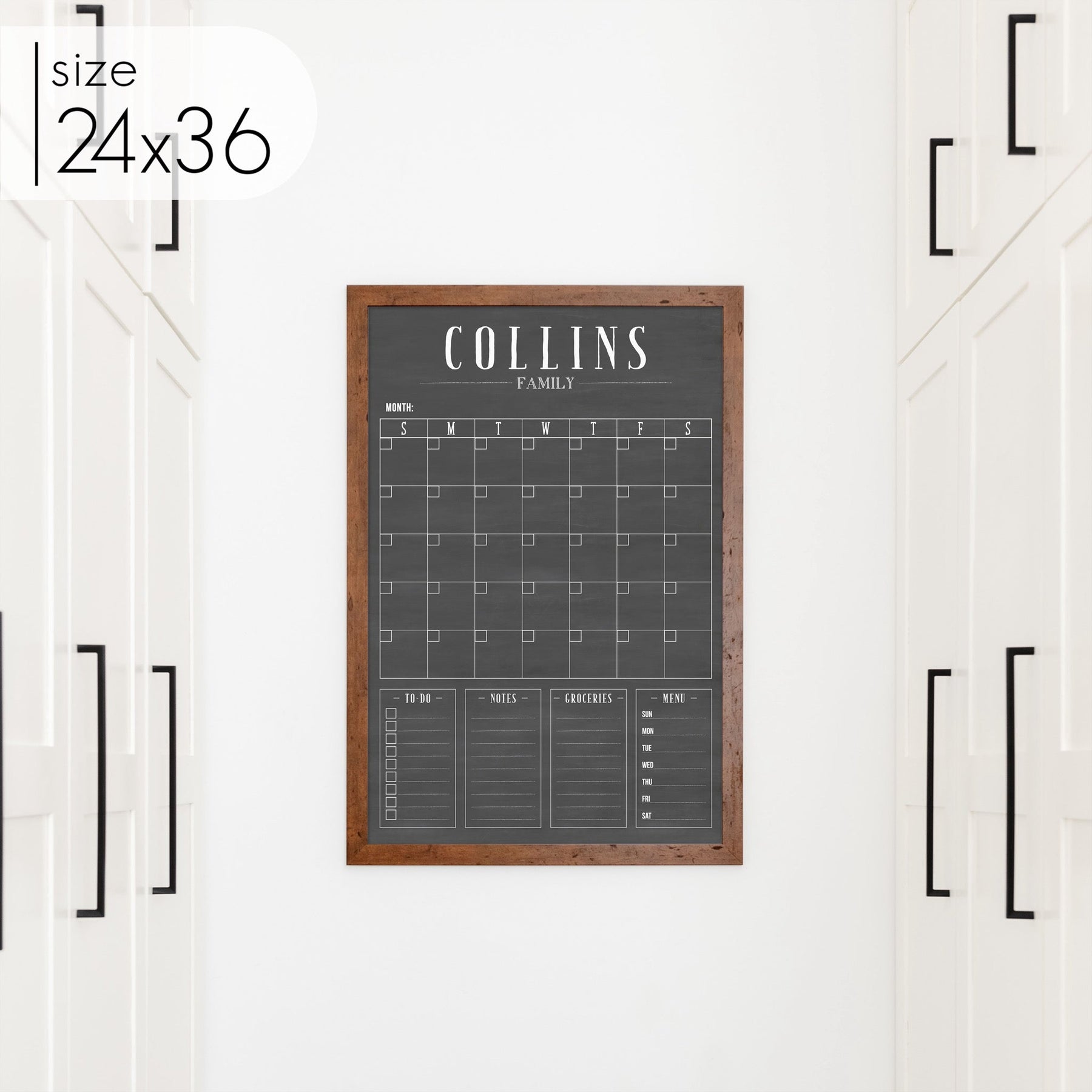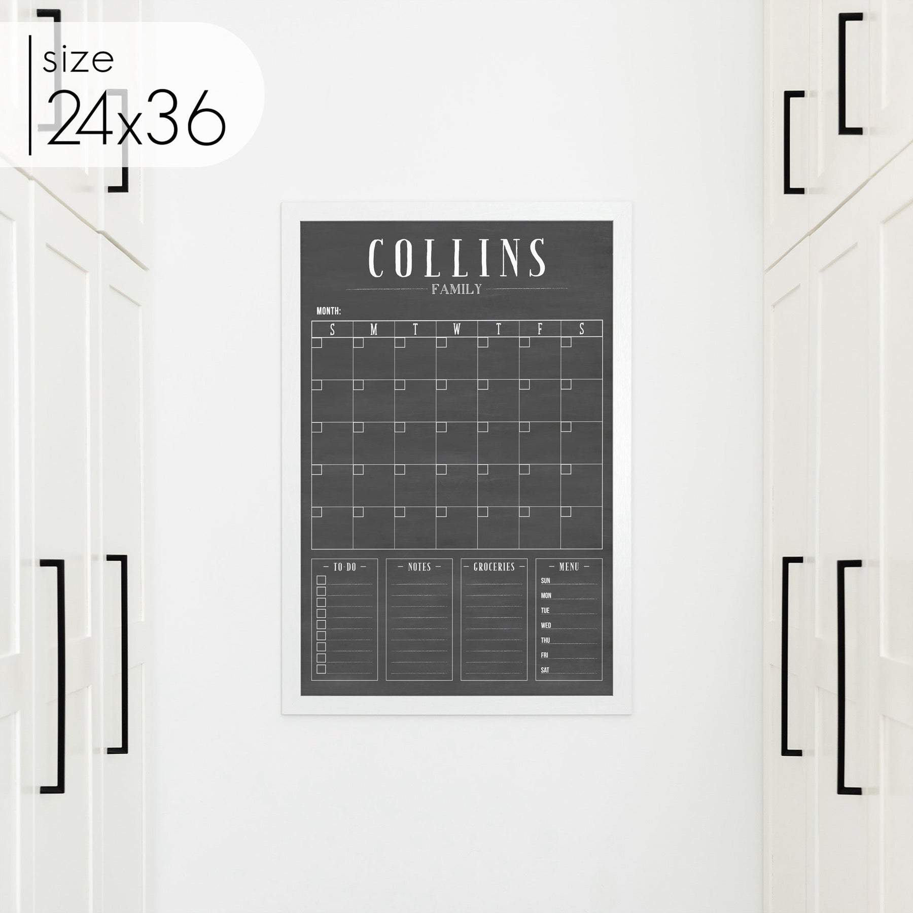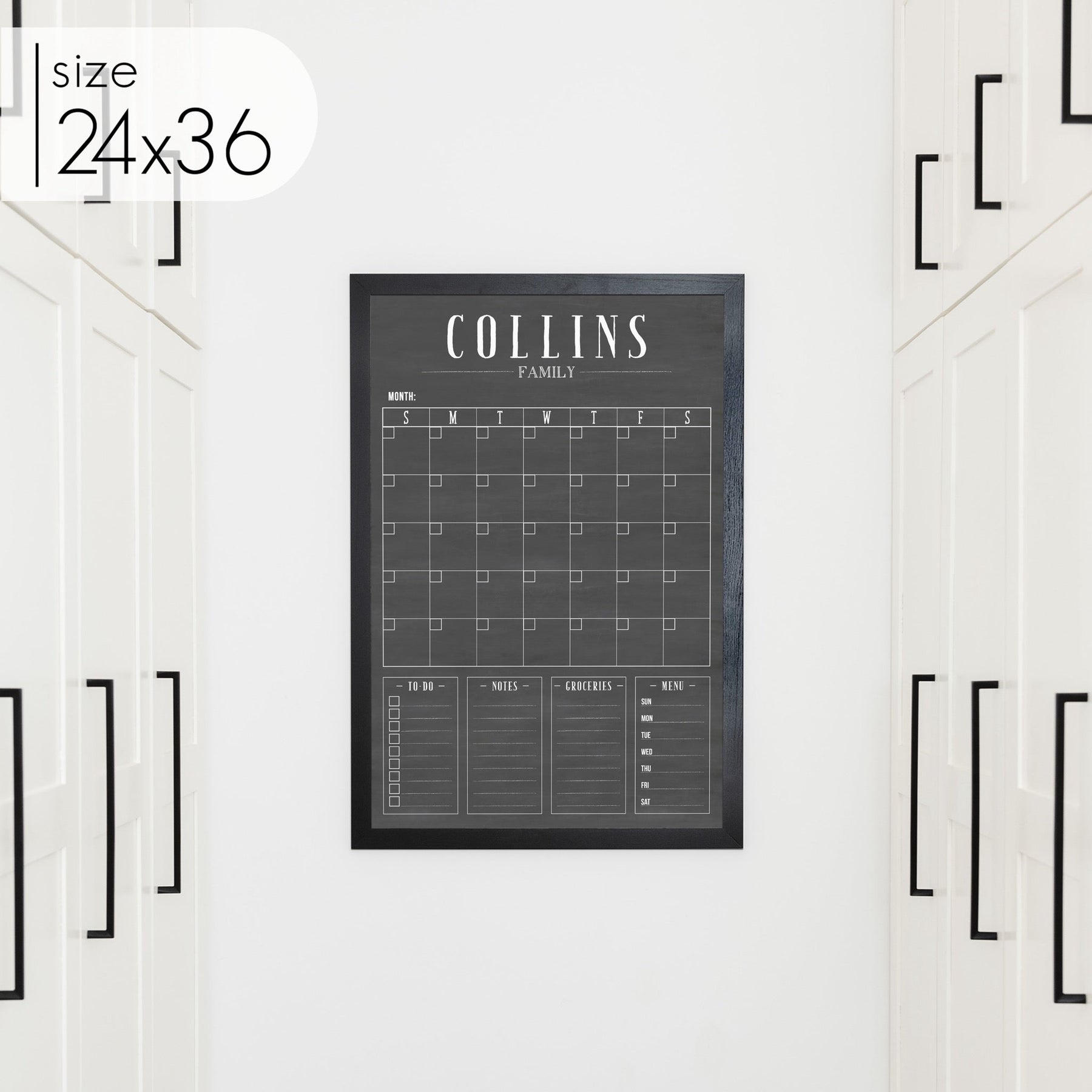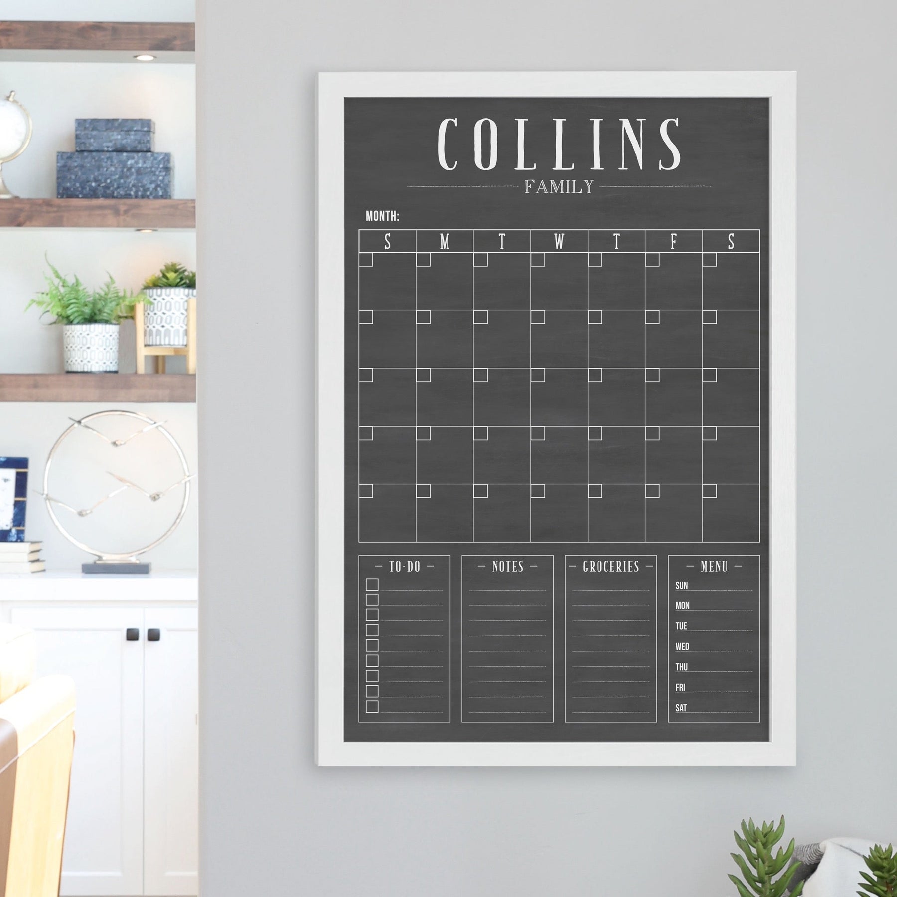 Monthly Framed Chalkboard Calendar + 4 sections | Vertical Swanson