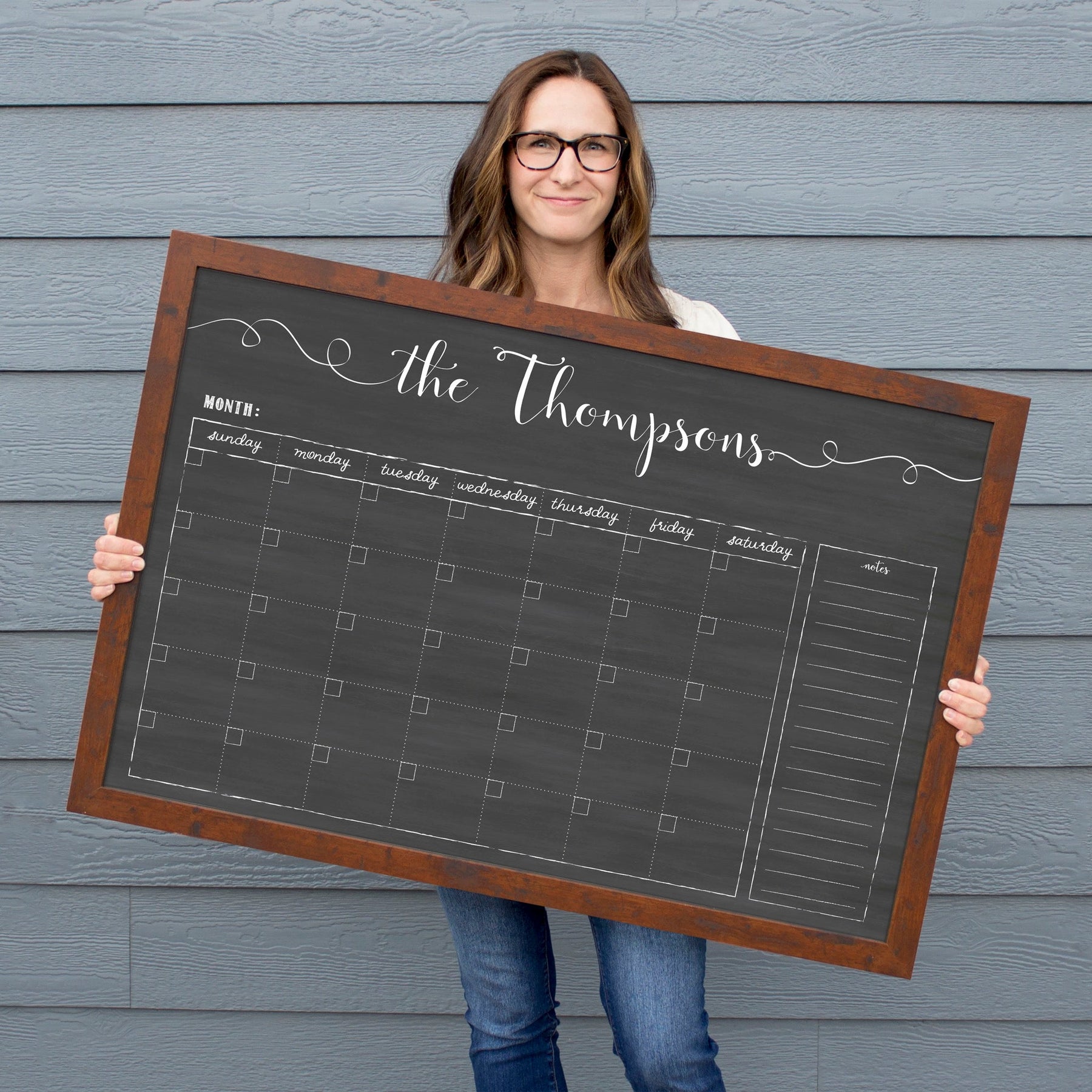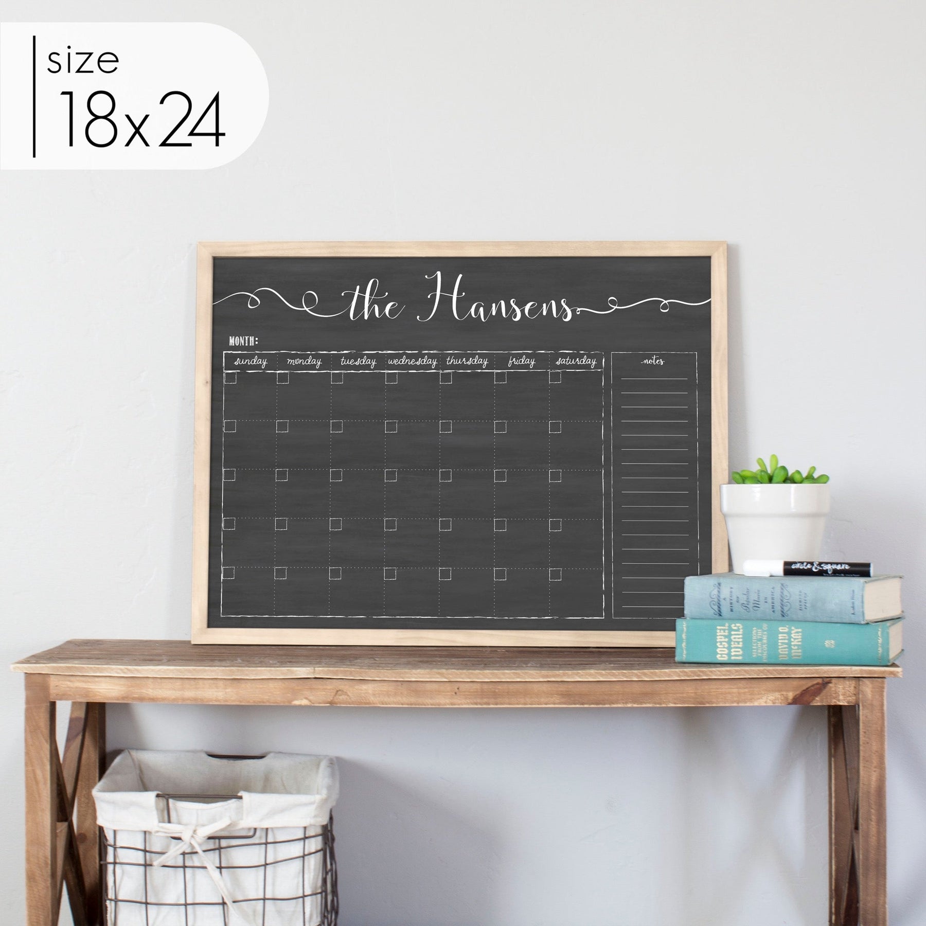 Stay on top of your busy schedule with our best-selling personalized chalkboard calendar! Designed with both style and function in mind, this chalkboard sign adds a sophisticated touch to your home while keeping your monthly plans in check. Unlike traditional dry-erase boards, our chalkboard background blends seamlessly into your decor, making it a statement piece rather than an eyesore.