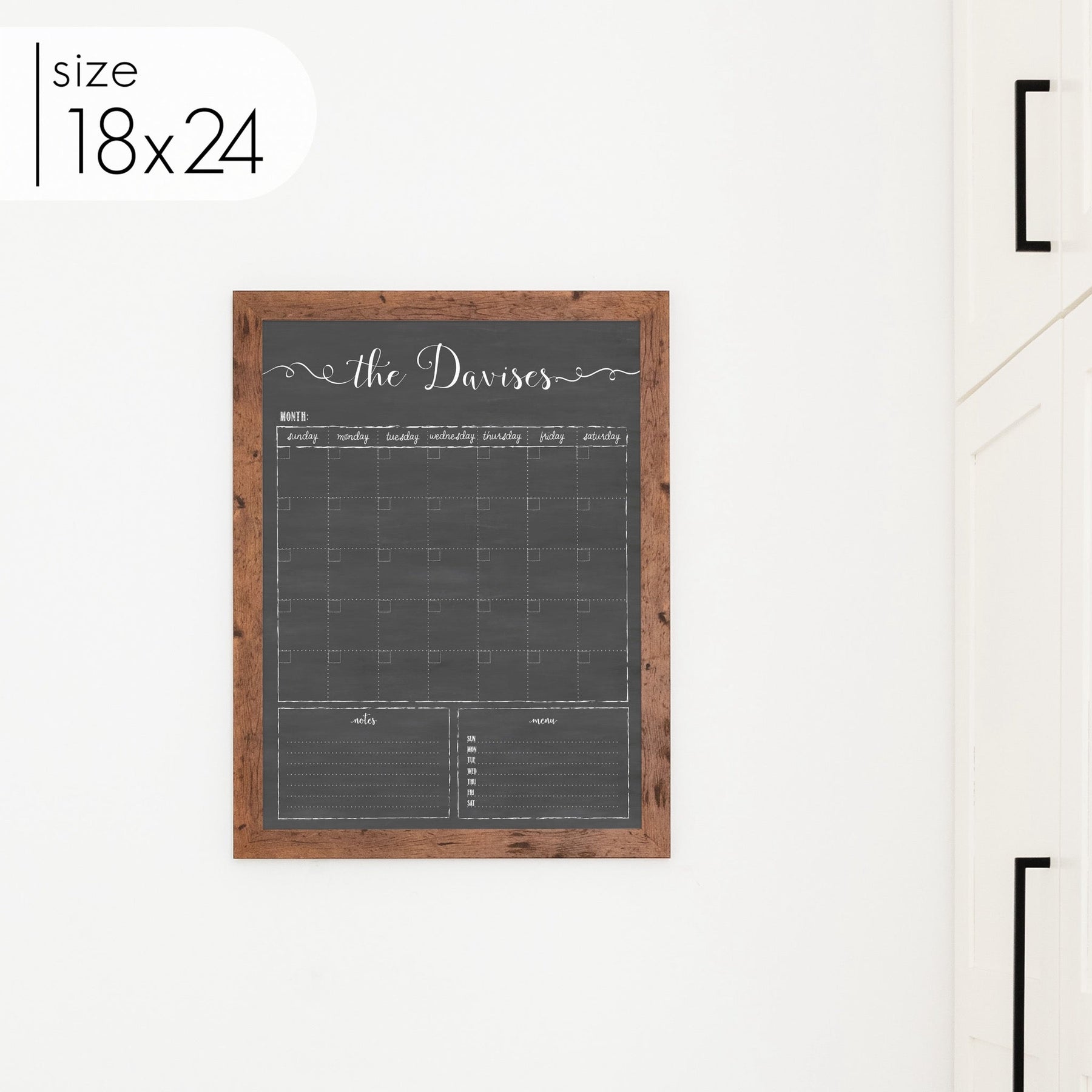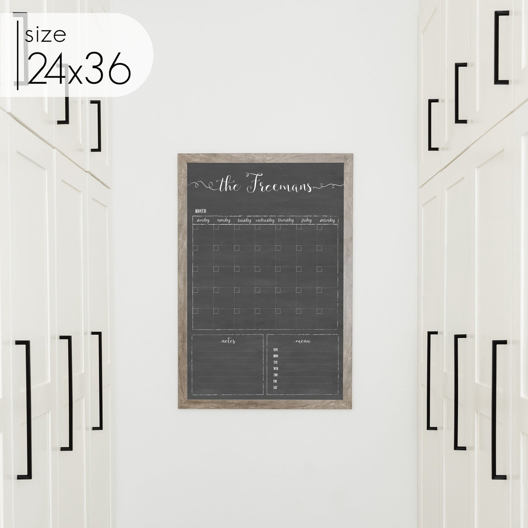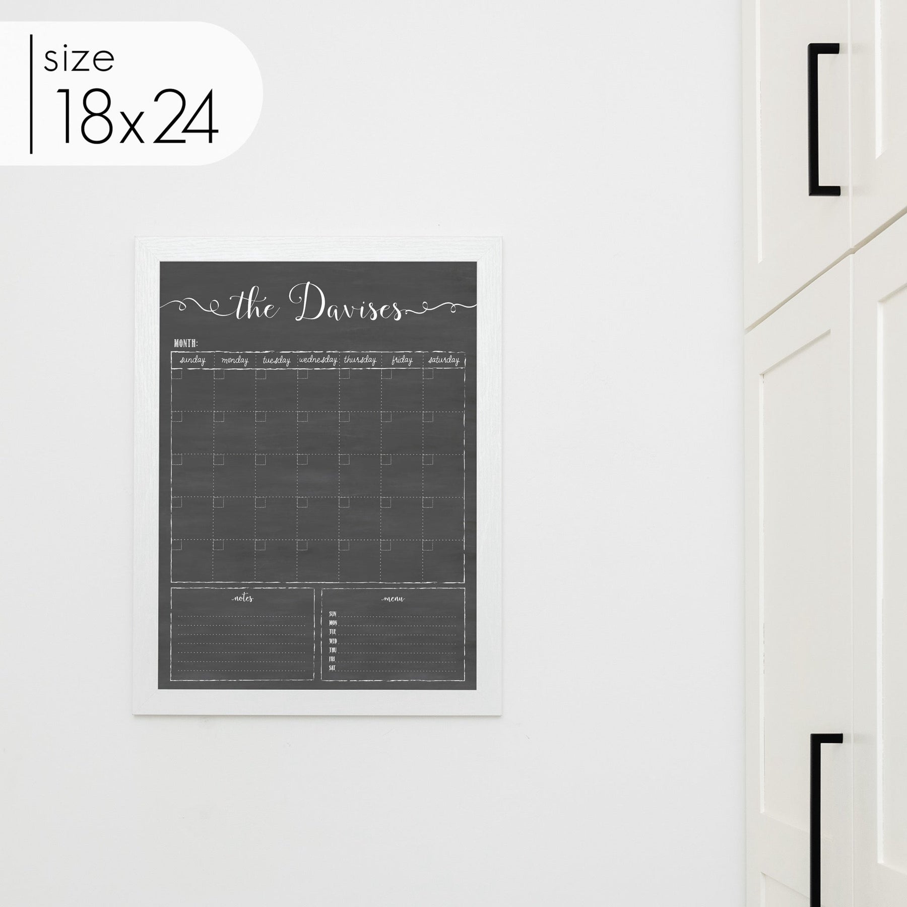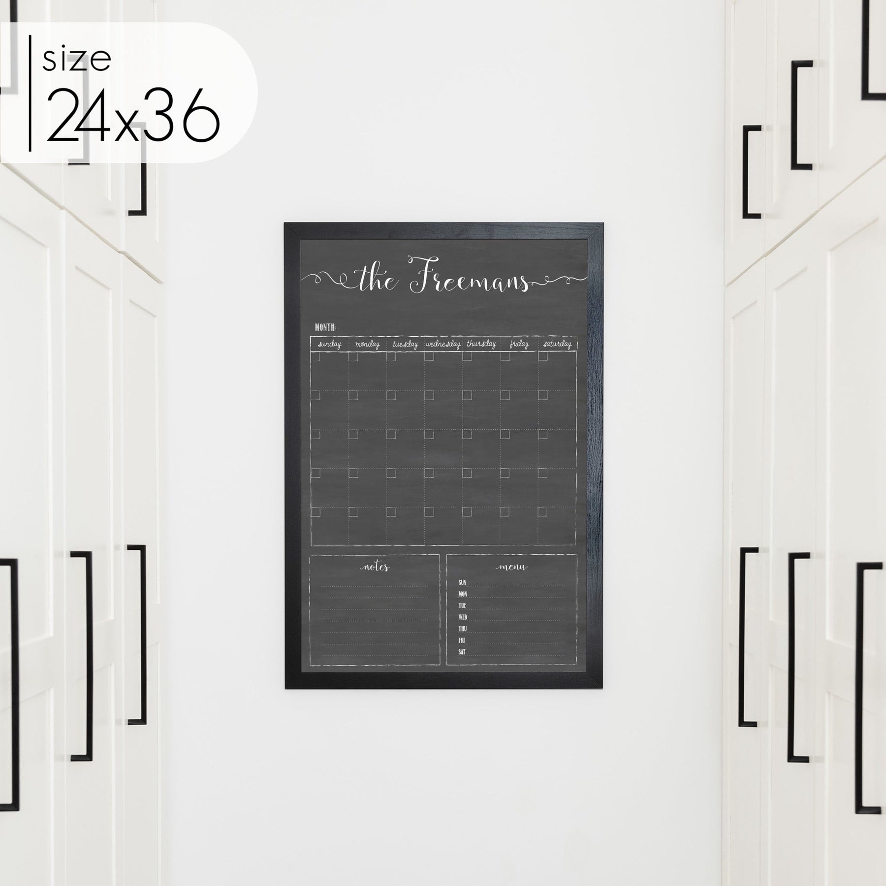 One of our top-selling formats, this personalized chalkboard with calendar is the perfect way to keep your family on track every month. The large chalkboard calendar is designed to blend seamlessly with your home decor, adding style to your walls without being an eyesore like most dry erase boards.