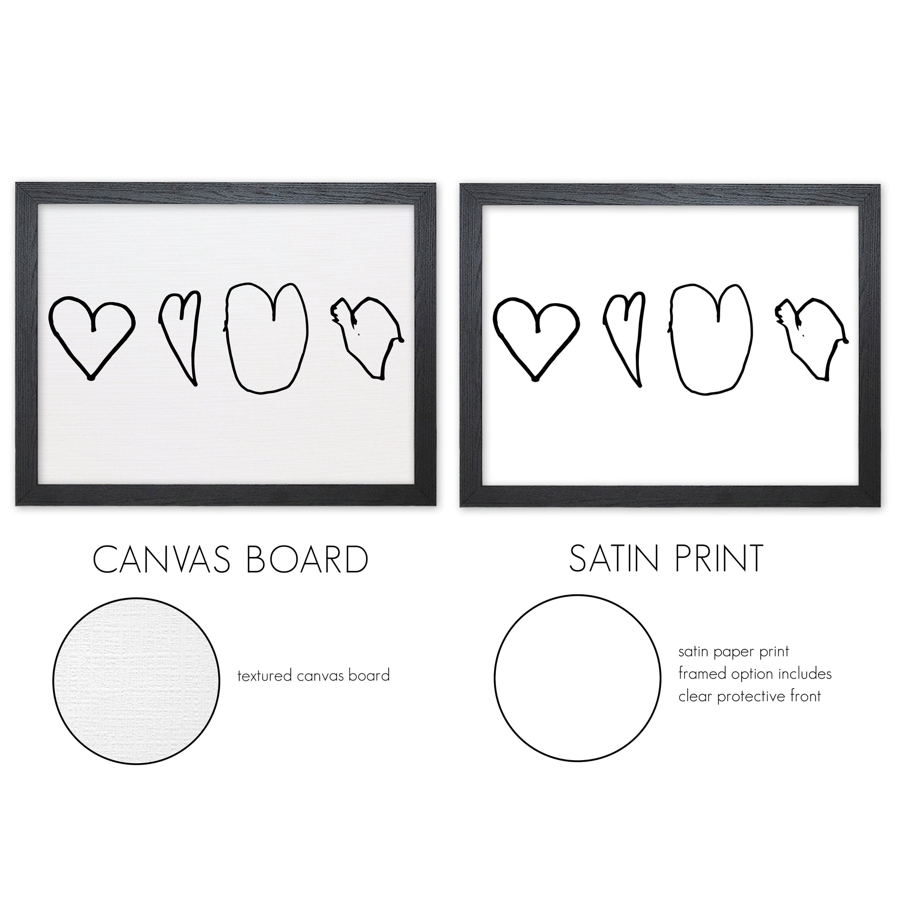 Turn the most meaningful hearts in your life into a timeless piece of art. Our Framed Custom Hand-Drawn Heart Art transforms your personal heart sketches—whether created by children, partners, or loved ones—into a beautifully framed keepsake designed to celebrate connection, love, and family. Each heart is carefully enhanced and arranged into a clean, modern layout that preserves the original charm and personality of the hand-drawn artwork.
