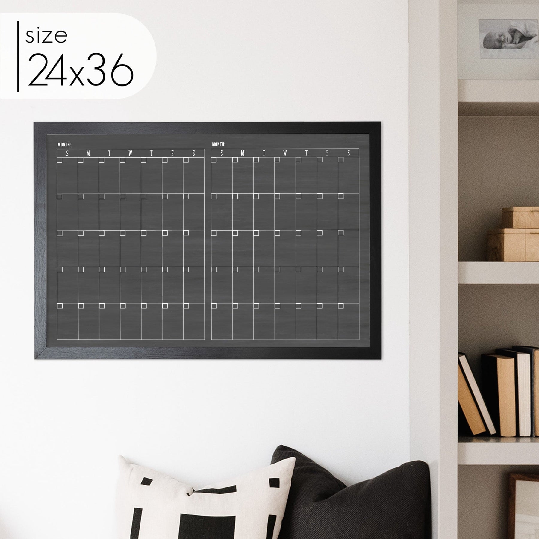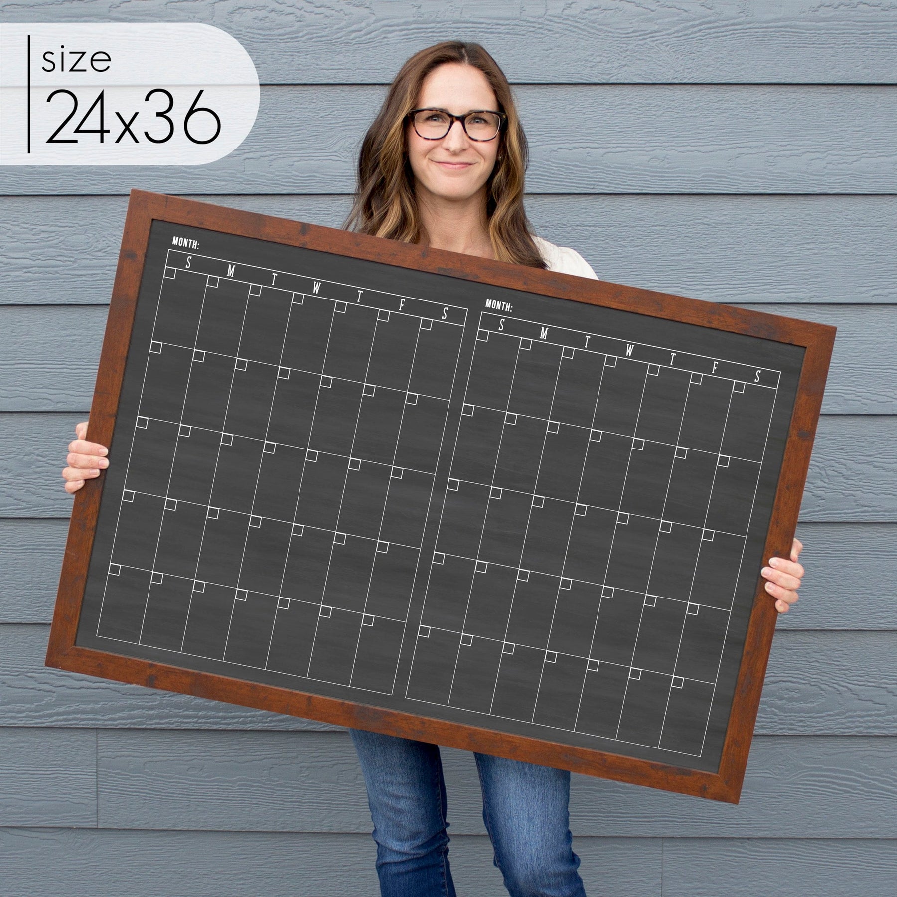 2 Month Framed Chalkboard Calendar | Horizontal Multi-style