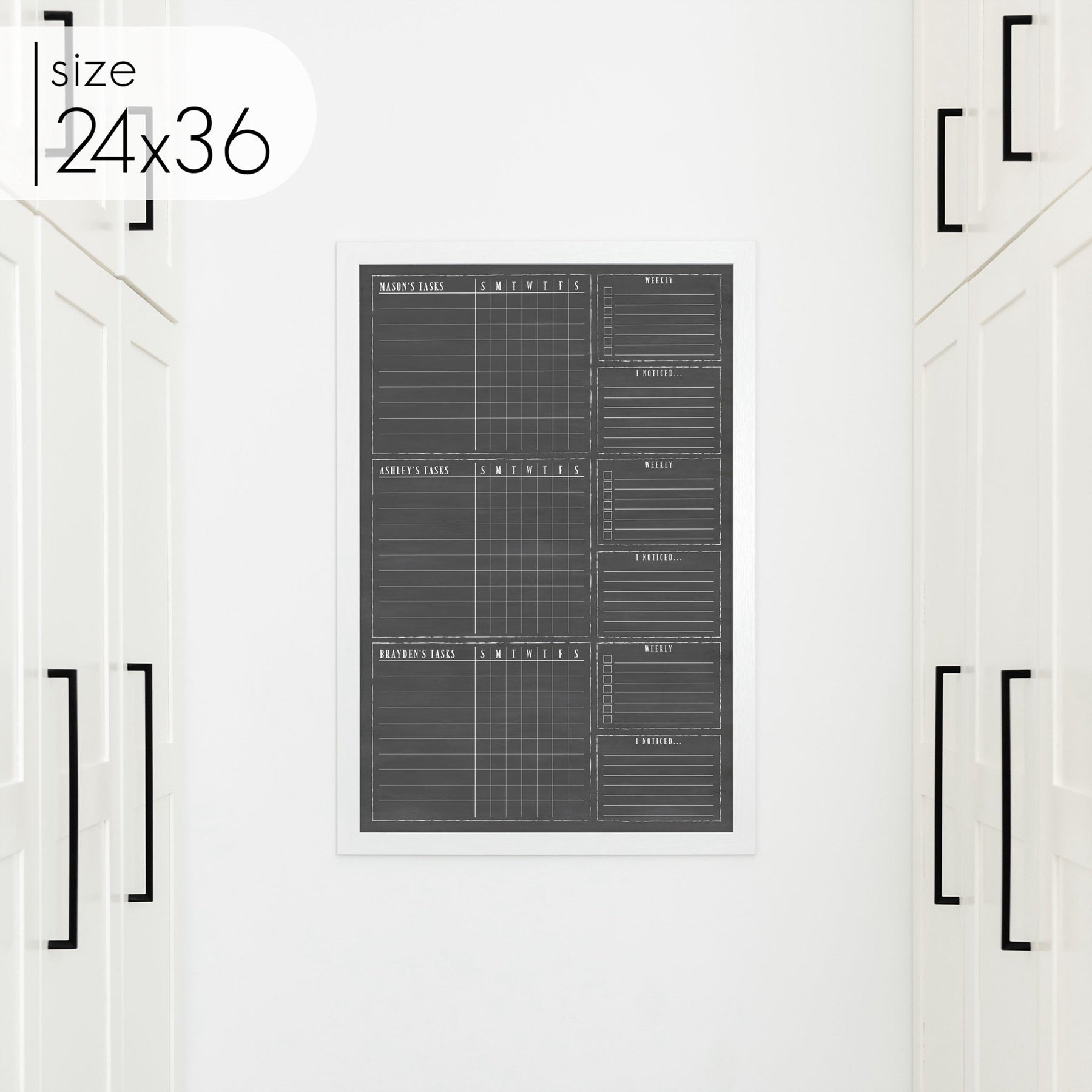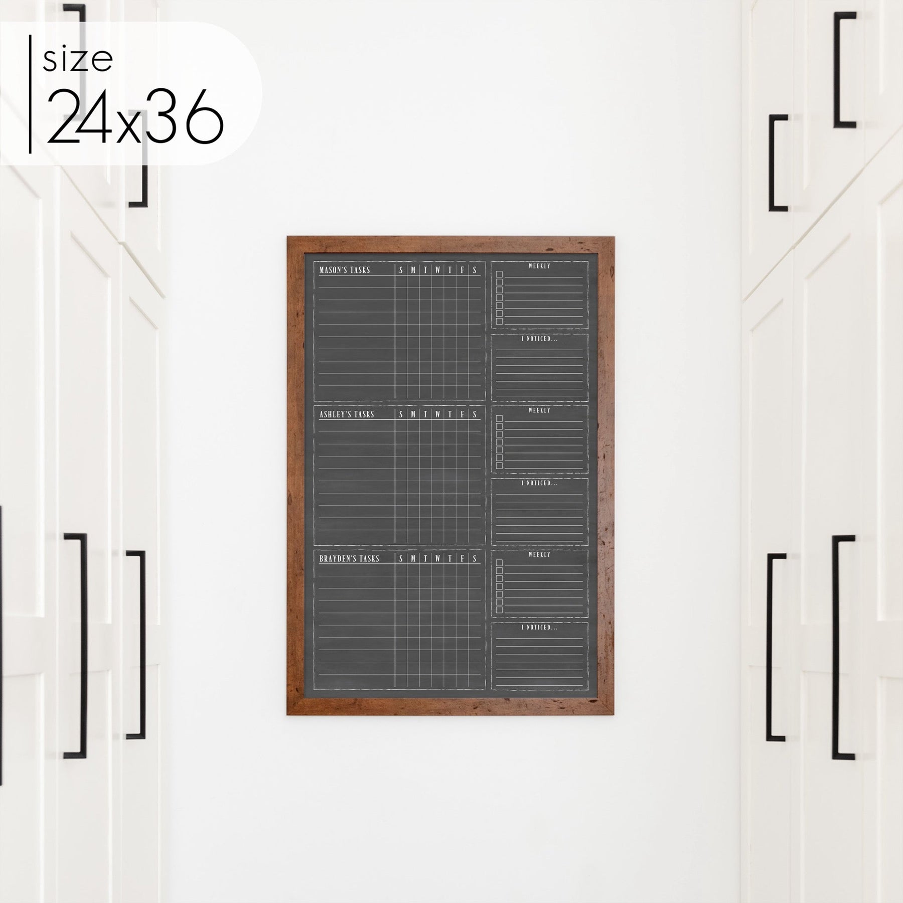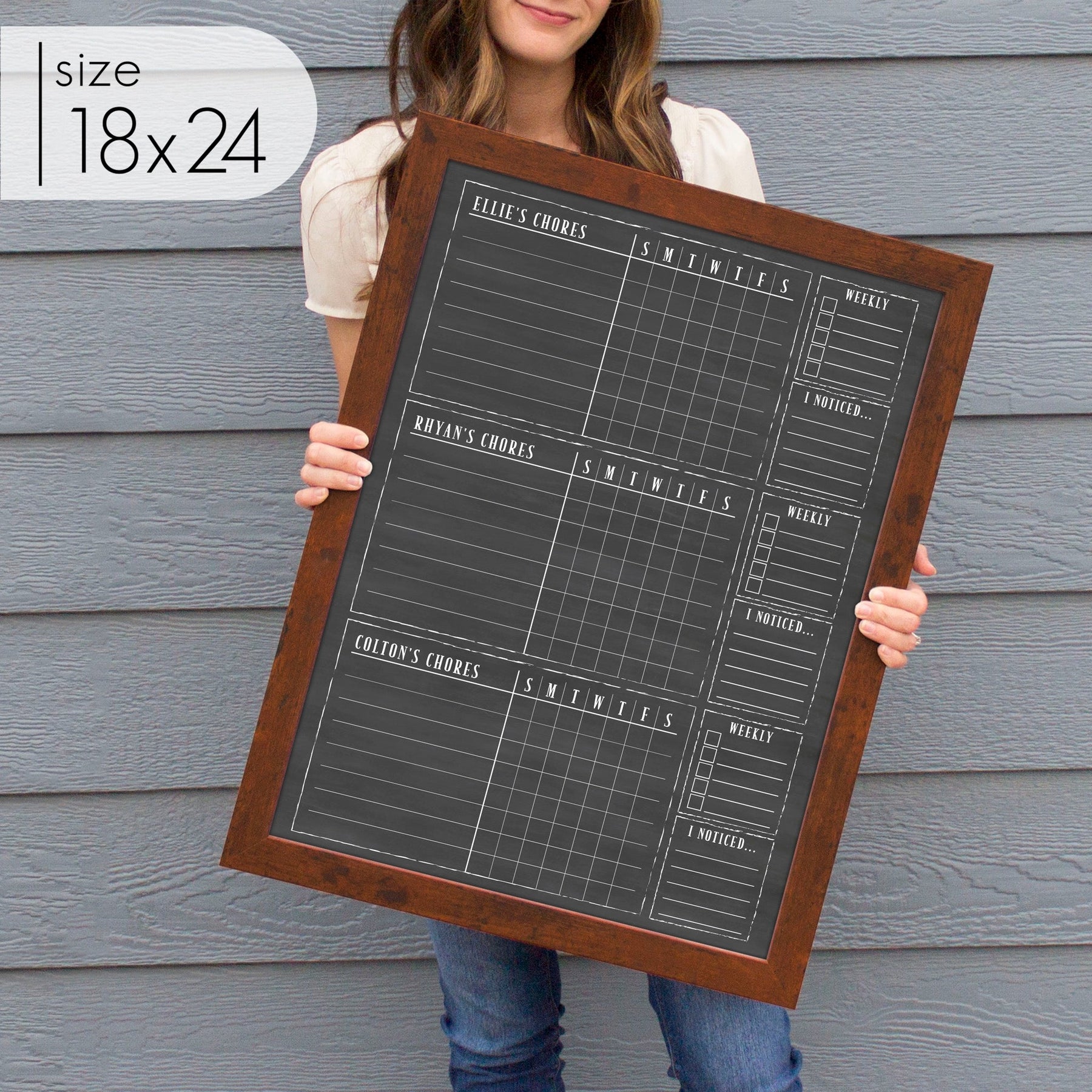 3 Person Framed Chalkboard Chore Chart | Vertical Swanson