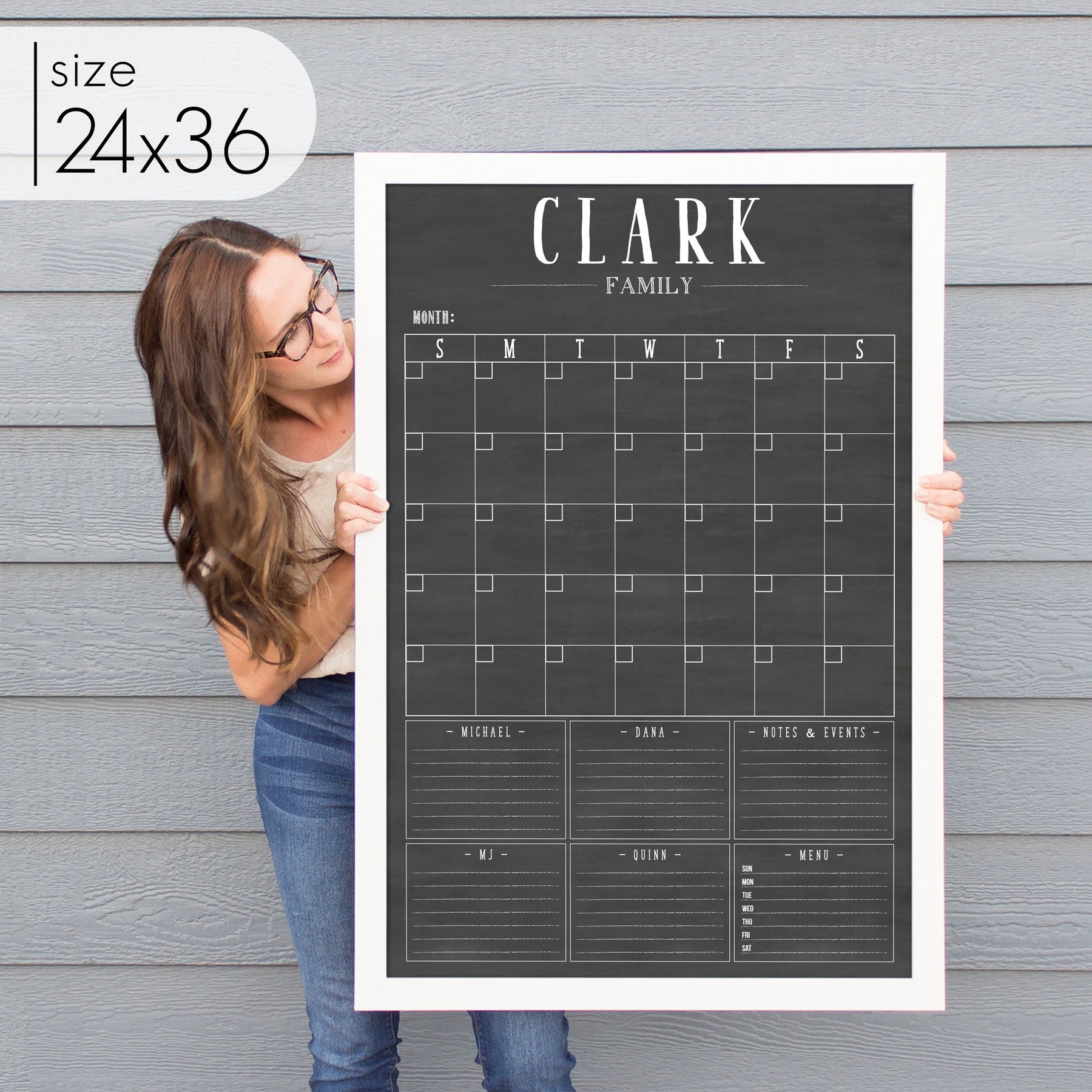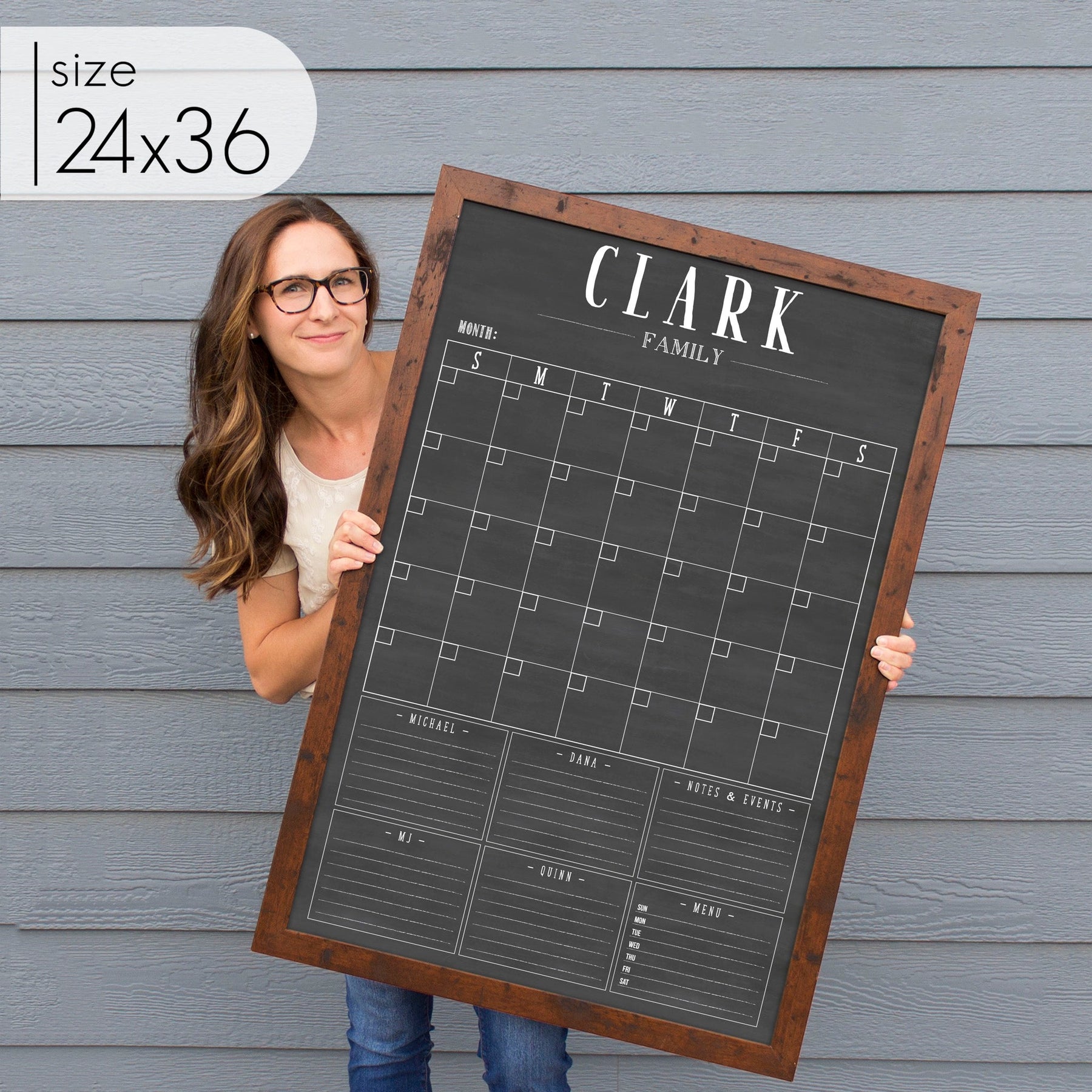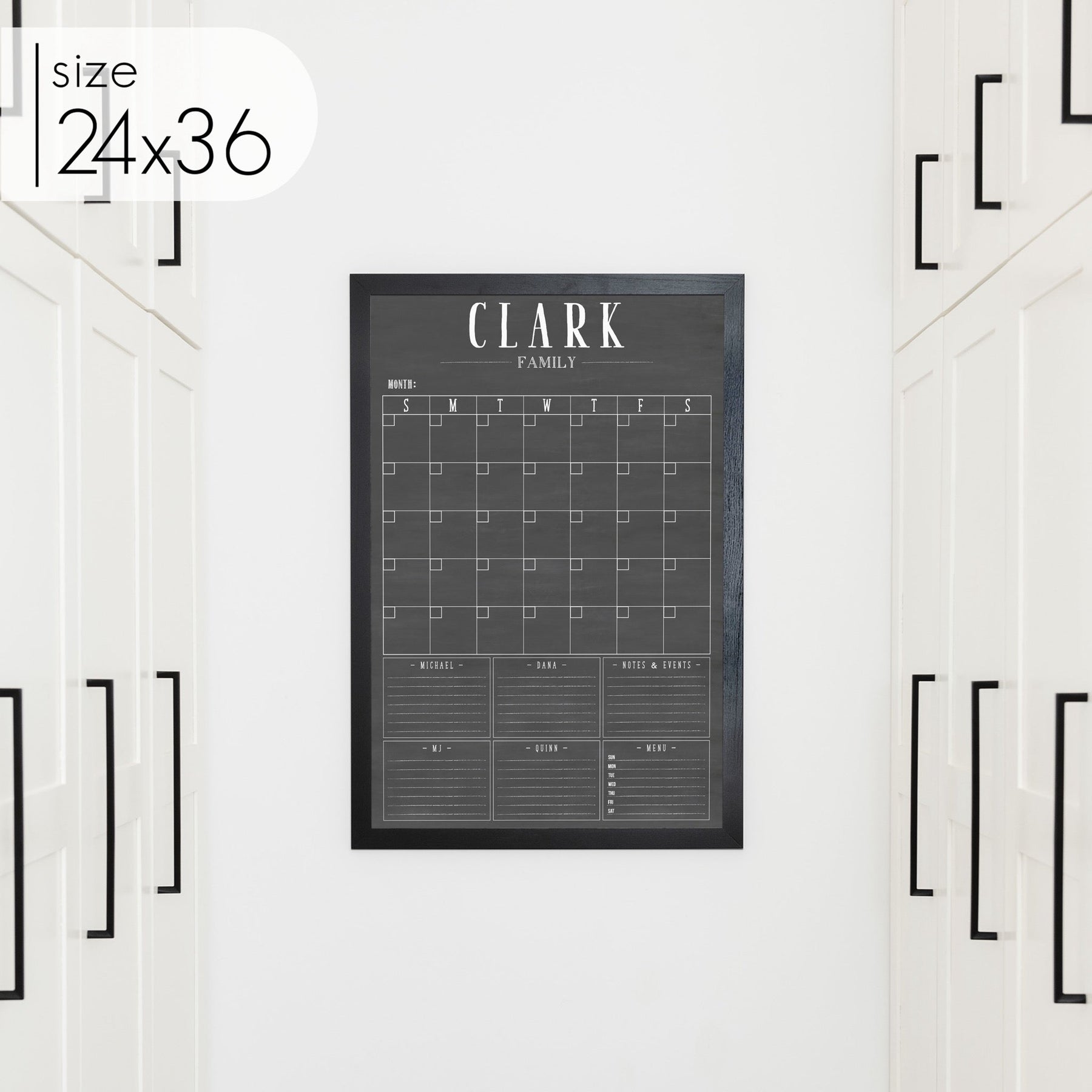 Monthly Framed Chalkboard Calendar + 6 sections | Vertical Swanson