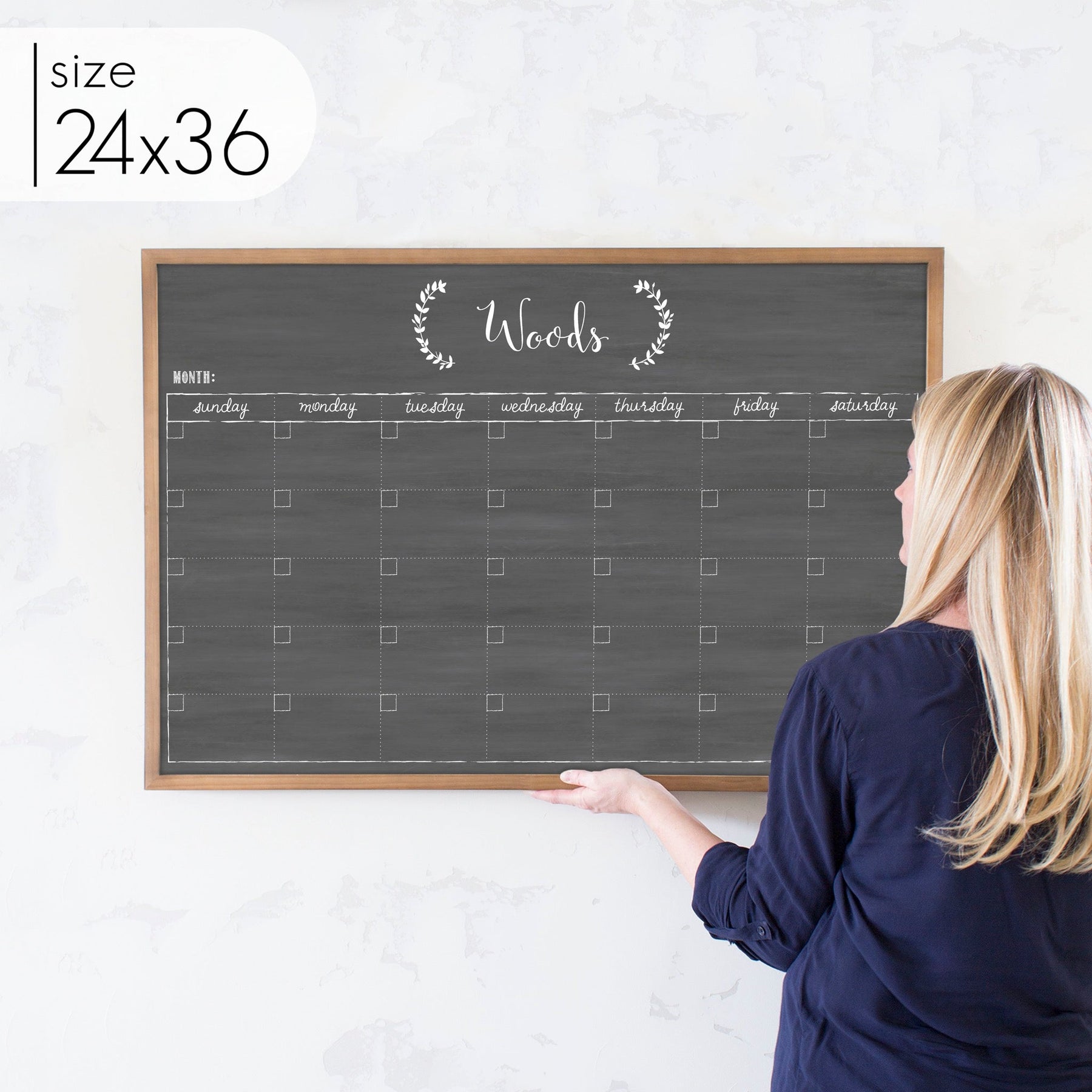 Stay on top of your busy schedule with our best-selling personalized chalkboard calendar! Designed with both style and function in mind, this chalkboard sign adds a sophisticated touch to your home while keeping your monthly plans in check. Unlike traditional dry-erase boards, our chalkboard background blends seamlessly into your decor, making it a statement piece rather than an eyesore.