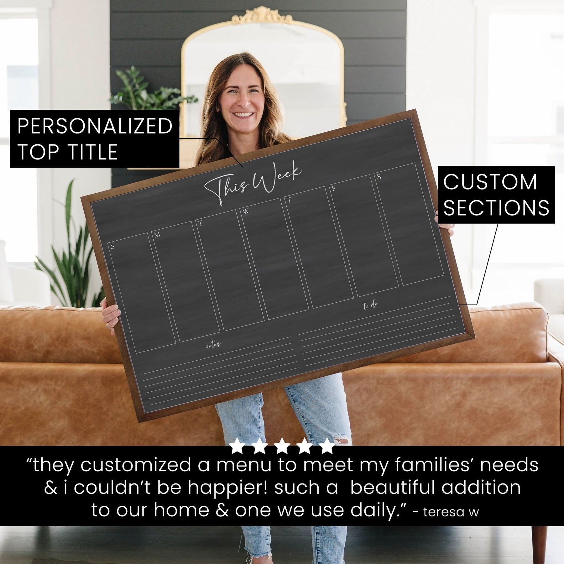 Slim Weekly Framed Chalkboard + 2 sections | Horizontal Pennington