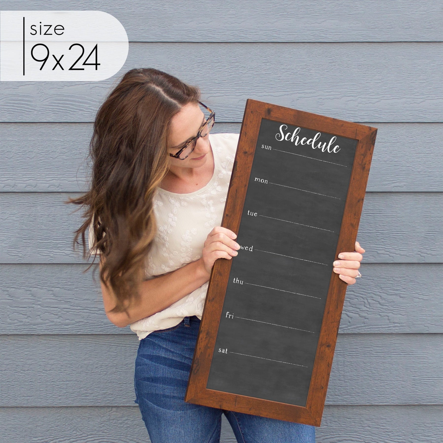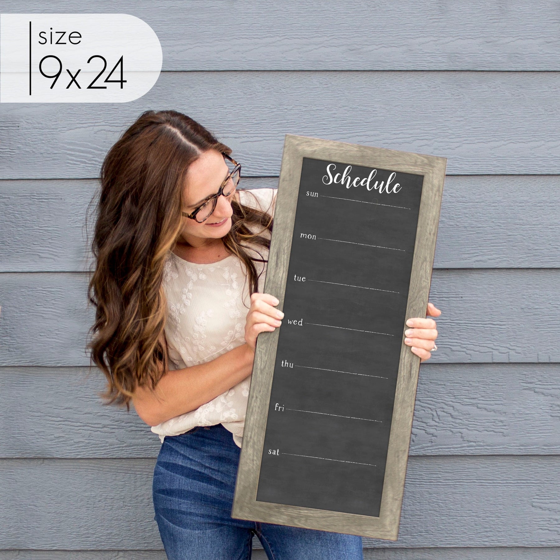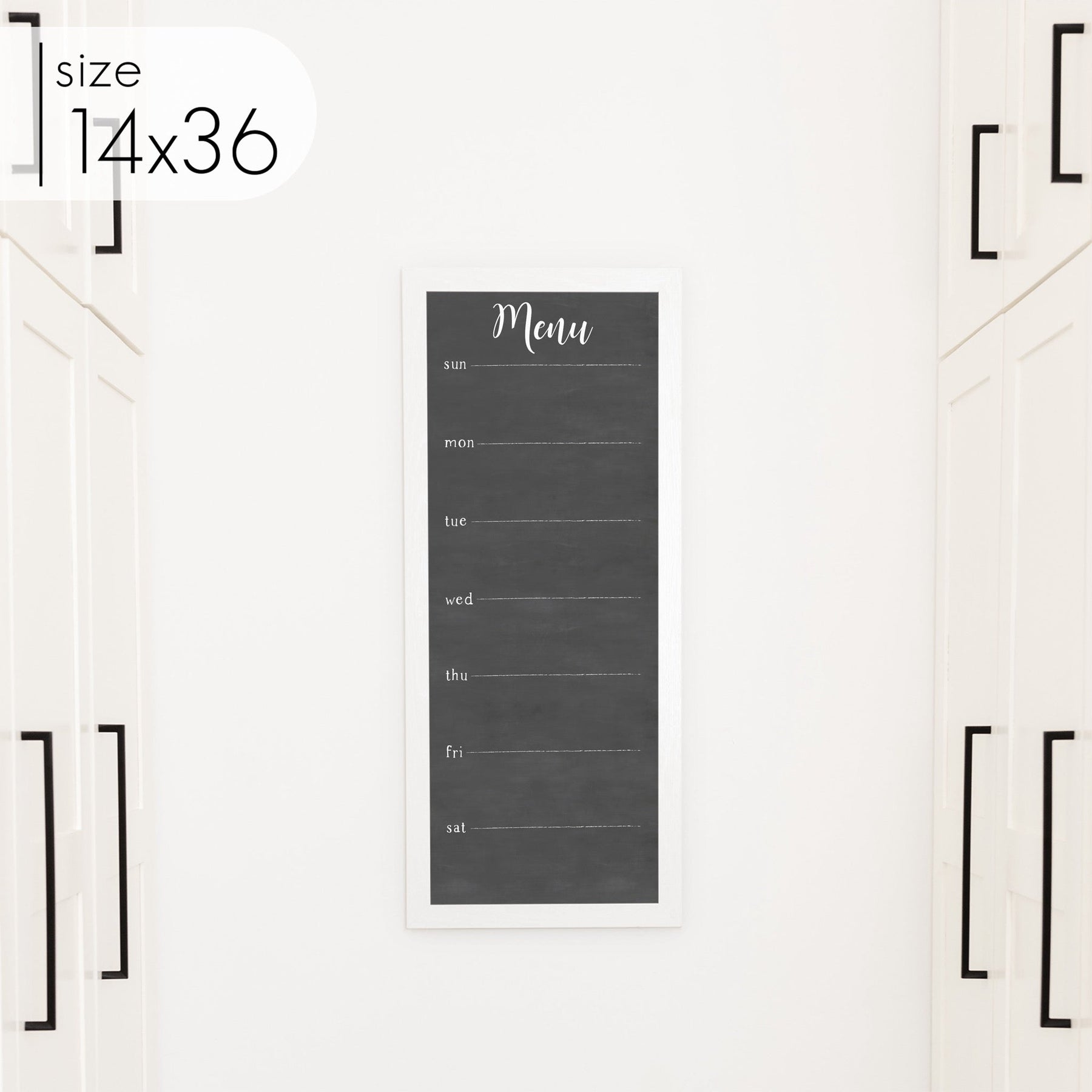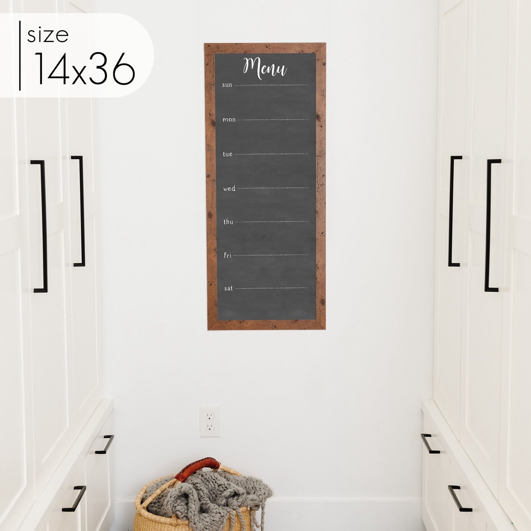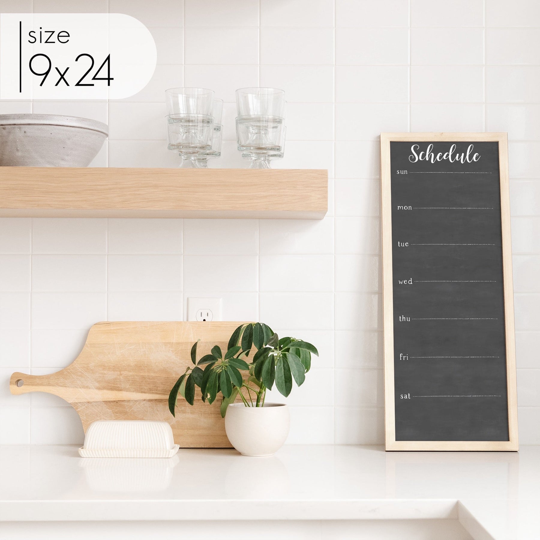Stay organized and stylish with a slim framed vertical chalkboard calendar—a practical and space-saving way to see your week at a glance. This chalkboard calendar for walls helps you track appointments, tasks, and goals without taking up too much space, offering a functional and classic way to manage your schedule.