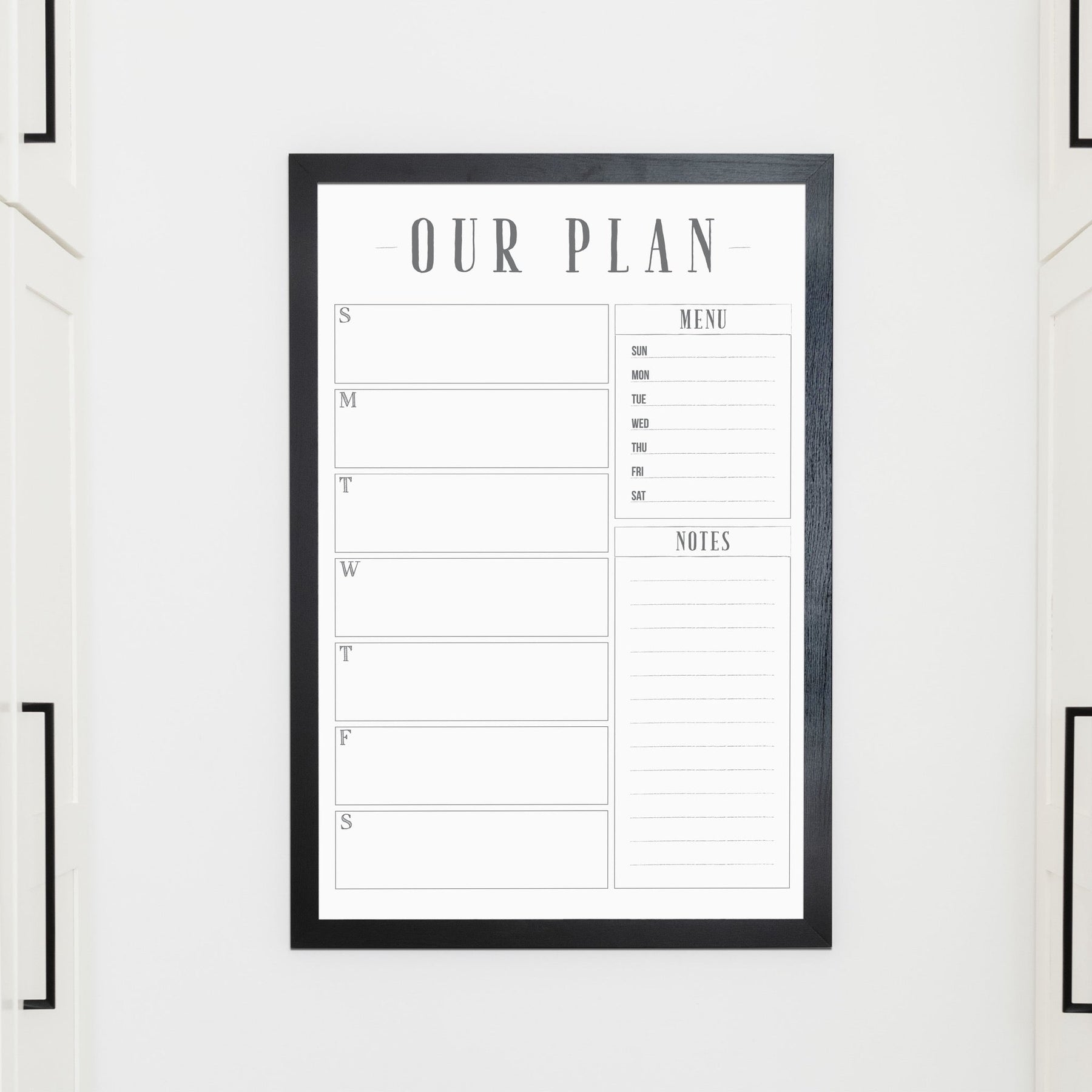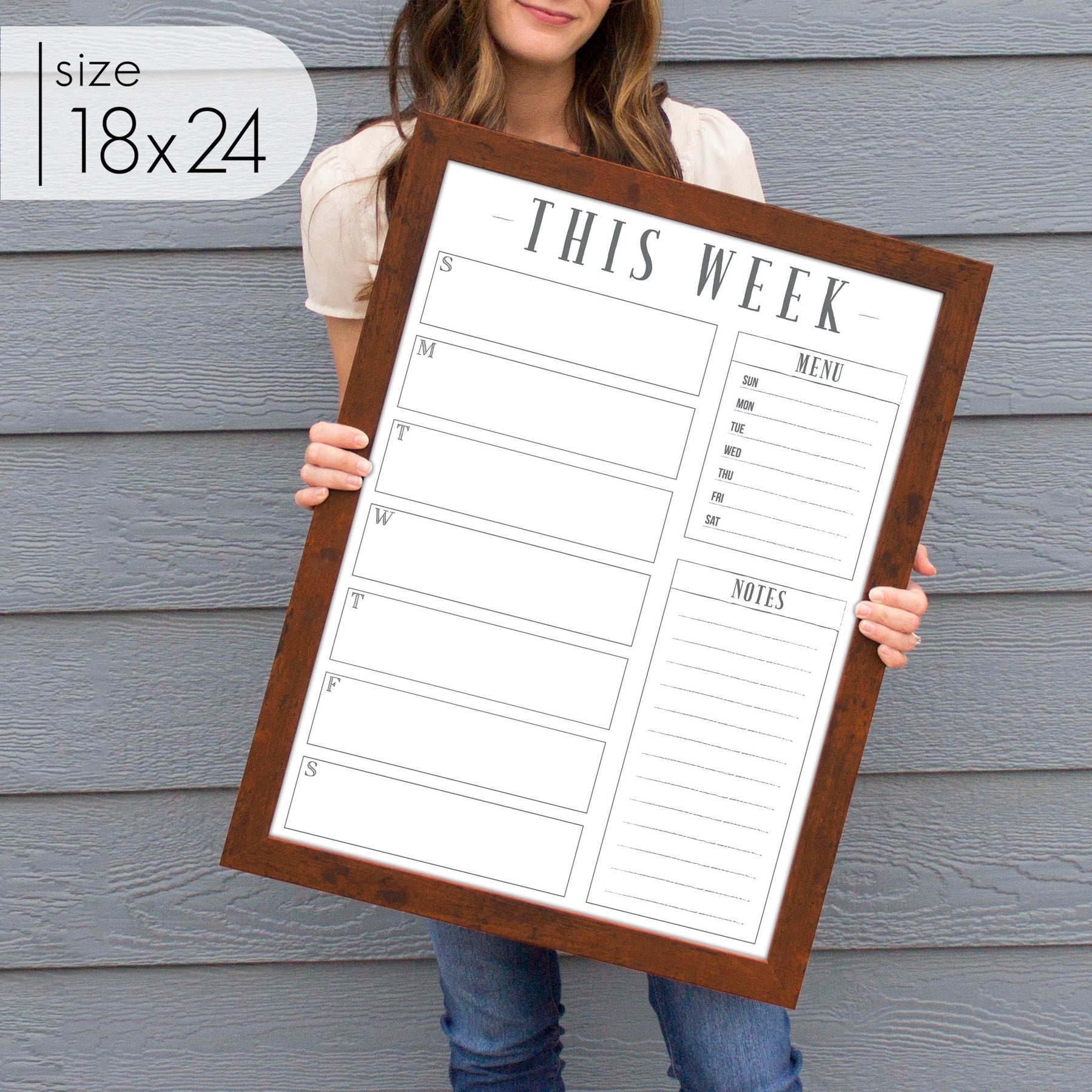 Stay on top of your week with our framed weekly whiteboard calendar. Designed to provide an in-depth look at your upcoming week, this whiteboard calendar offers a variety of sections to keep you organized and focused. With dedicated spaces for appointments, to-dos, goals, and notes, you’ll have everything you need to plan your days efficiently. The clean, erasable surface of the calendar dry-erase board makes it easy to update and adjust as needed, while the framed design adds a polished, functional touch to your wall. This weekly whiteboard calendar is the perfect tool for anyone looking to stay organized, whether at home, work, or school.